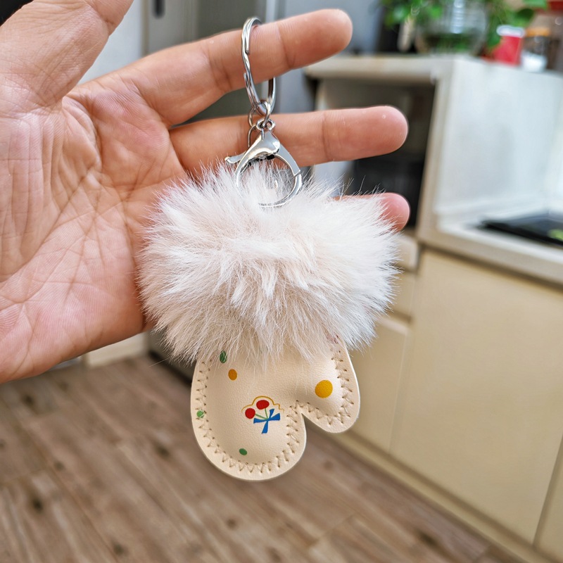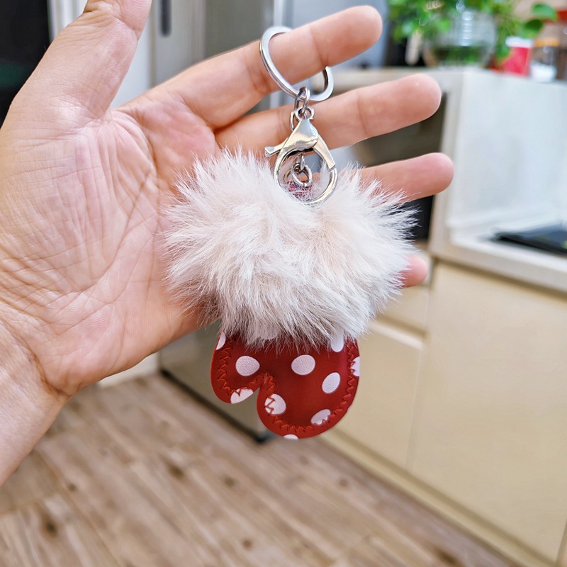 秋冬新款毛绒迷你手套皮革挂饰DIY包挂件钥匙扣鞋帽围巾服装辅料