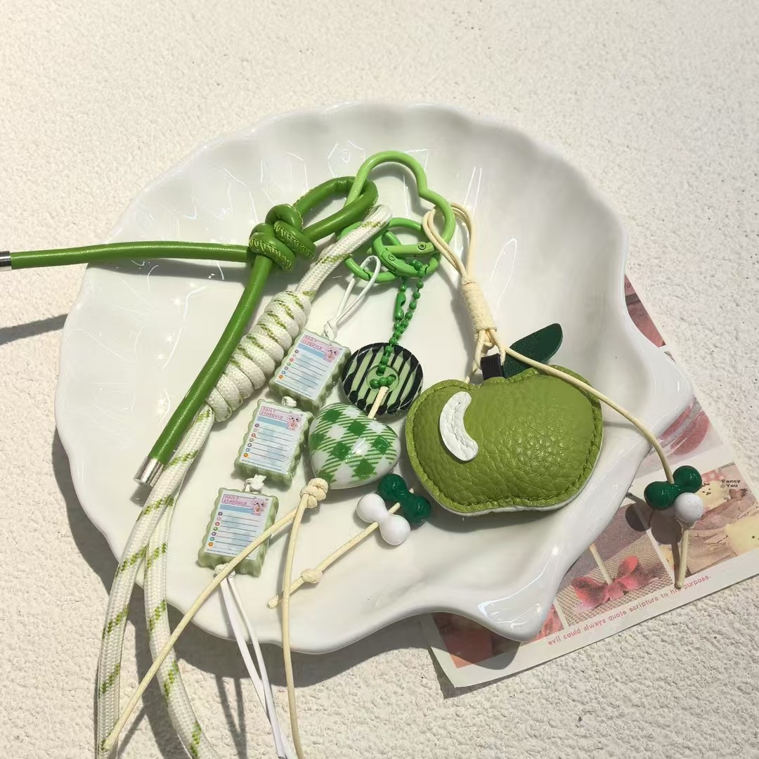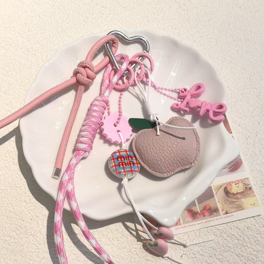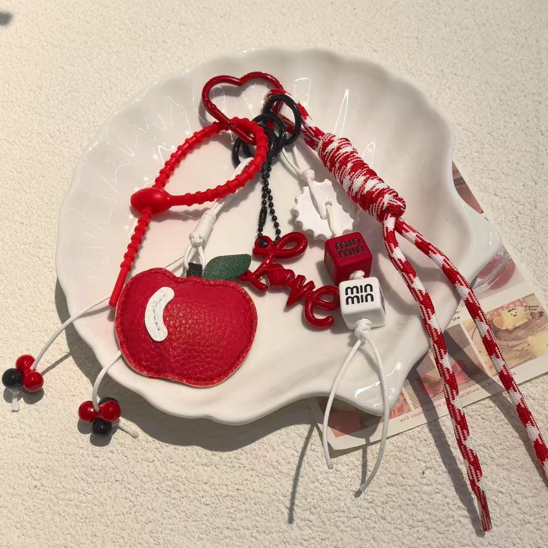 跨境新款创意苹果包包挂饰钥匙扣编织绳配件水果装饰ins潮时尚