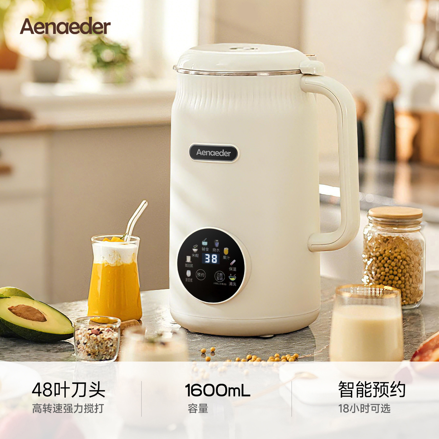 英国Aenaeder豆浆机大容量家用3-4人多功能全自动免滤小型破壁机