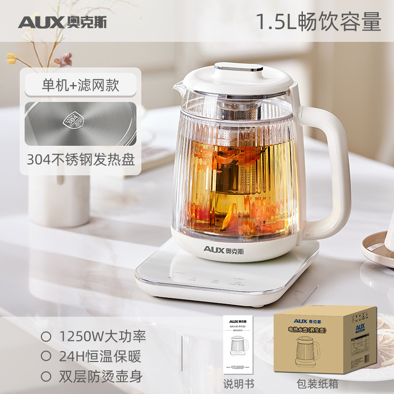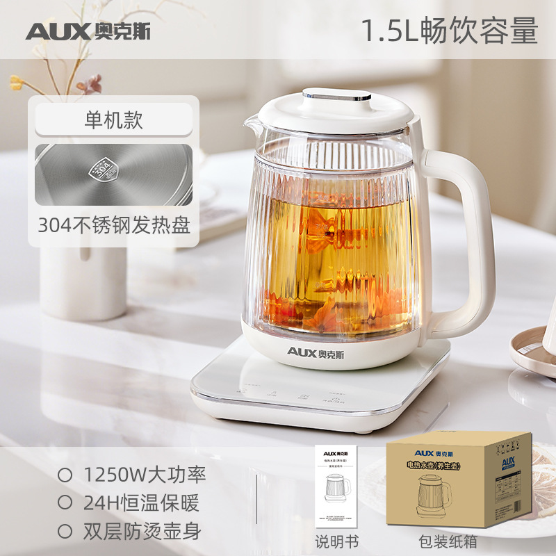 AUX奥克斯养生壶家用双层防热玻璃壶身花茶恒温壶烧水煮茶一体机