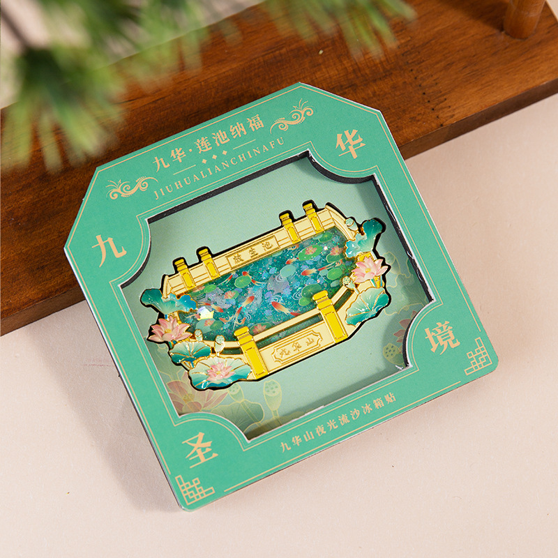 景区九华山池流沙金属冰箱贴旅游城市创意礼品纪念工艺品礼品