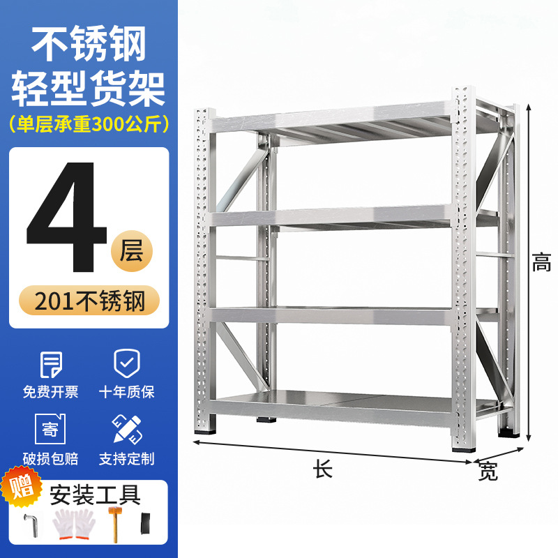 304不锈钢重型货架仓库仓储多层储物架地下室家用组合置物架加厚