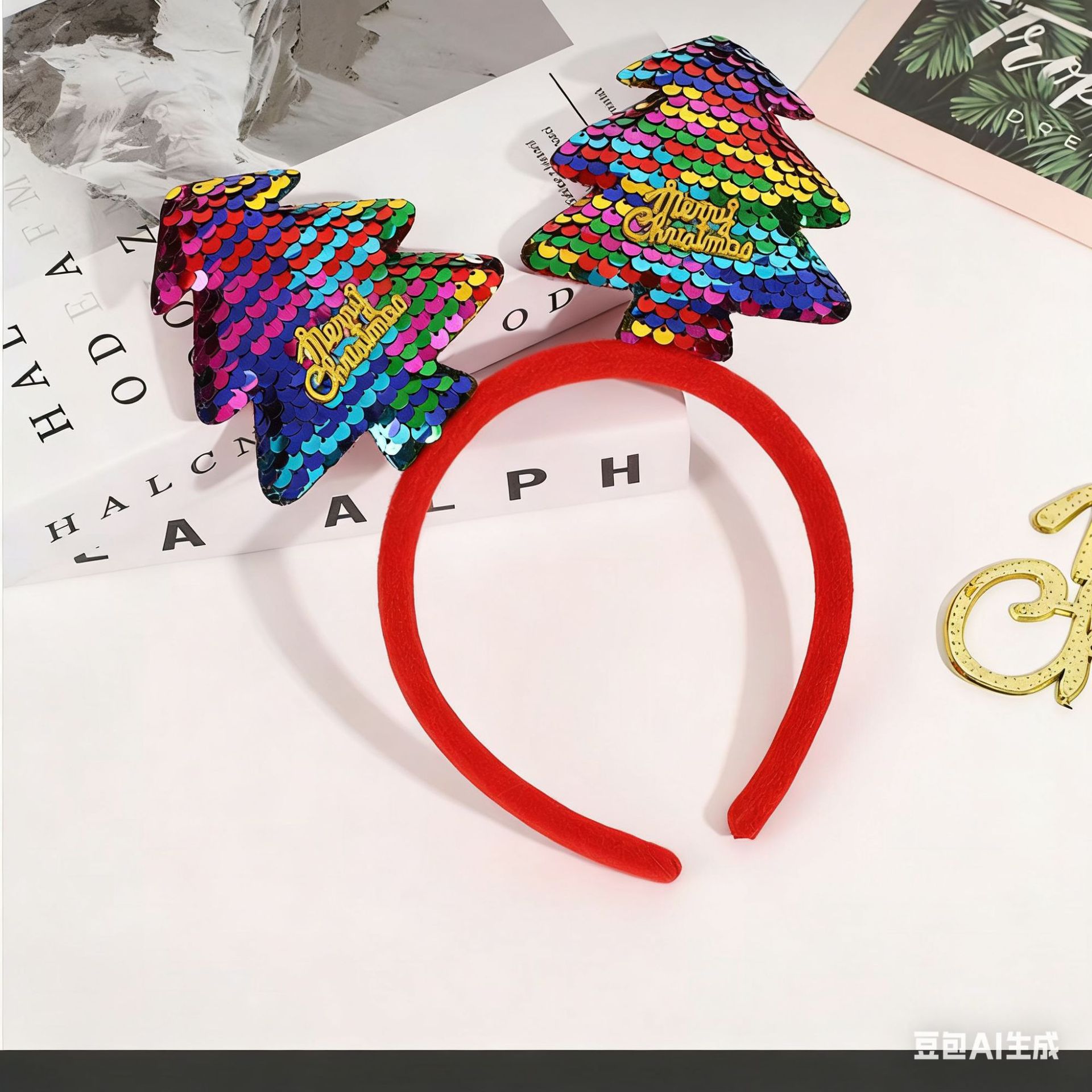 跨境新款圣诞节头箍 圣诞节日派对头箍发饰圣诞树发箍节日装饰