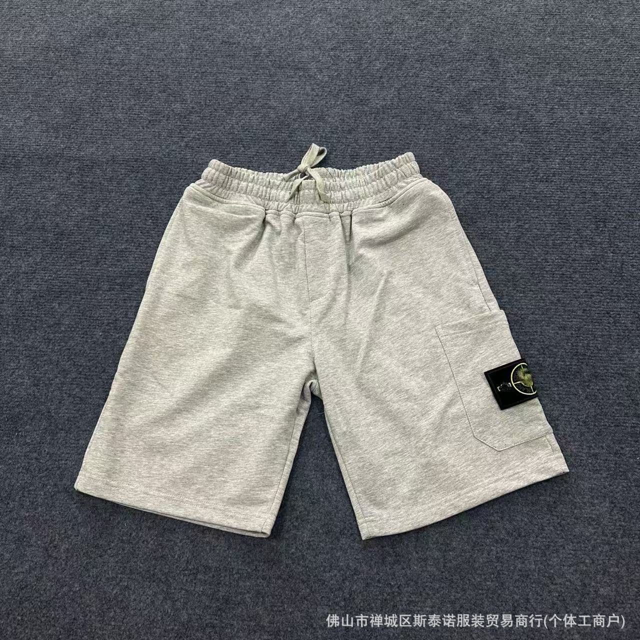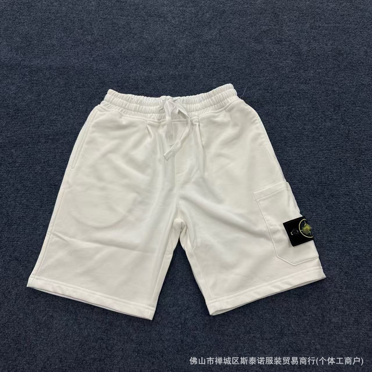 新款跨境石头刺绣夏季休闲短裤欧美纯棉毛圈320克宽松五分裤男女
