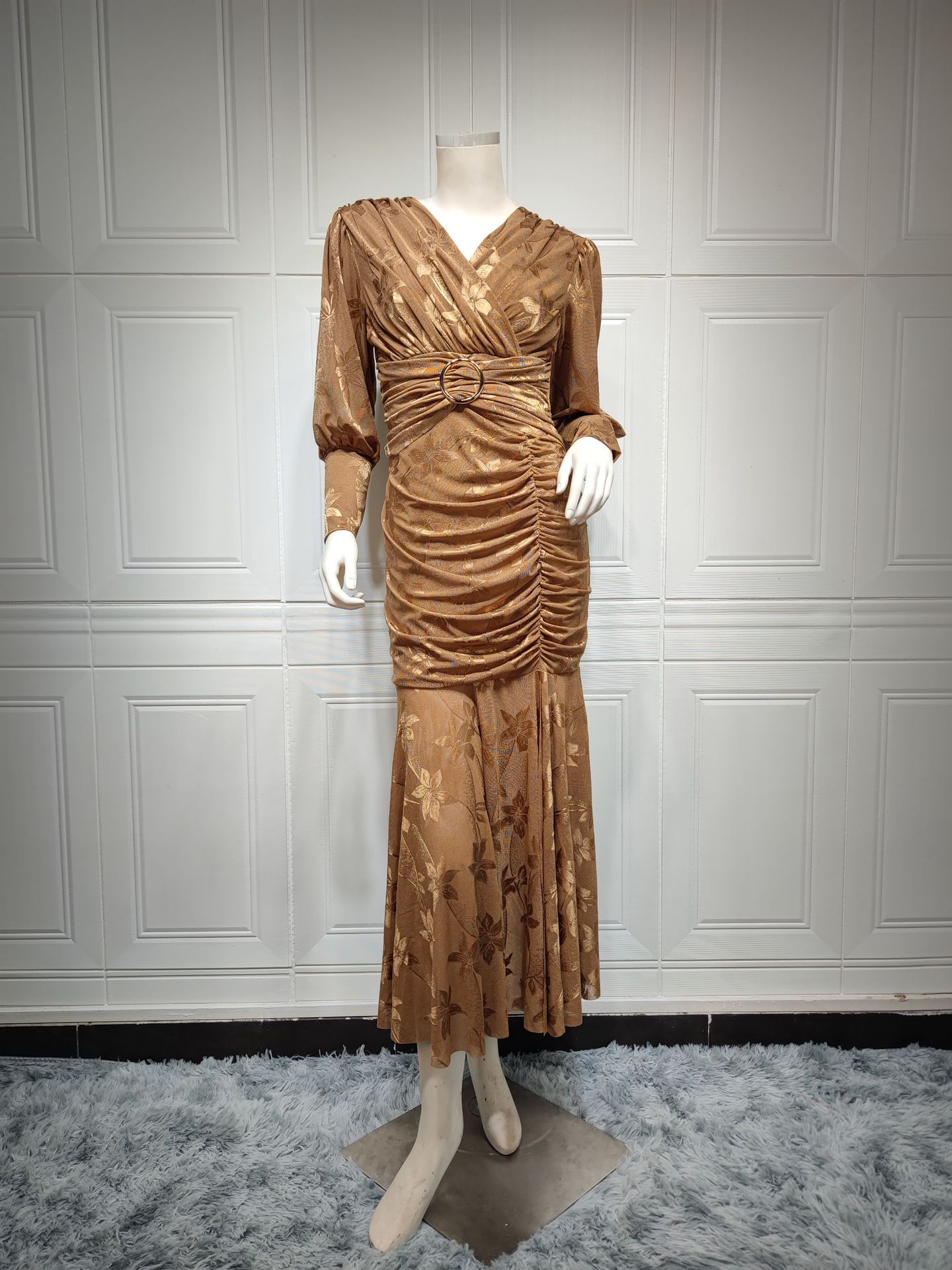 MQ042 2022欧美女装亚马逊中东时尚女装街头潮人V领高弹力包臀裙