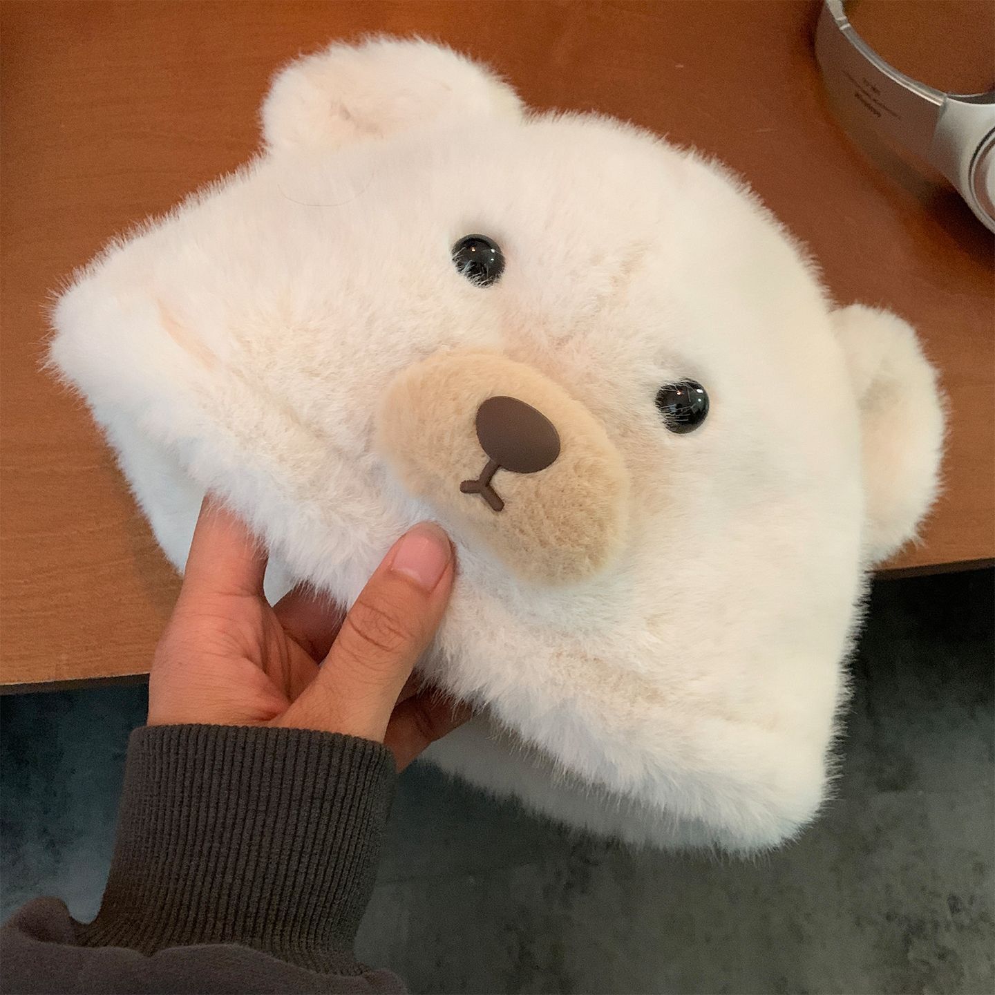 可爱小熊耳朵毛绒帽女秋冬季保暖防寒加厚针织帽大头围毛茸茸帽子