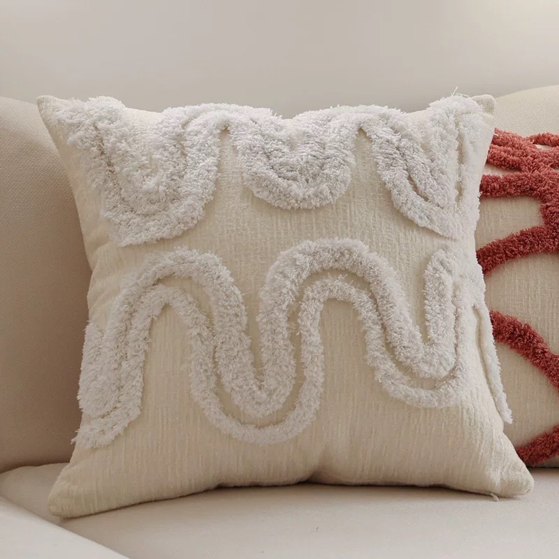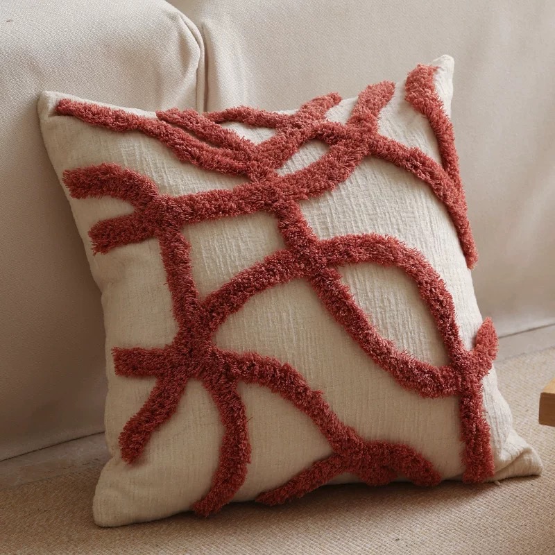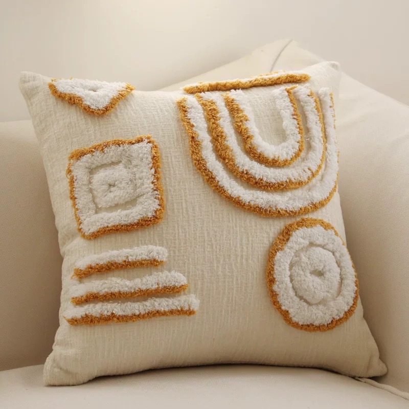 北欧ins风抱枕客厅沙发几何簇绒靠垫样板间圈绒靠枕抱枕套批发