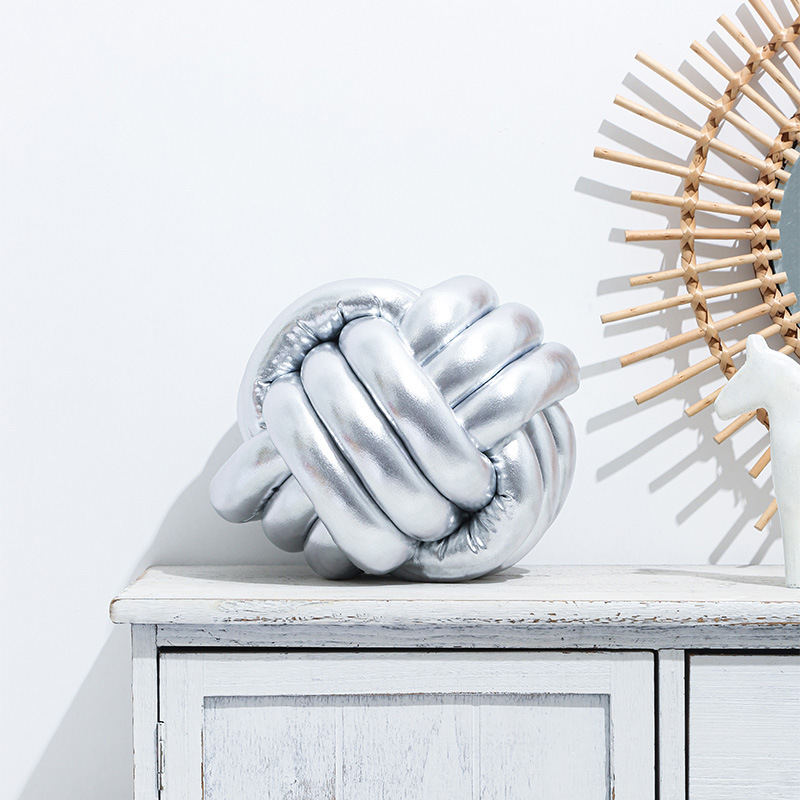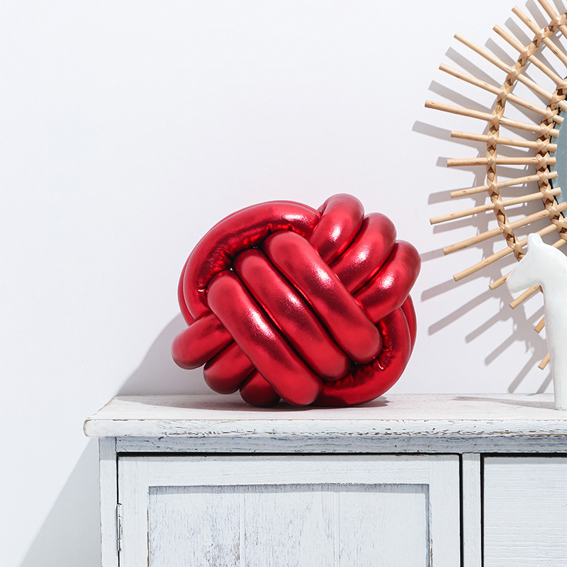 亚马逊圣诞抱枕红烫金打结球三股绳手工编织球形靠枕飘窗靠垫沙发