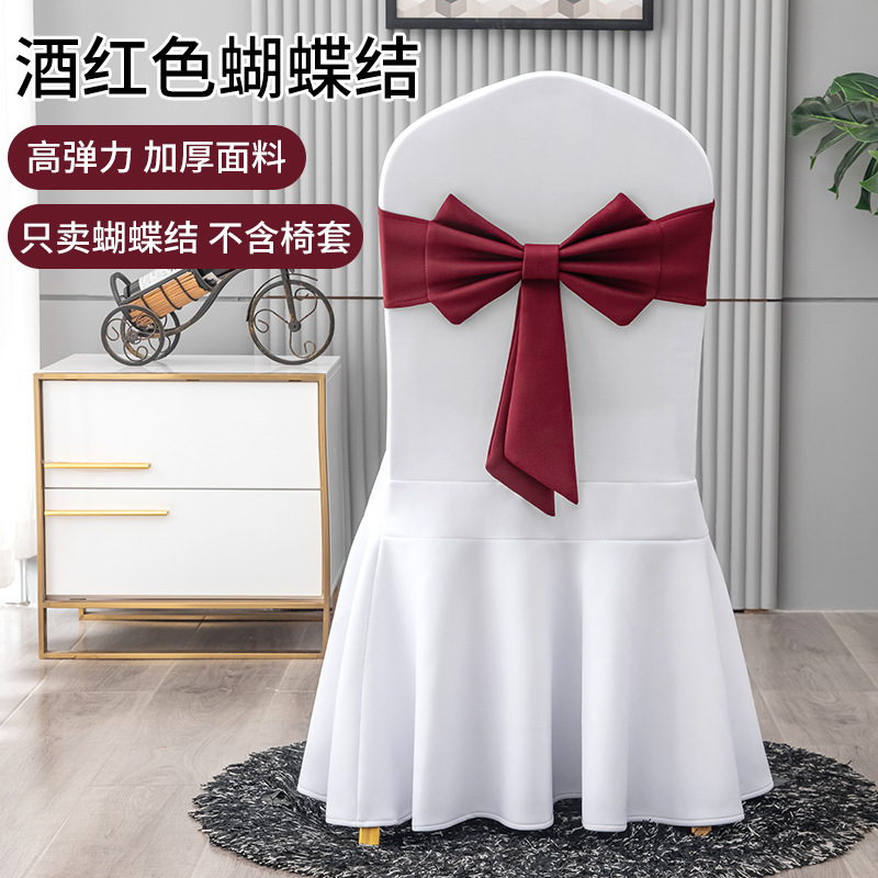 弹力免系椅背花蝴蝶结贵宾酒店椅套腰带宴会婚礼装饰红色绑带背花