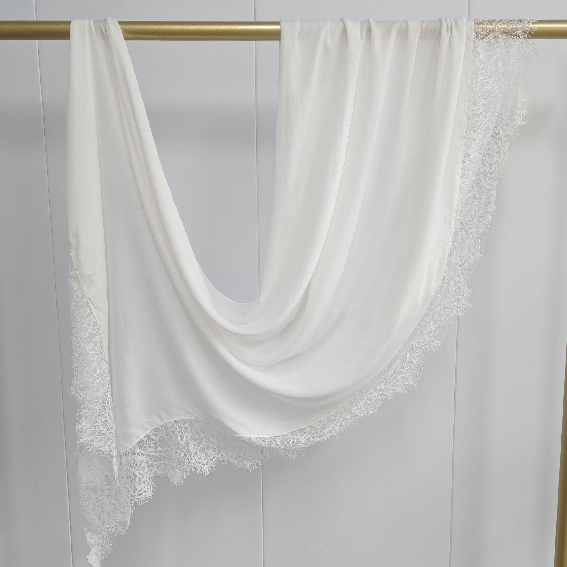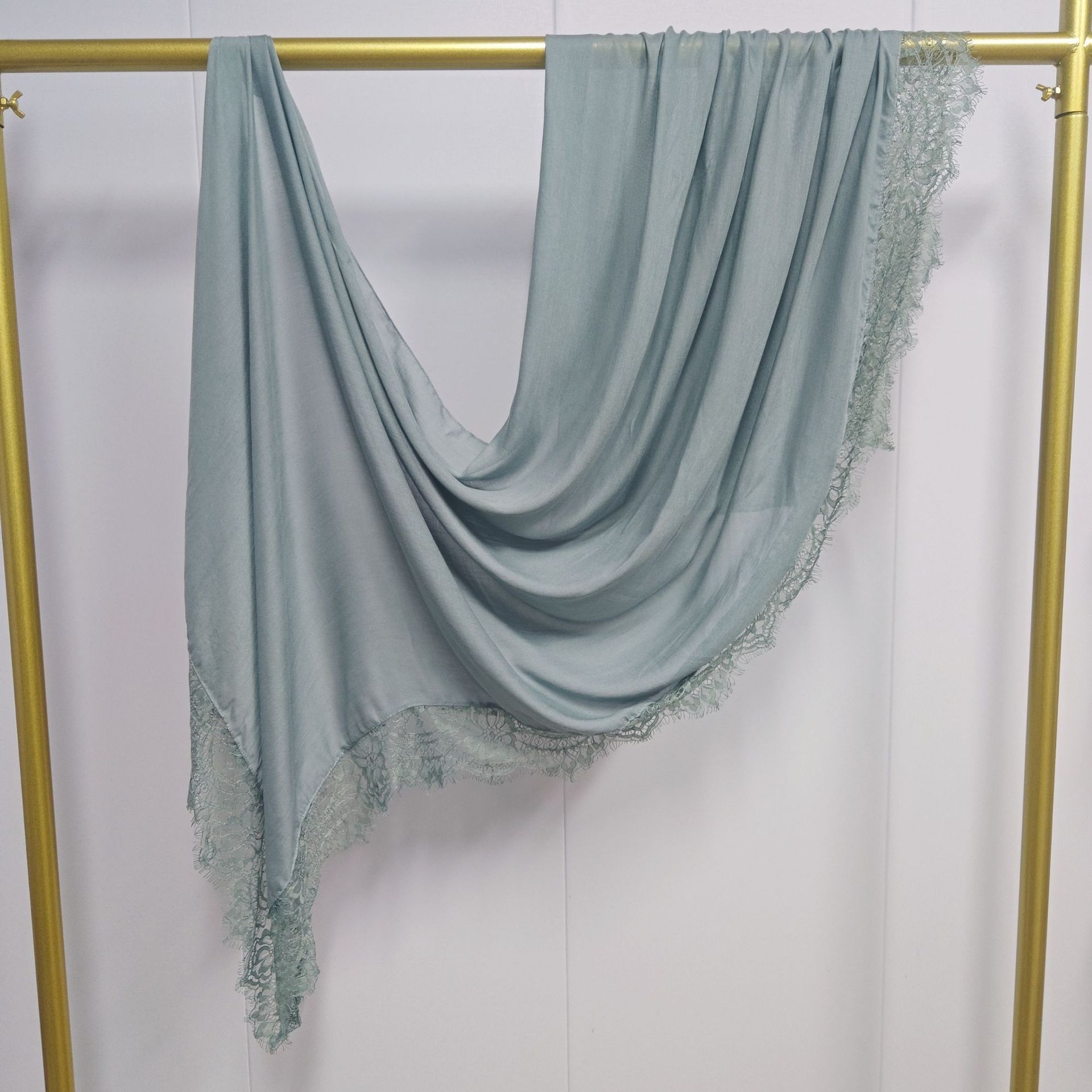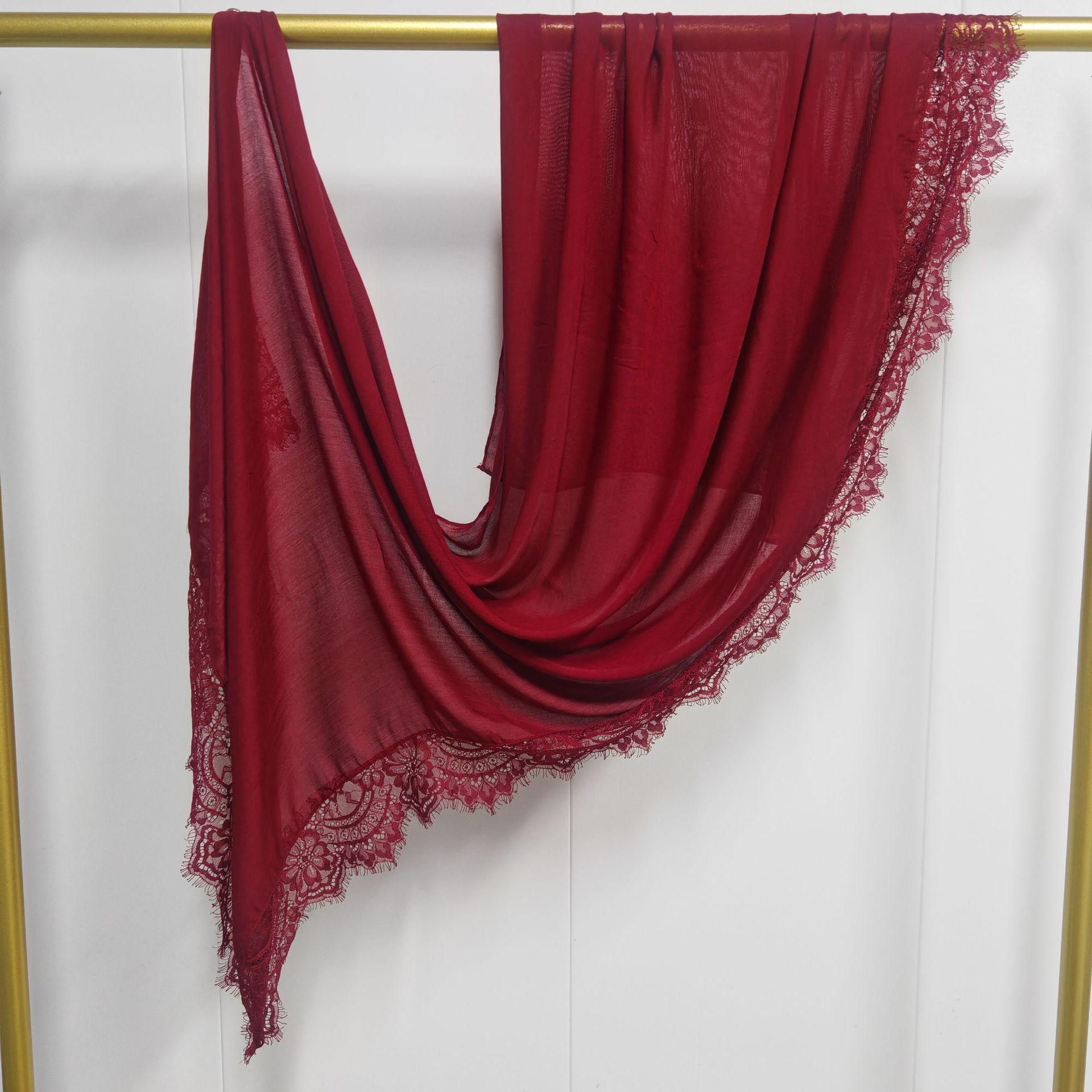 【蕾丝L边】莫代尔人棉蕾丝边长巾 纯色花边莫代尔围巾 马来西亚