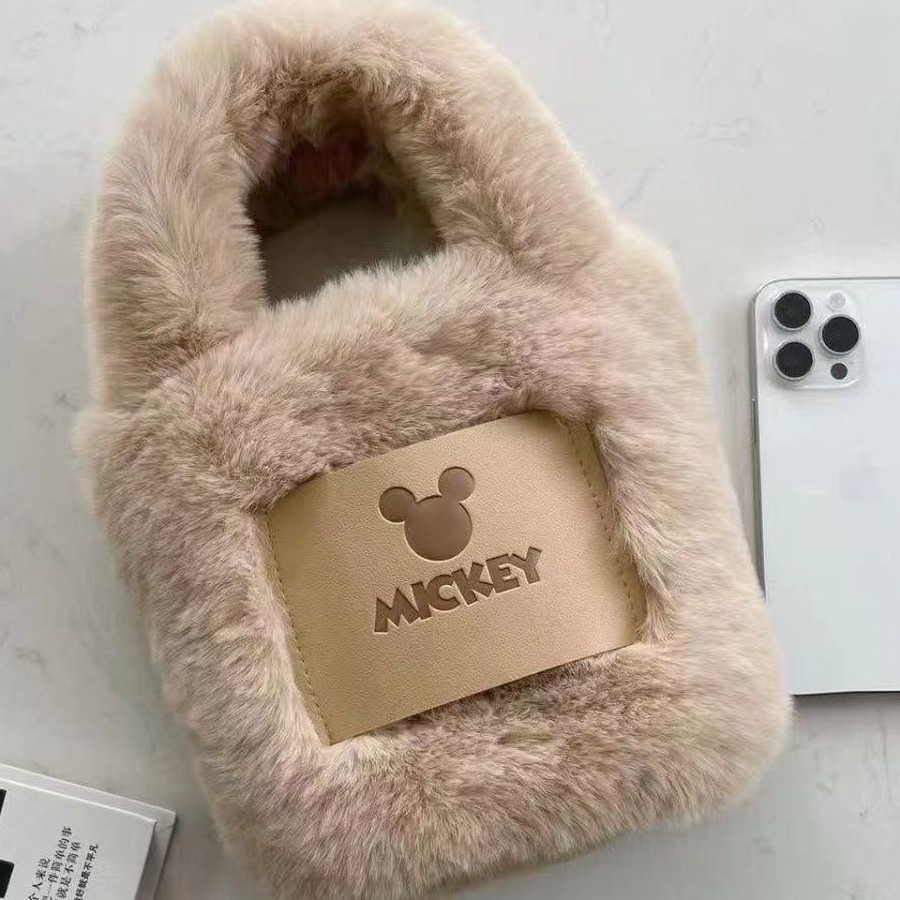 秋冬新款米奇毛毛包百搭毛绒斜挎包韩版可爱水桶包链条女生斜挎包