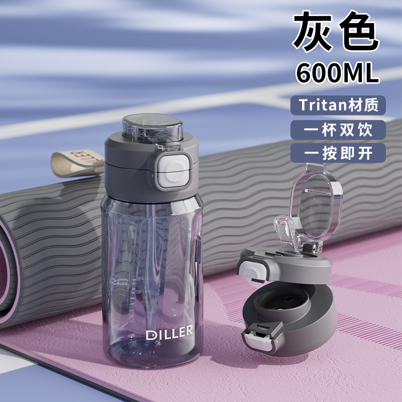 灰色-600ML(一盖双饮 带便携提绳)