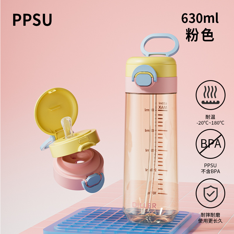 DILLER女上学专用杯子高颜值孕产妇PPSU水杯夏季耐高温儿童吸管杯