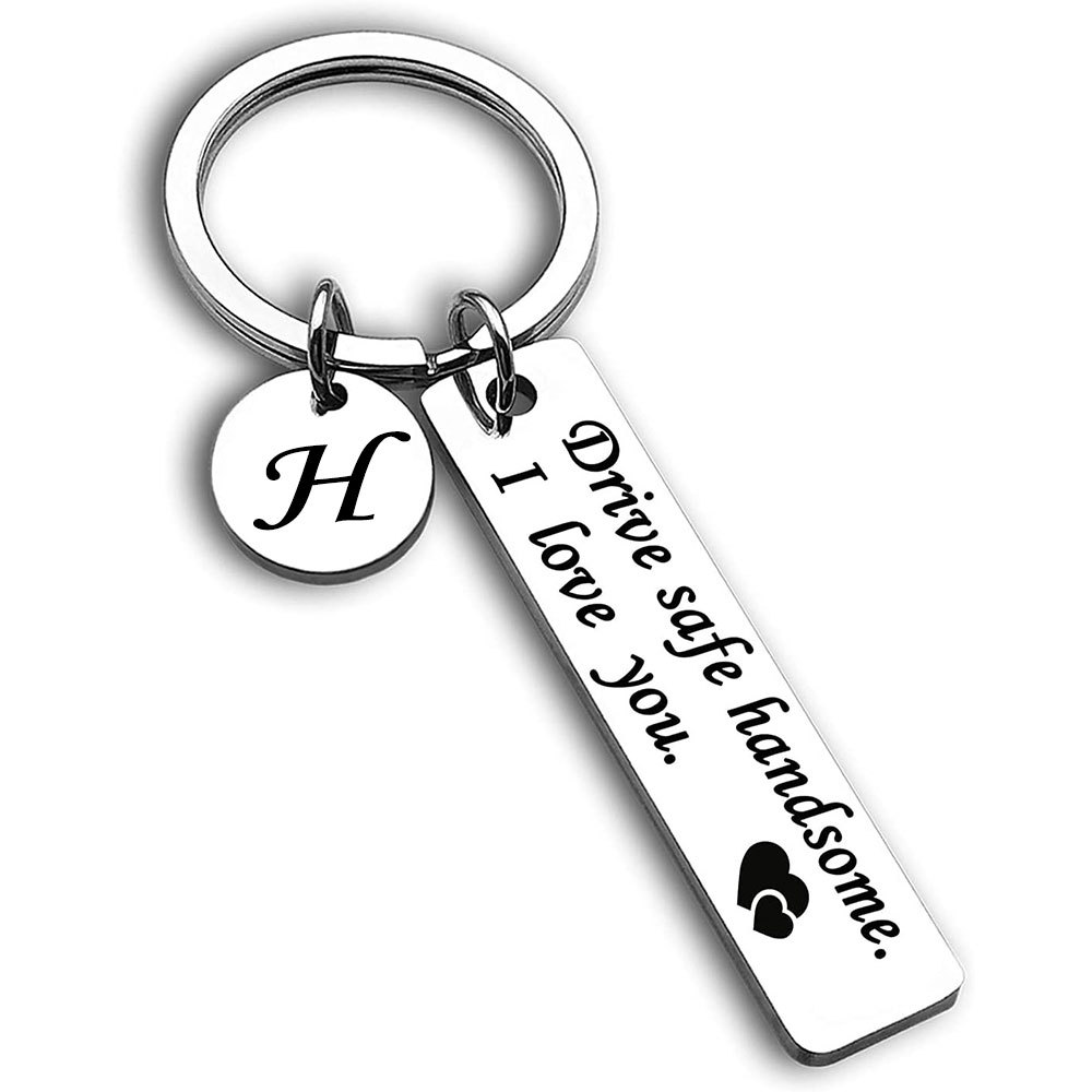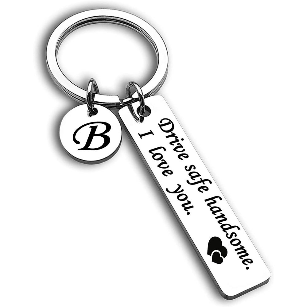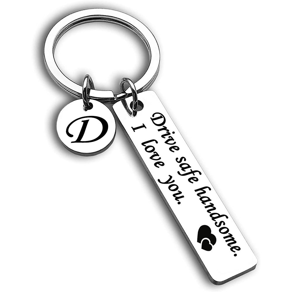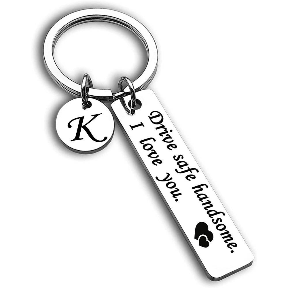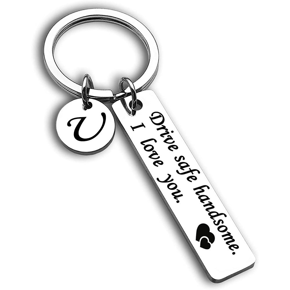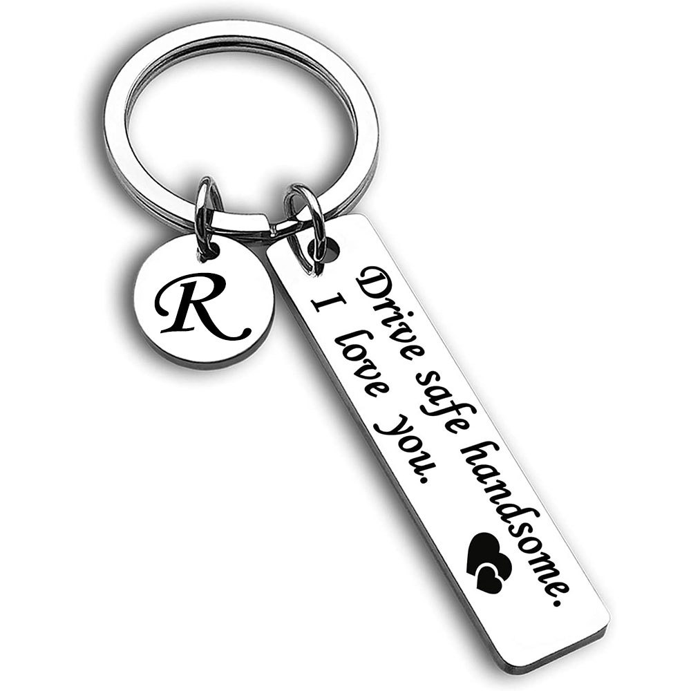 跨境爆款不锈钢钥匙扣Drive safe安全驾驶刻字26个字母小圆牌挂饰