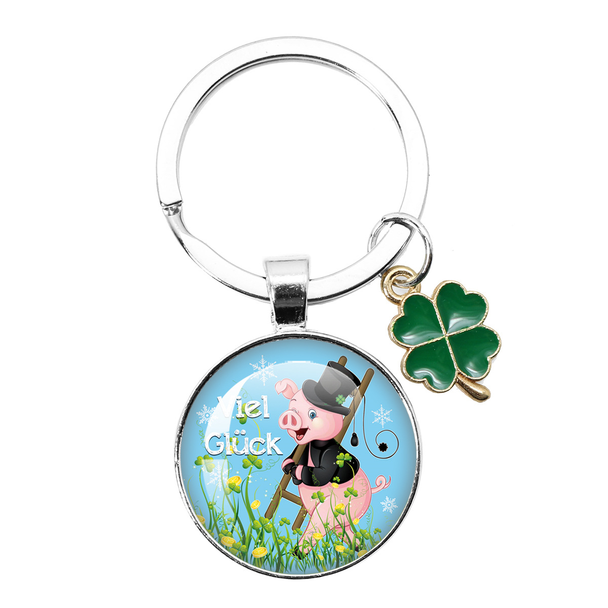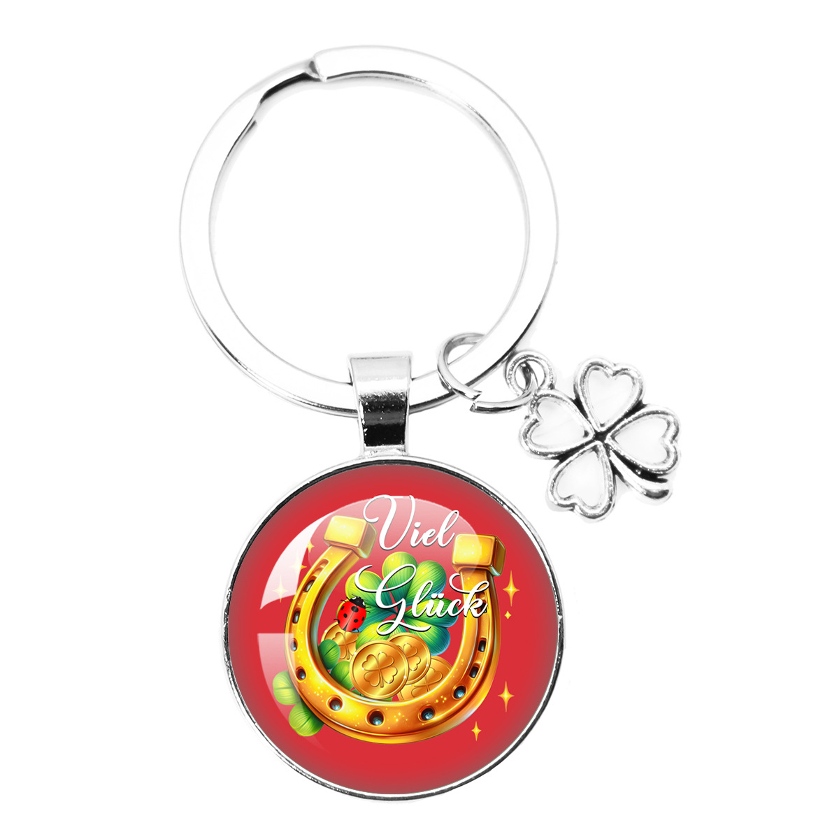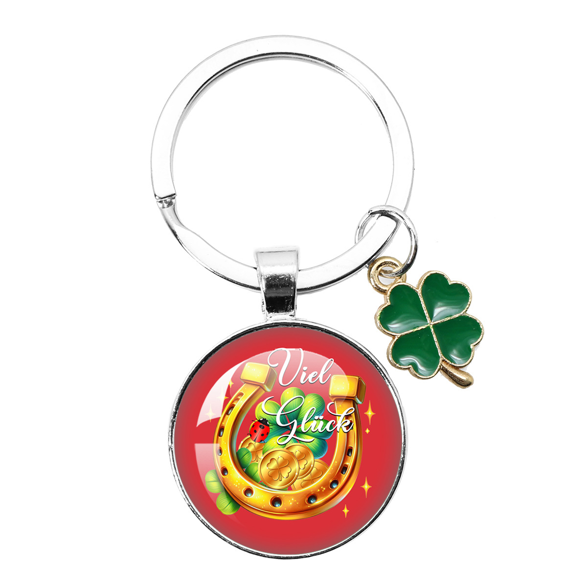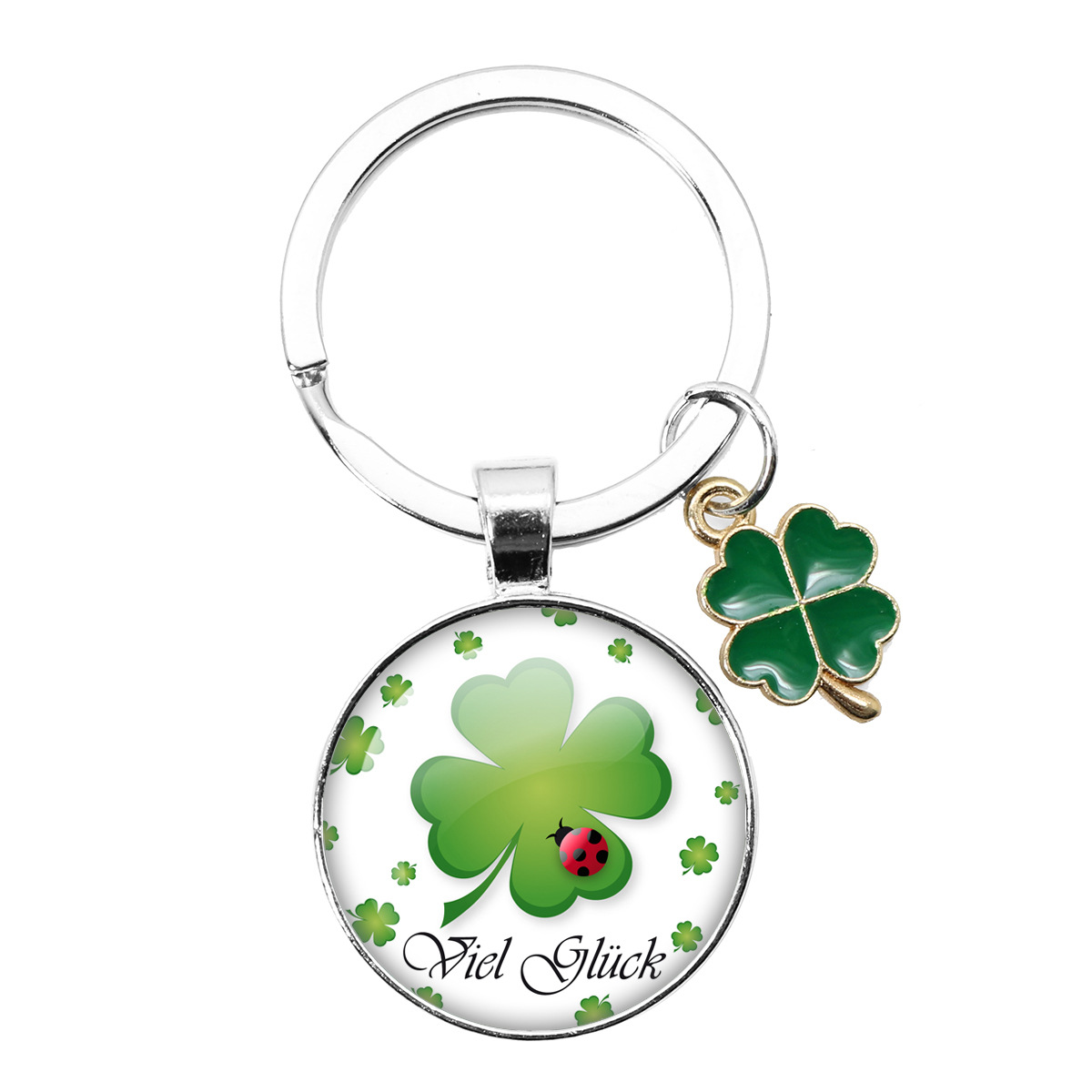 跨境热卖25MM幸运符四叶草钥匙扣新年圣诞派对礼物 Viel Glück