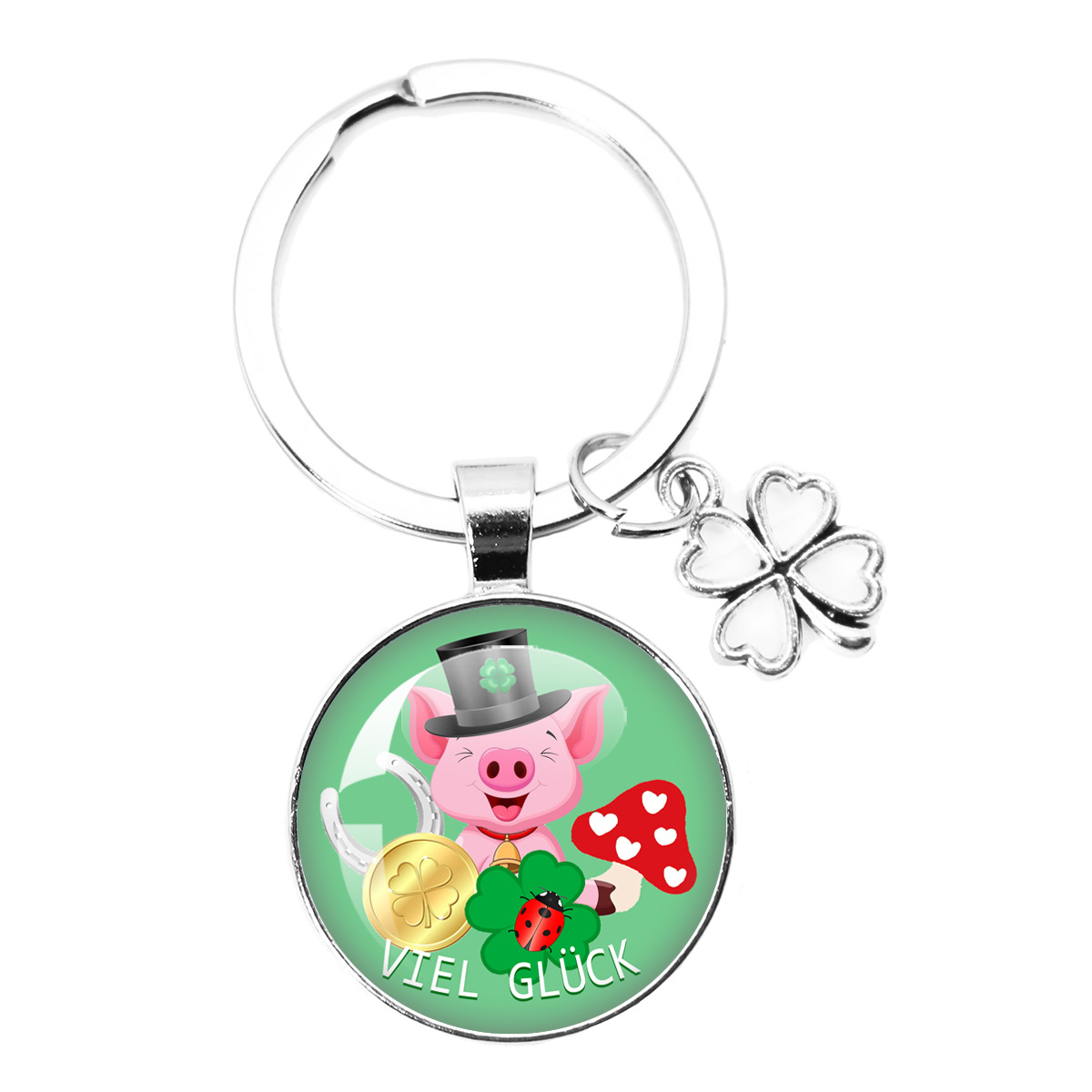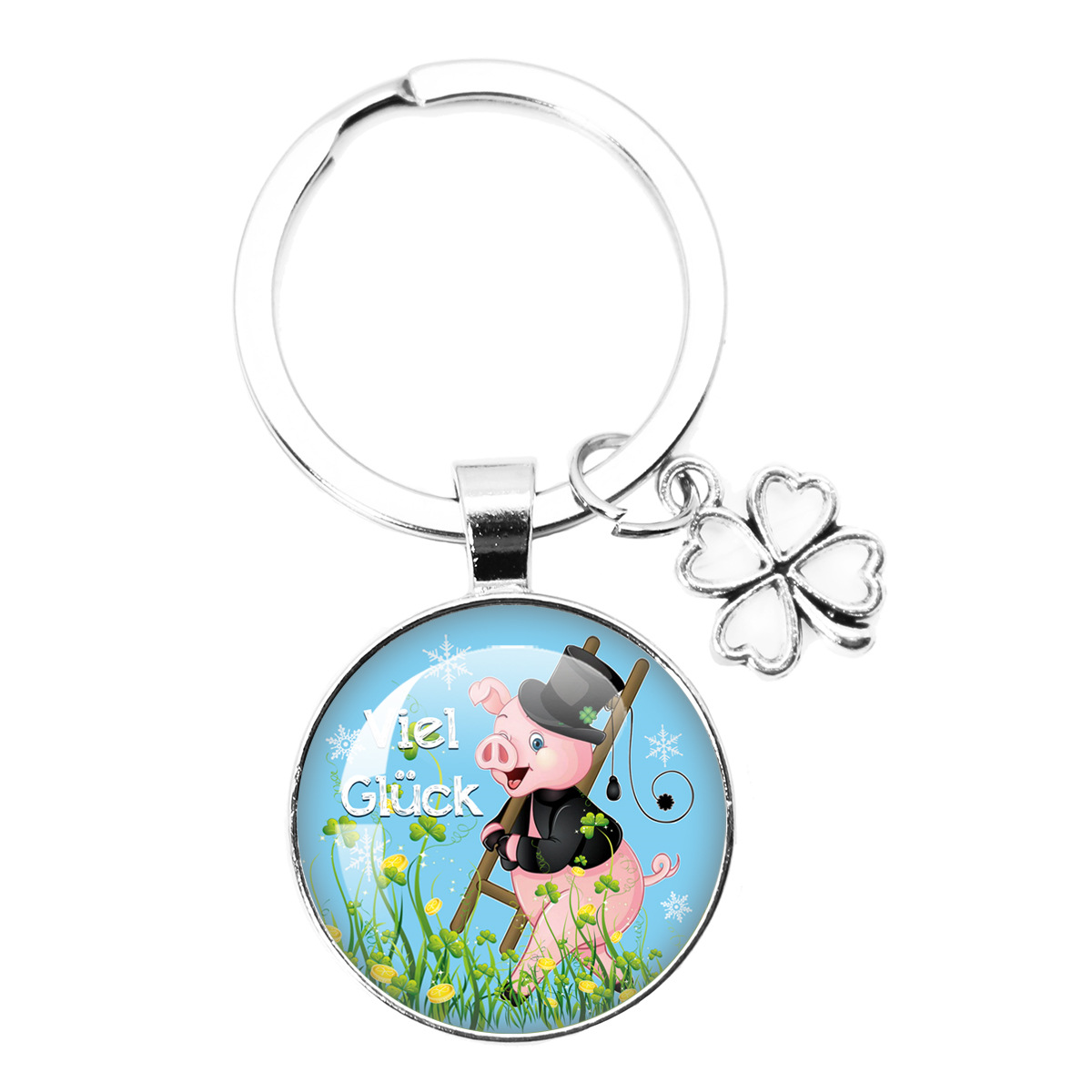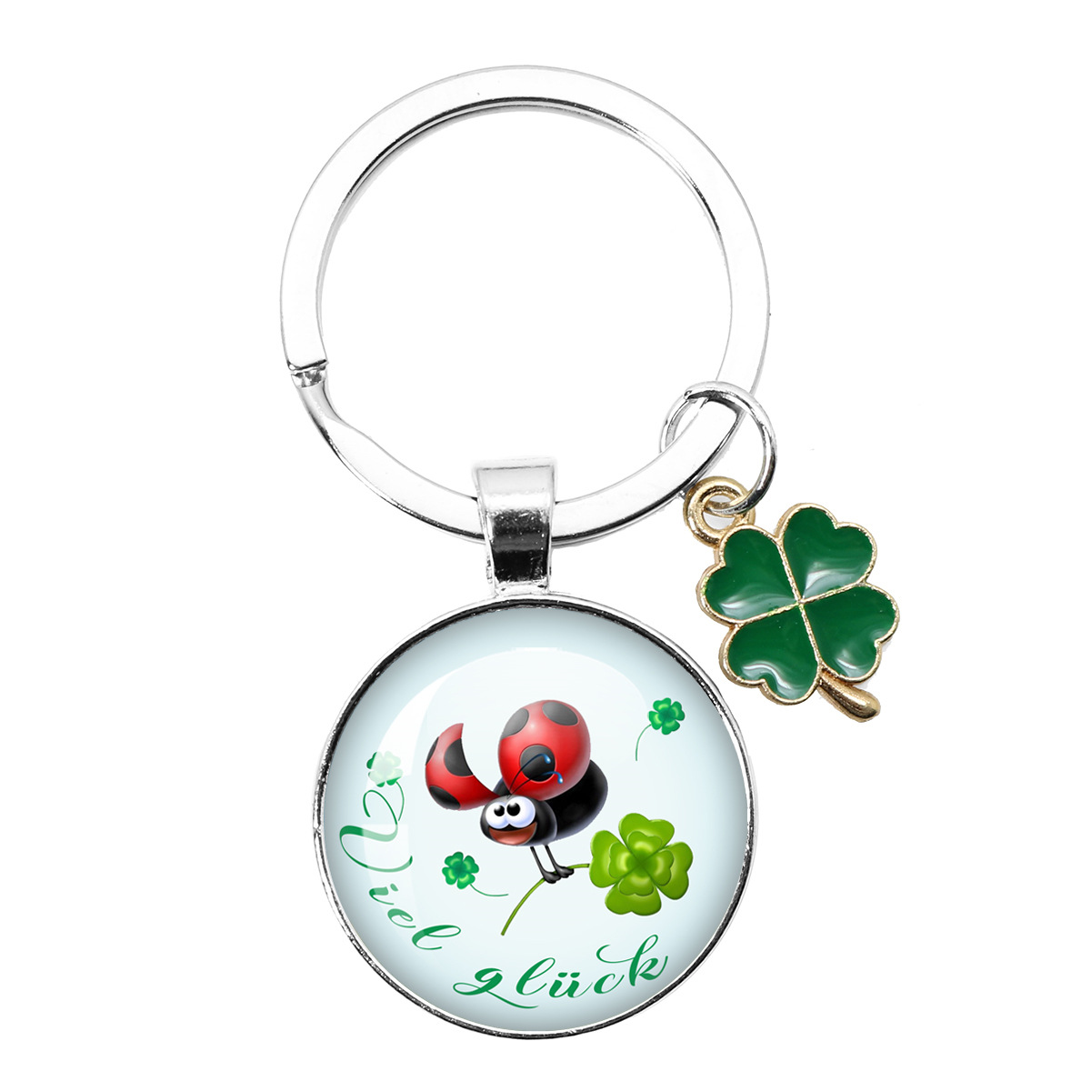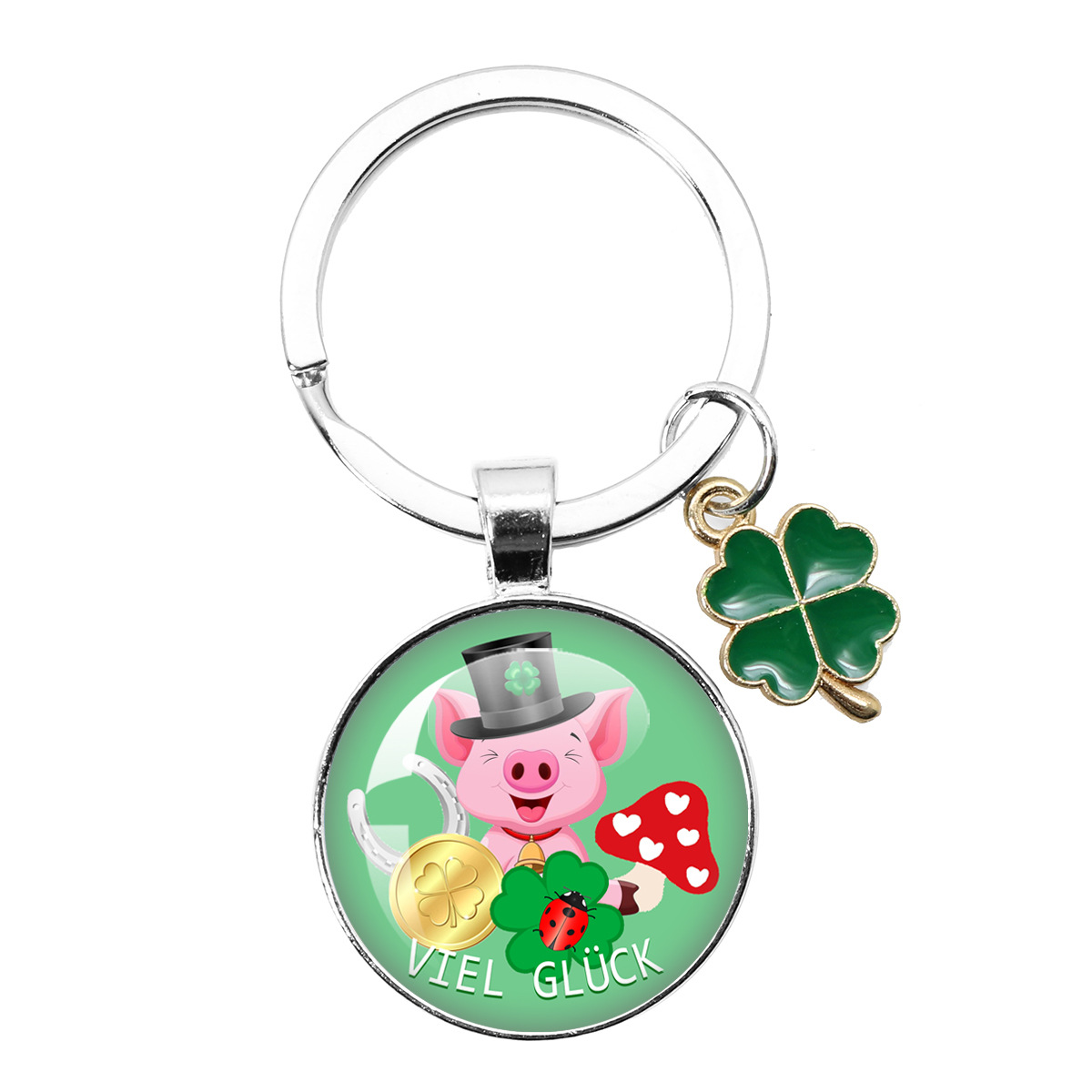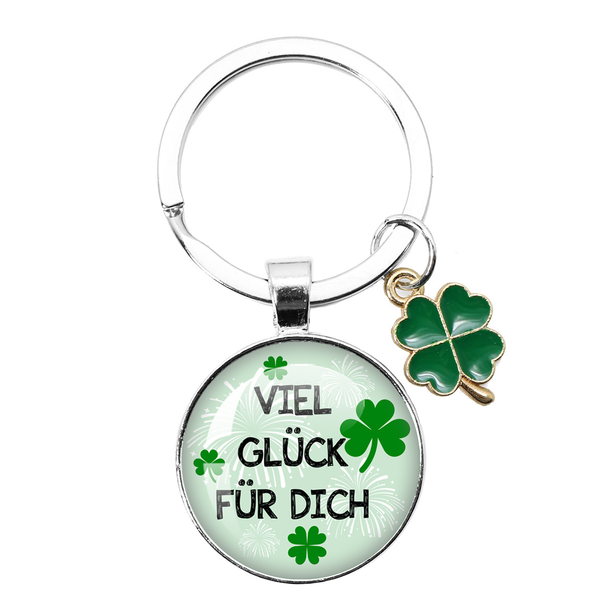 跨境热卖25MM幸运符四叶草钥匙扣新年圣诞派对礼物 Viel Glück