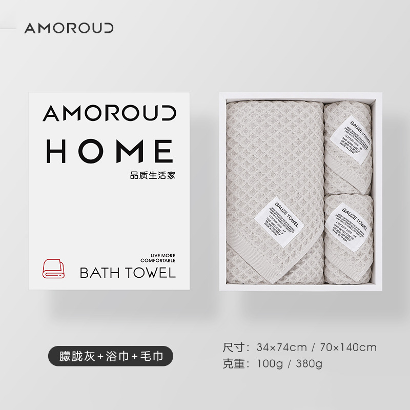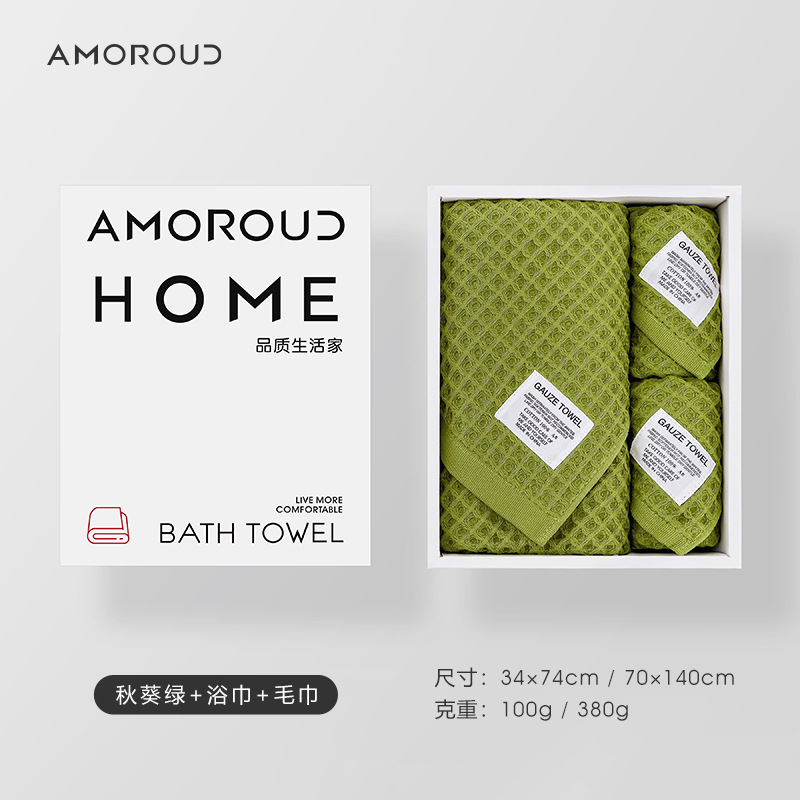 慕凡朵纯棉华夫格浴巾毛巾套装礼盒三件套蜂窝网纹礼品轻奢伴手礼