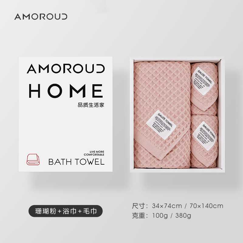 珊瑚粉套装(浴巾*1+毛巾*2)