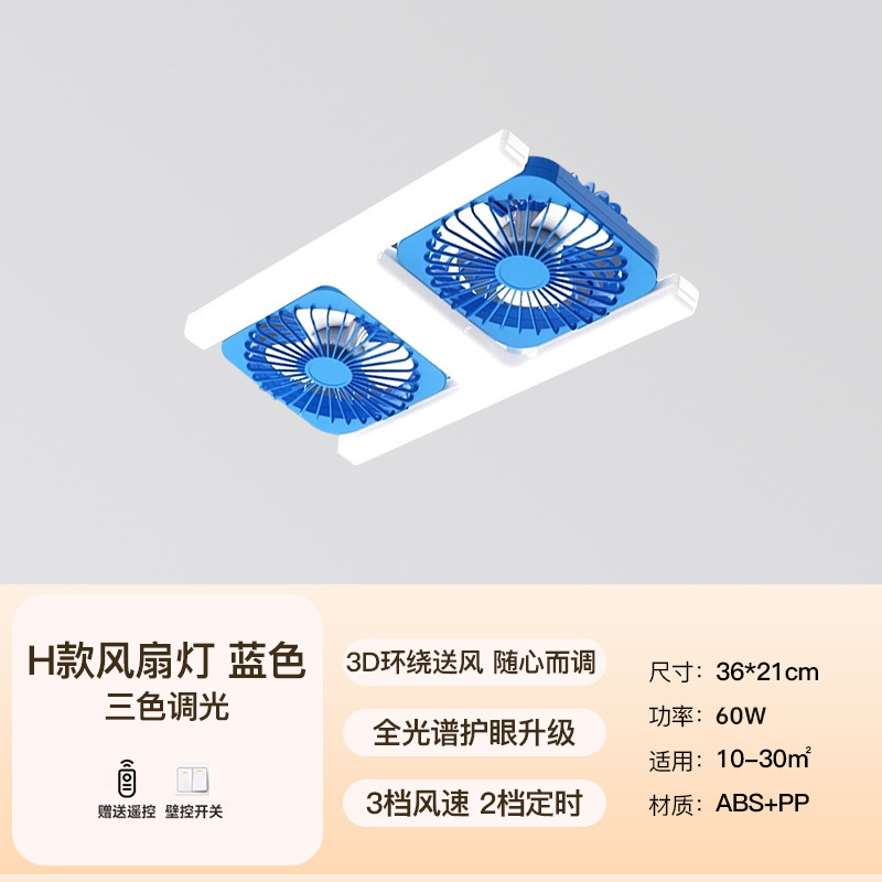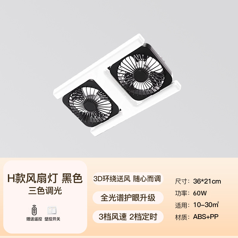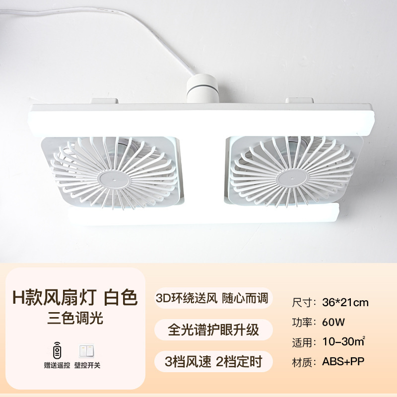 新款e27螺口灯头吊顶led双头风扇灯家用客厅卧室办公室遥控电风扇