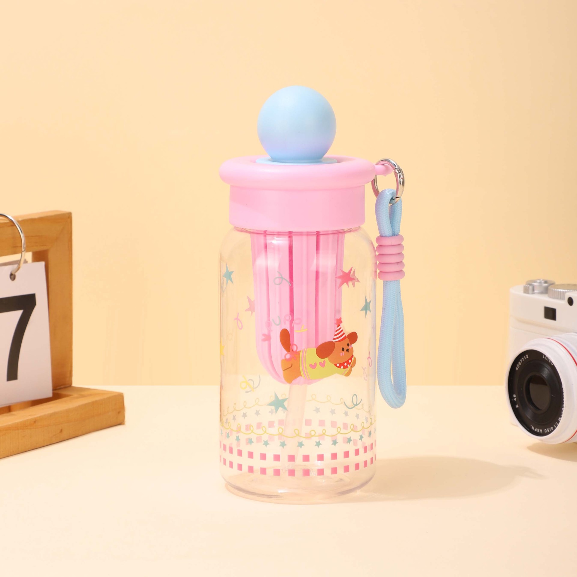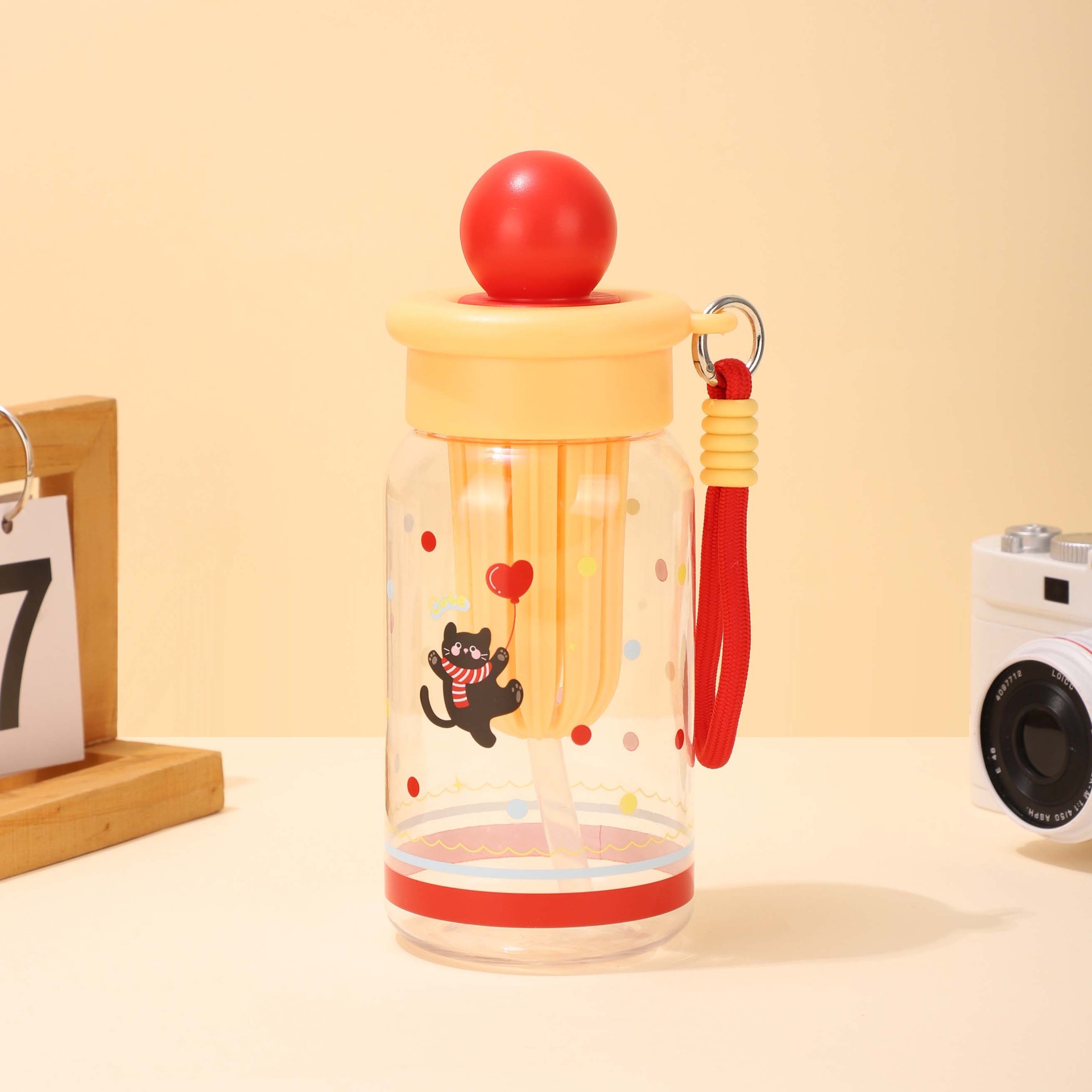 卡通儿童塑料吸管杯高颜值女生便携提绳水杯大容量茶水分类泡茶杯