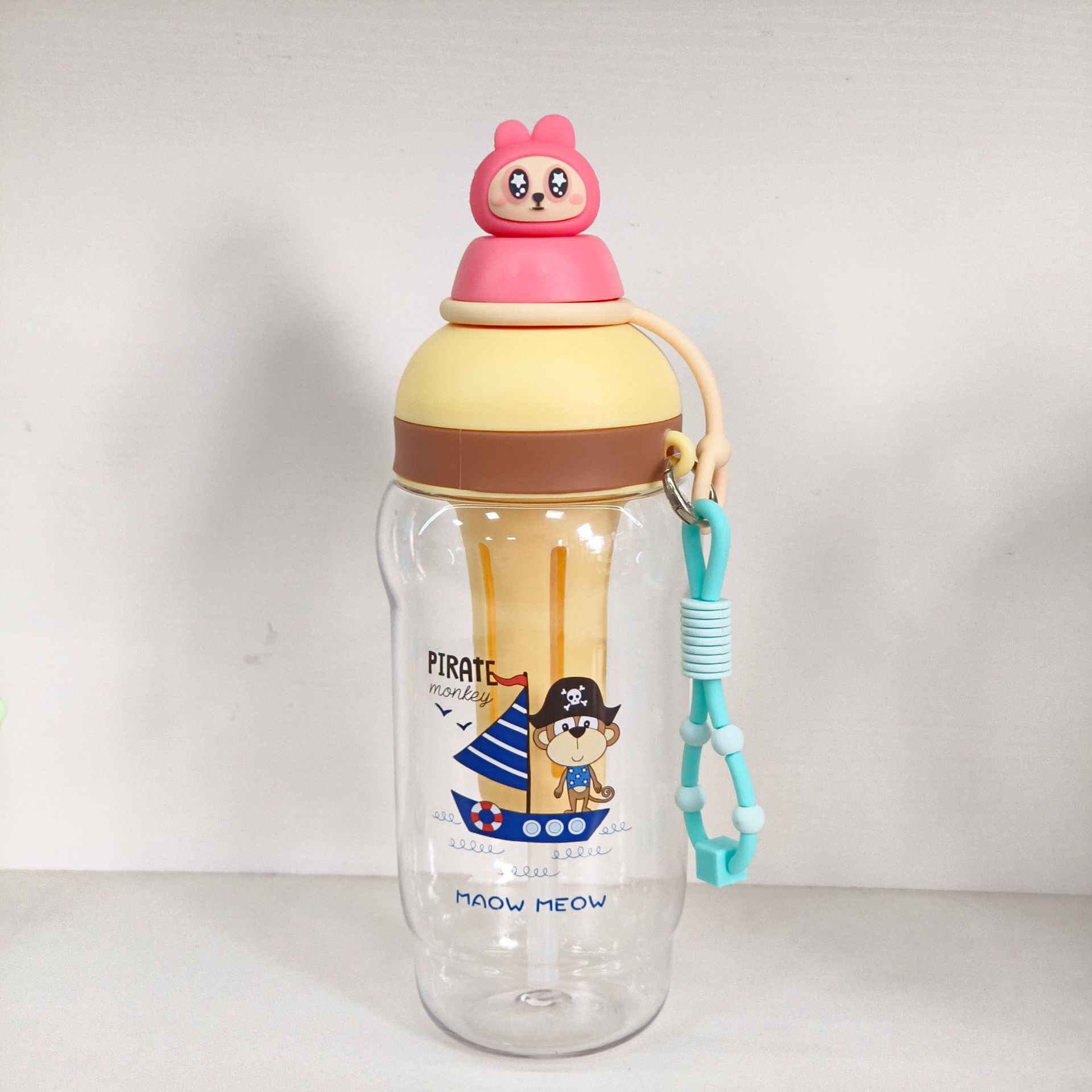 卡皮巴拉卡通吸管杯大容量便携防漏儿童水壶带提绳户外运动水杯