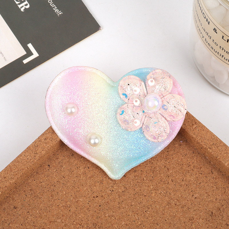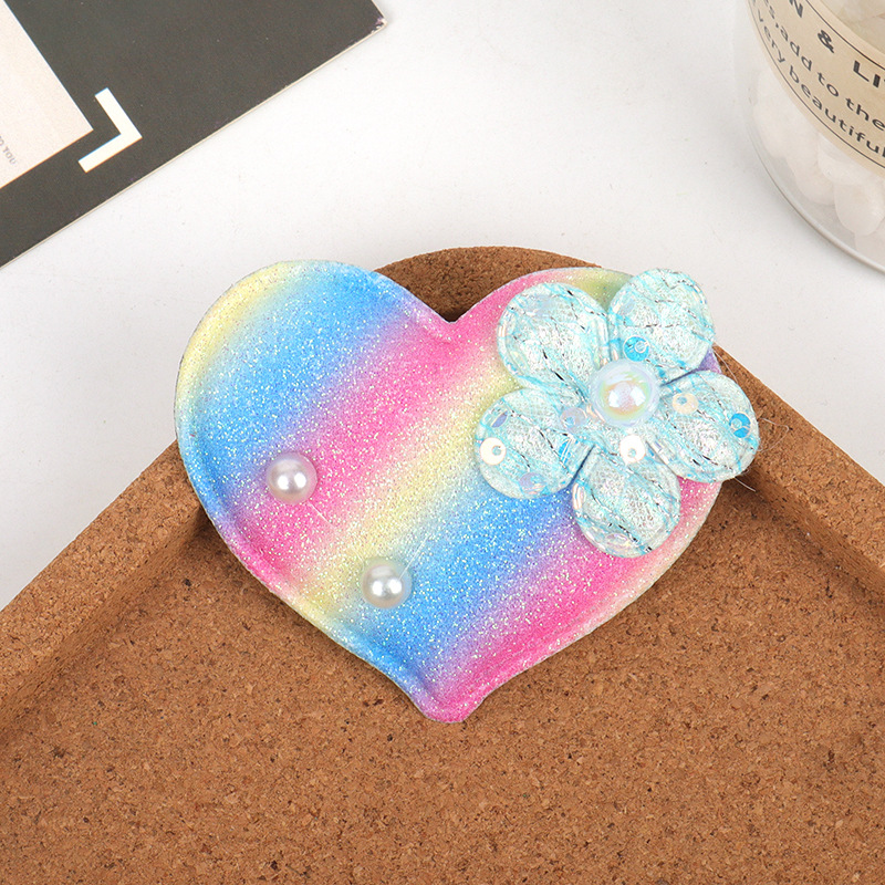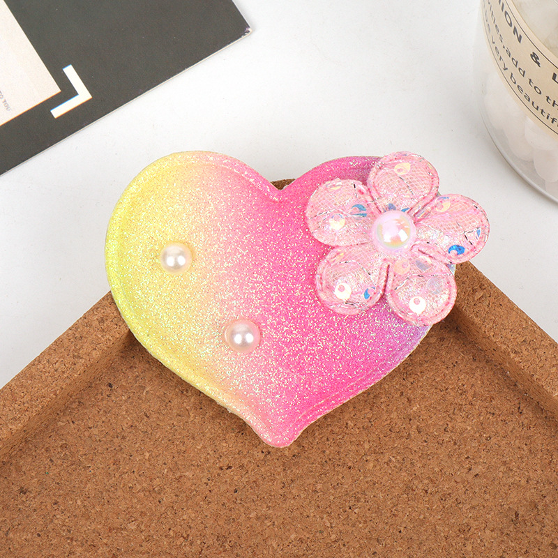 新款春季渐变幻彩爱心珍珠花瓣发夹儿童超可爱发夹碎发刘海夹