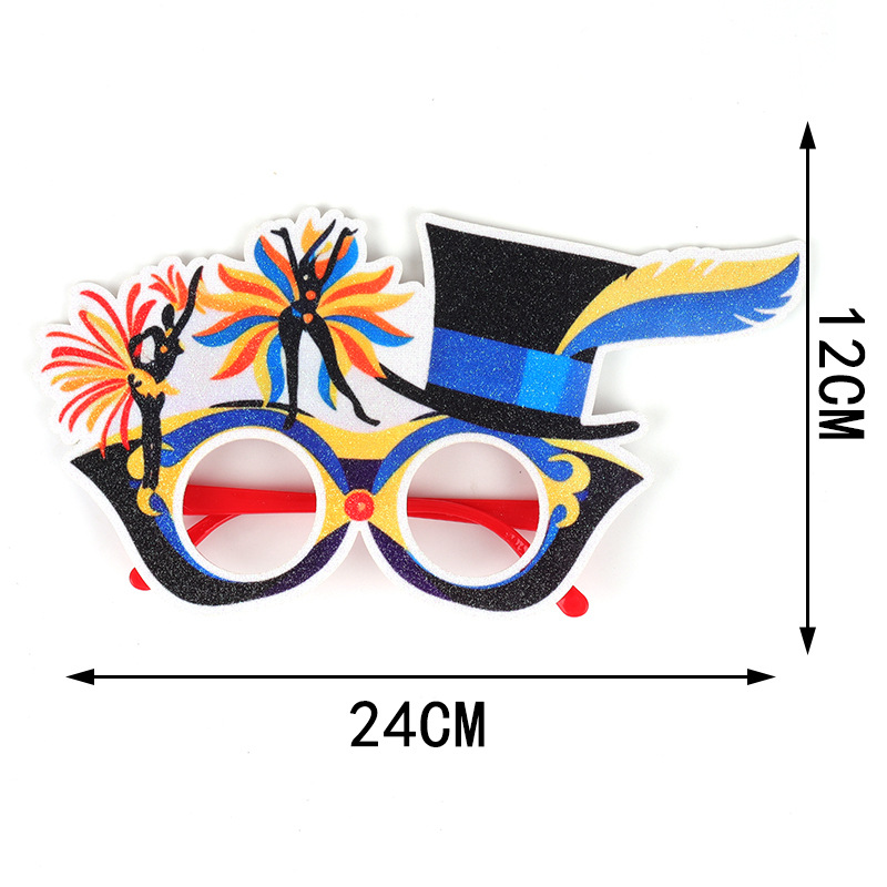 狂欢节装饰眼镜Mardi Gras化妆舞会羽毛印刷眼镜新奥尔良节派对