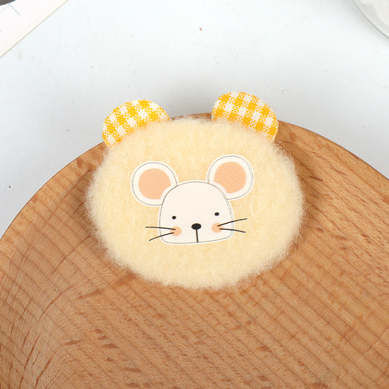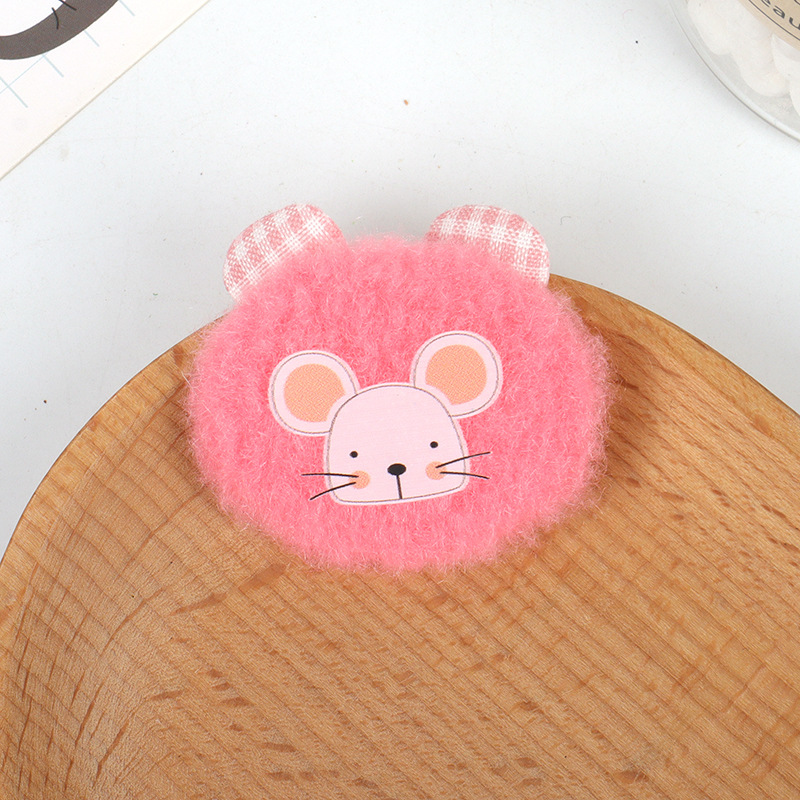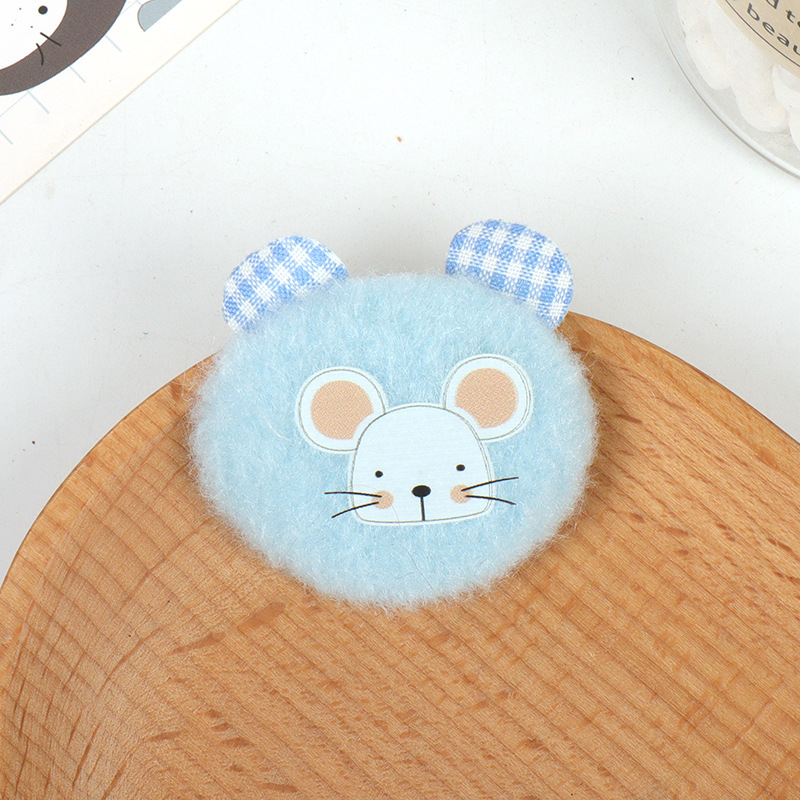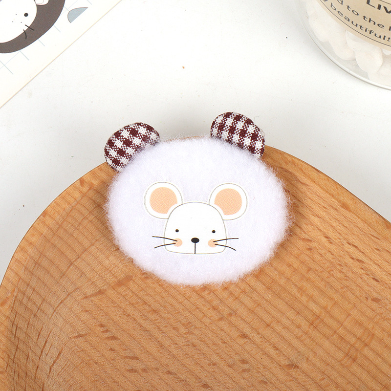 可爱毛绒老鼠贴片 格纹耳朵卡通辅料 手工发圈发夹包包装饰品配件