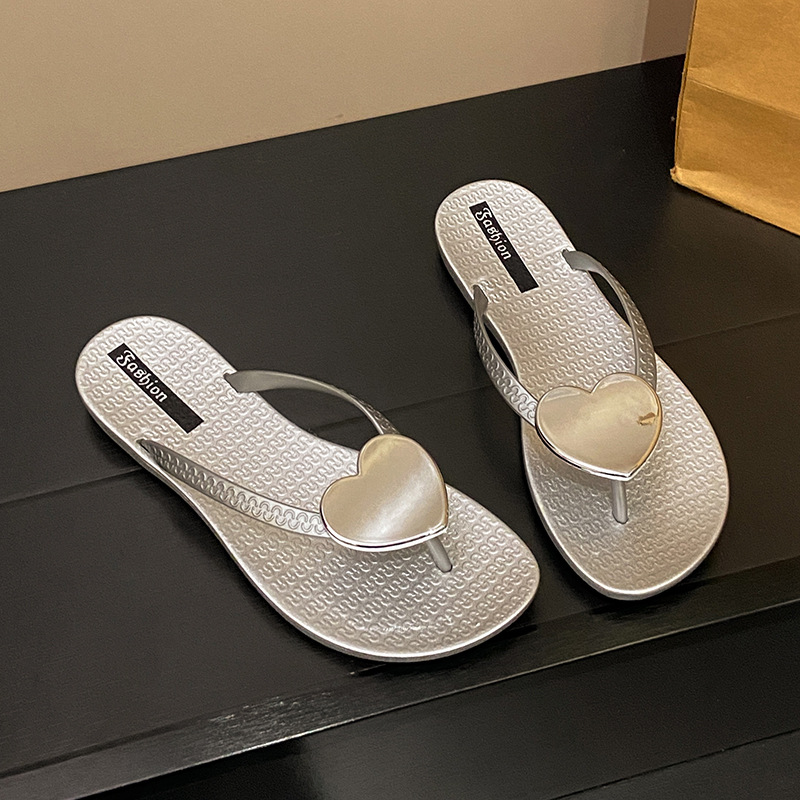 外贸款人字拖女士桃心型新款户外沙滩鞋女生时尚夹脚夹板鞋凉拖鞋
