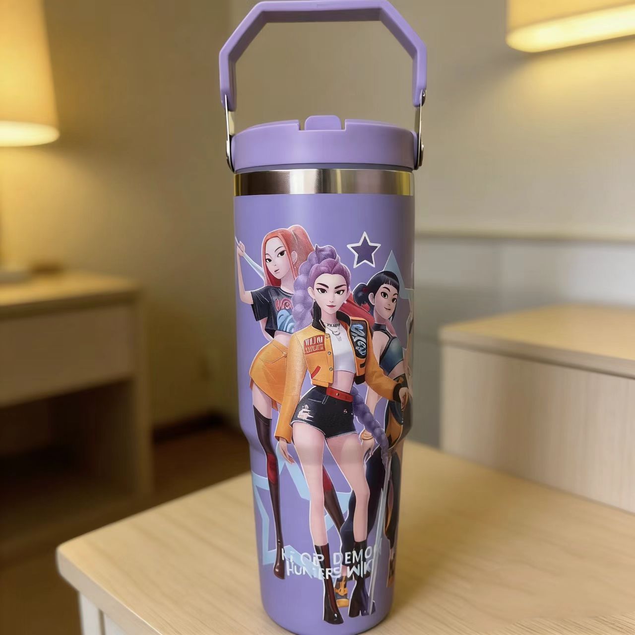 跨境新款猎魔女团30oz冰霸杯304不锈钢手提汽车杯保温杯真空吸管