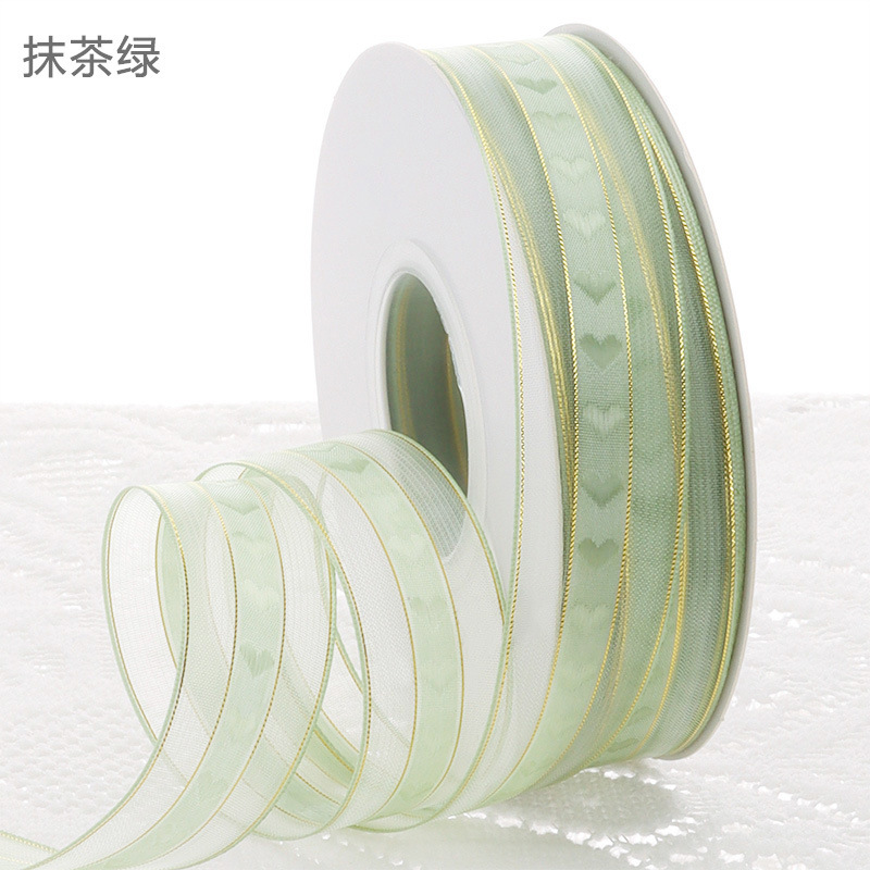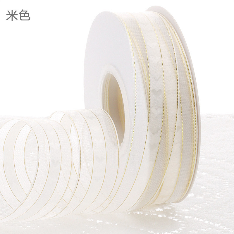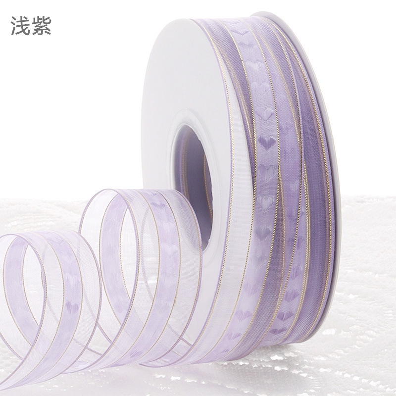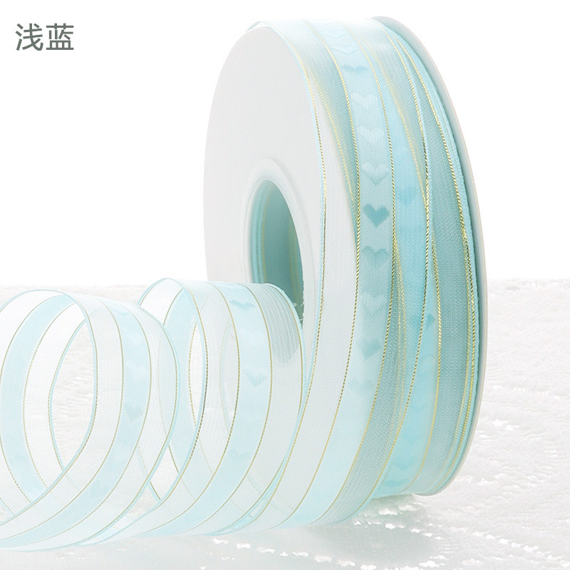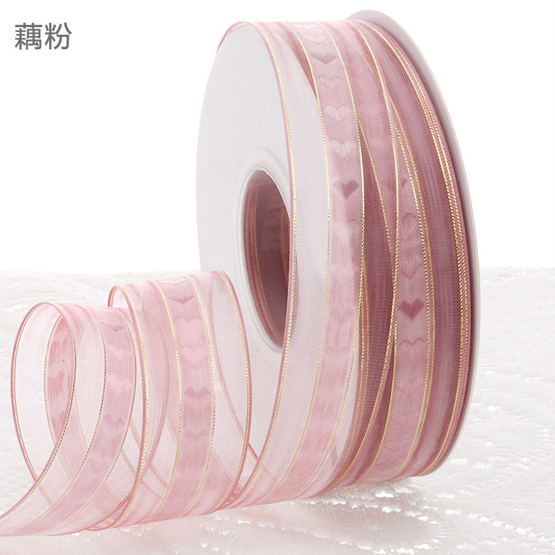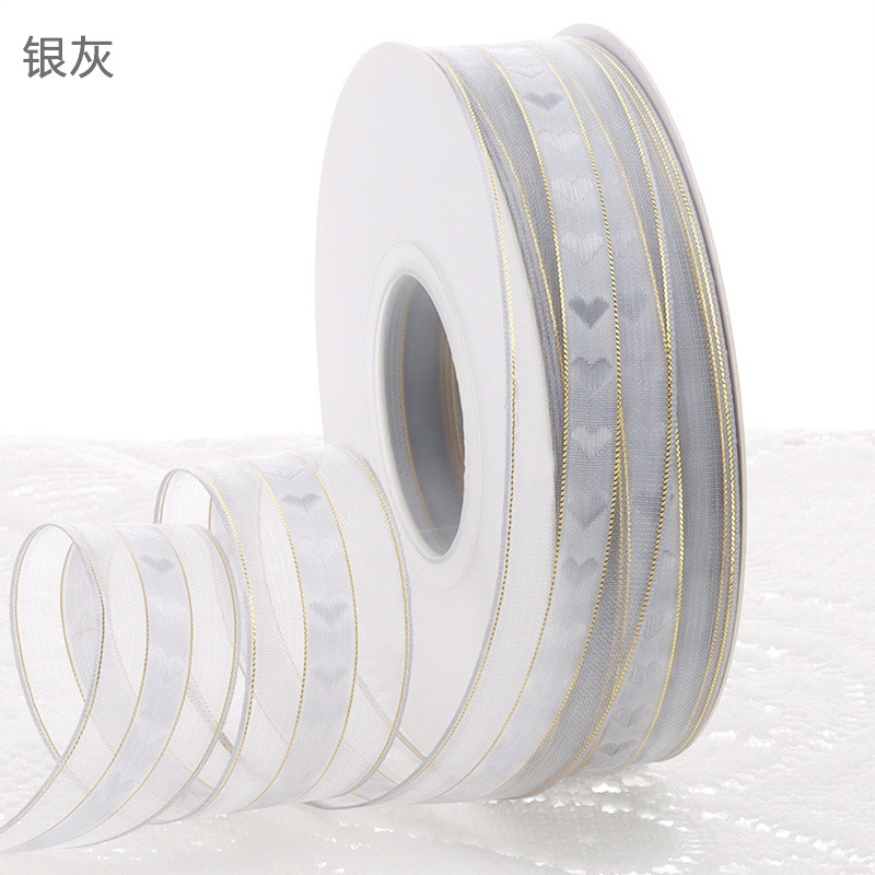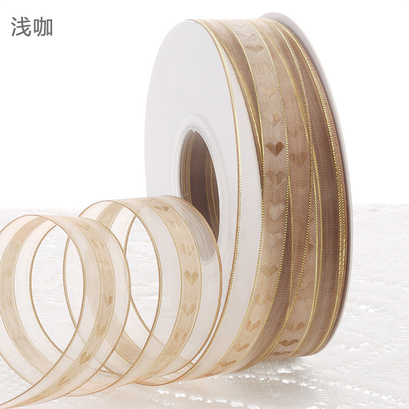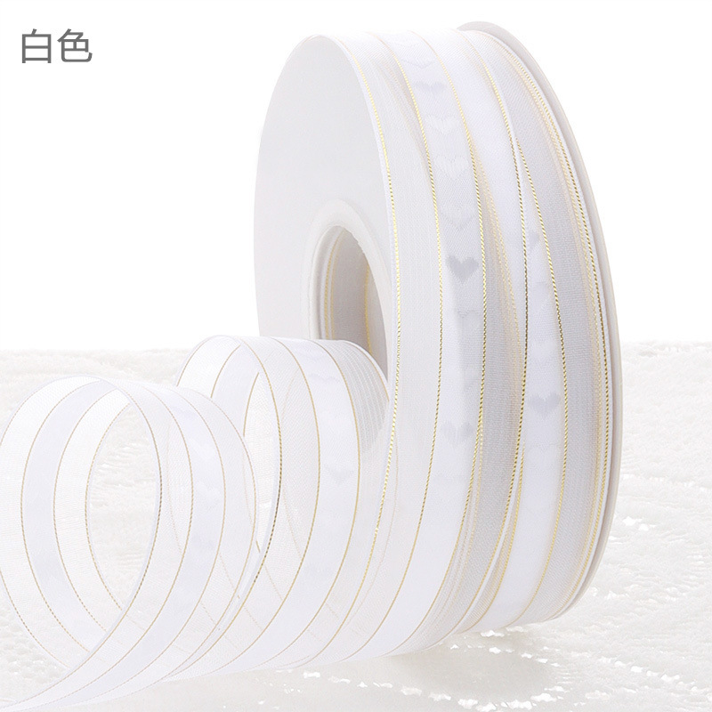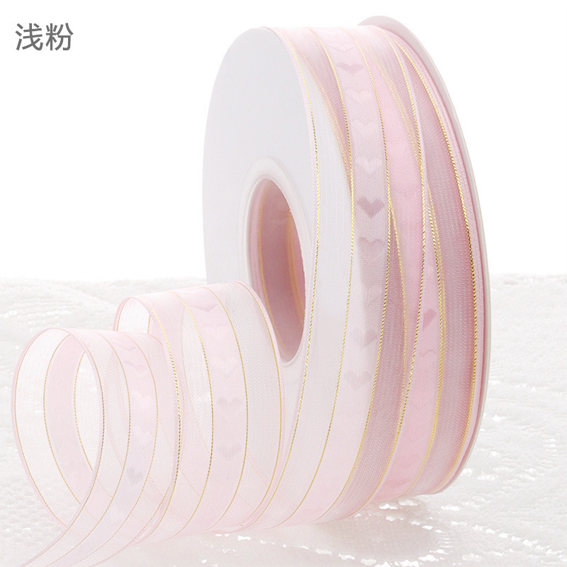 厂家批发新品爱心印花中段纱带织带花束礼盒打包织带金线丝