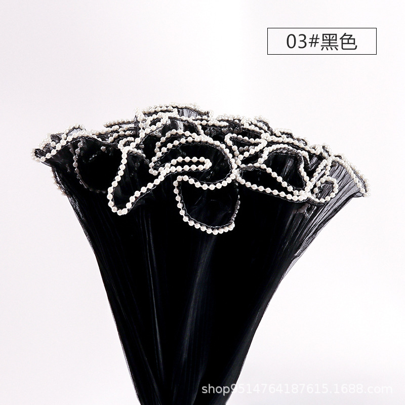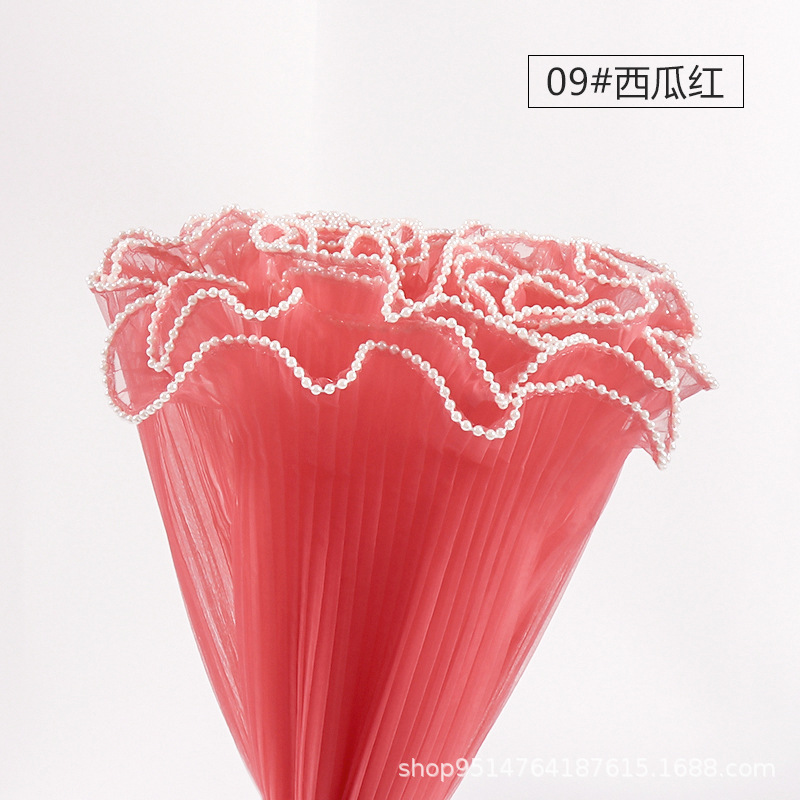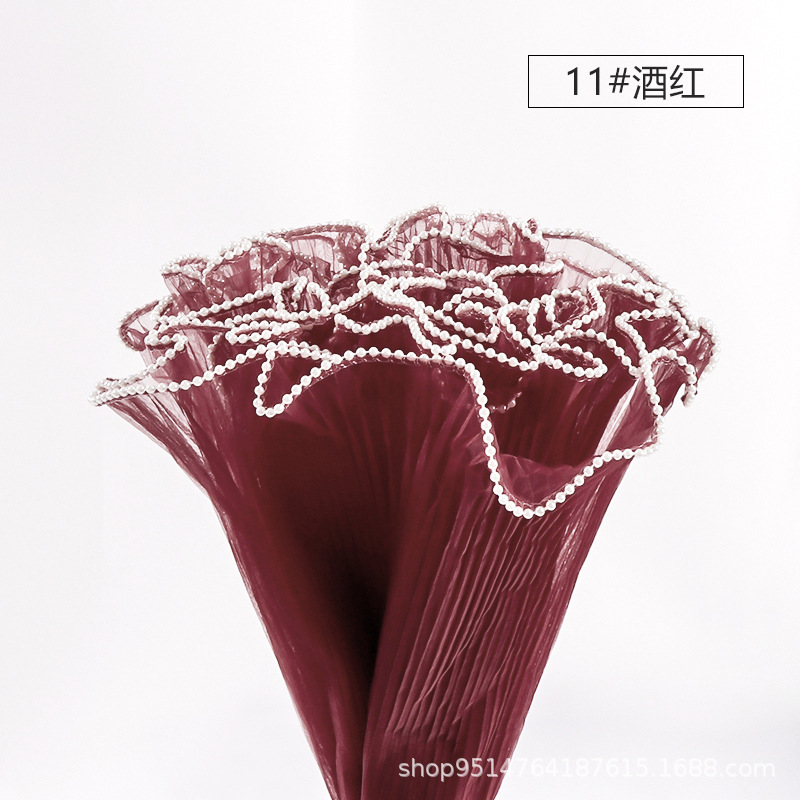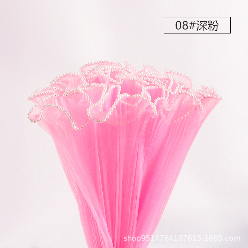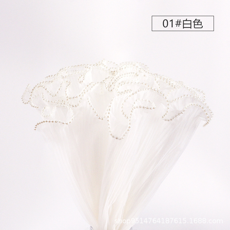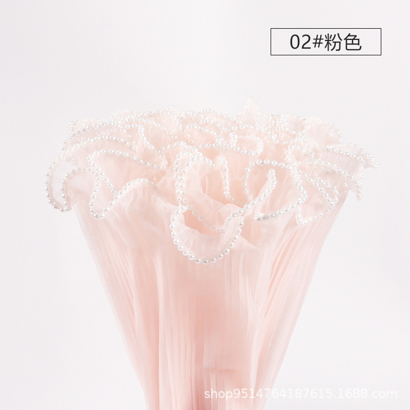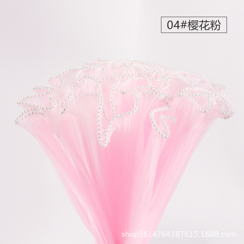 厂家批发珍珠边波浪鲜花包装网纱花束礼品装饰纱网鲜花包材