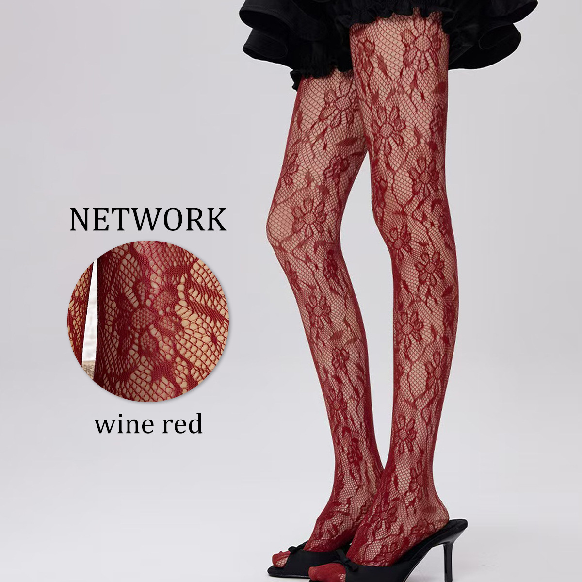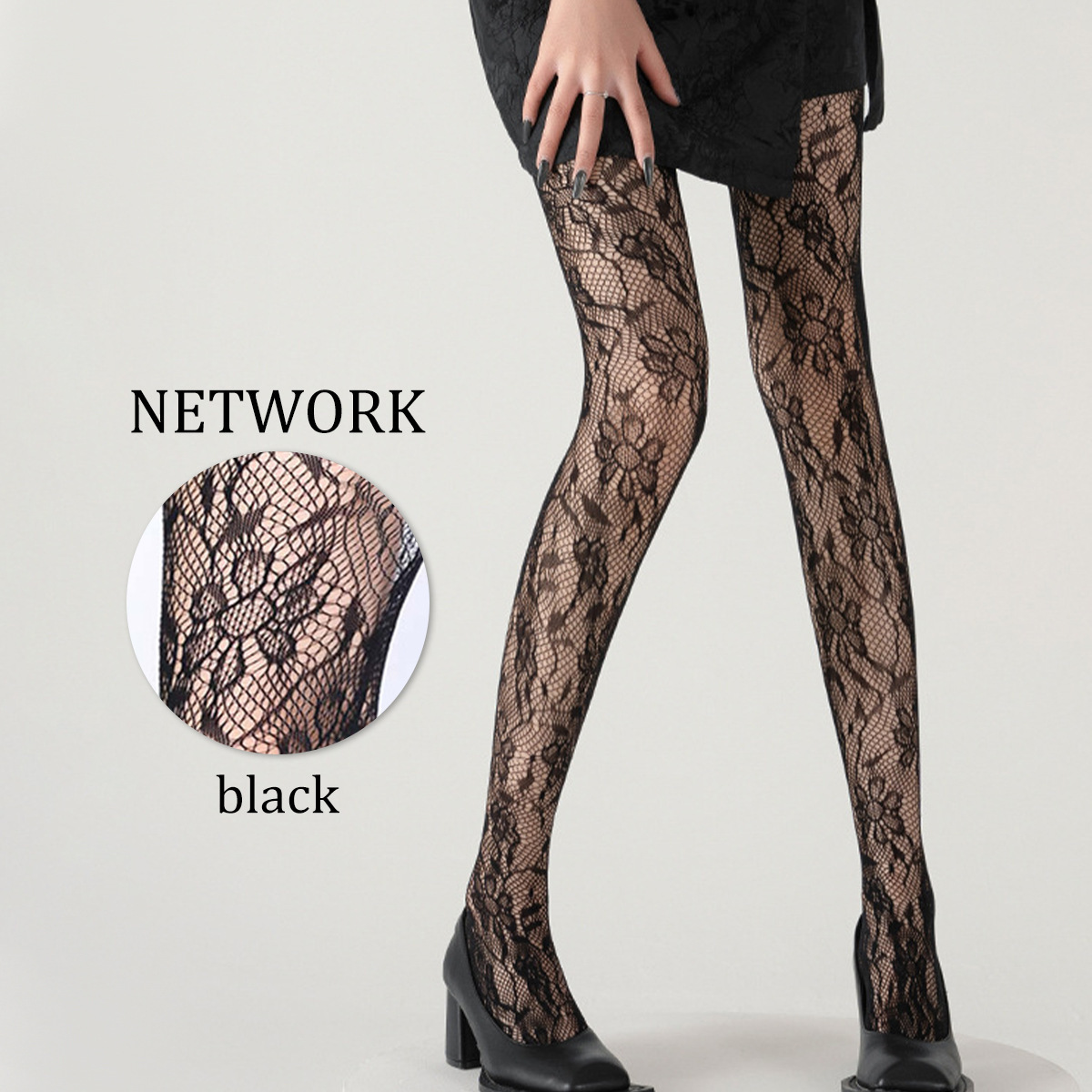 跨境欧美丝袜女薄款防勾丝向日葵印花辣妹风黑丝镂空提花连裤袜
