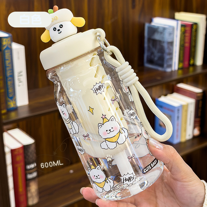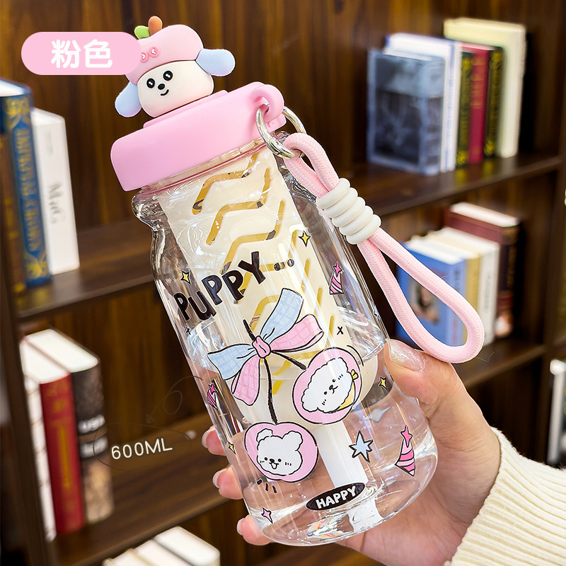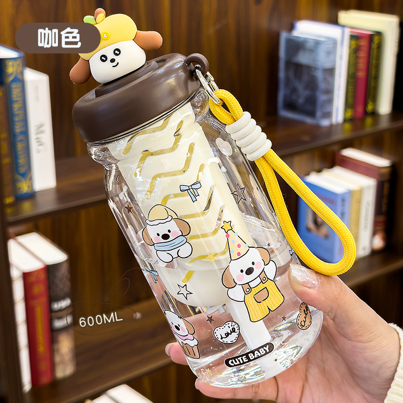 学生软萌小狗水杯2026夏季新款塑料杯女高颜值可爱吸管杯上学专用