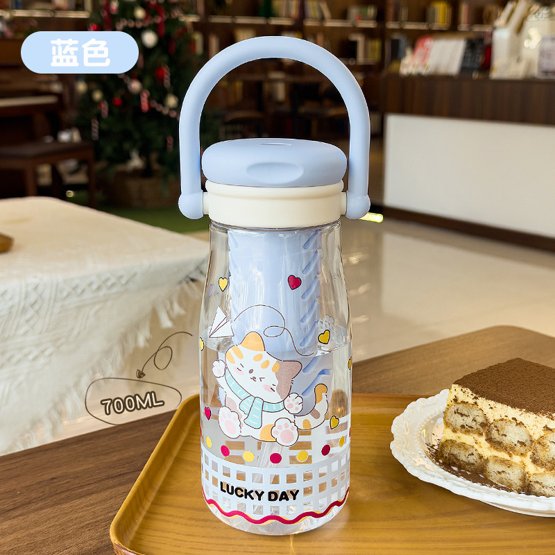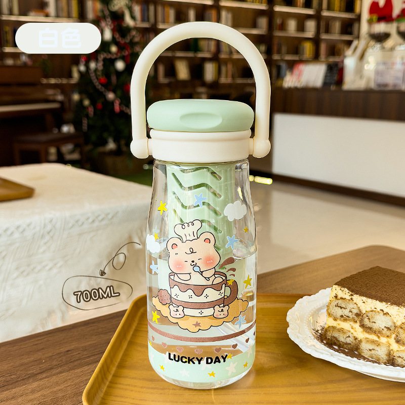 可爱卡通儿童吸管杯学生户外郊游便携随行杯情侣茶水分离塑料水杯