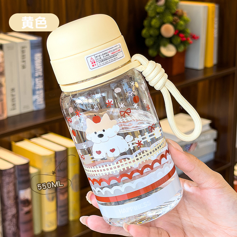 卡通小狗茶隔收纳塑料杯提绳便携2026新款夏天喝水杯子女生高颜值