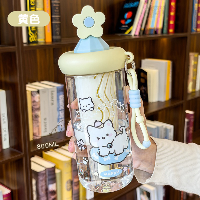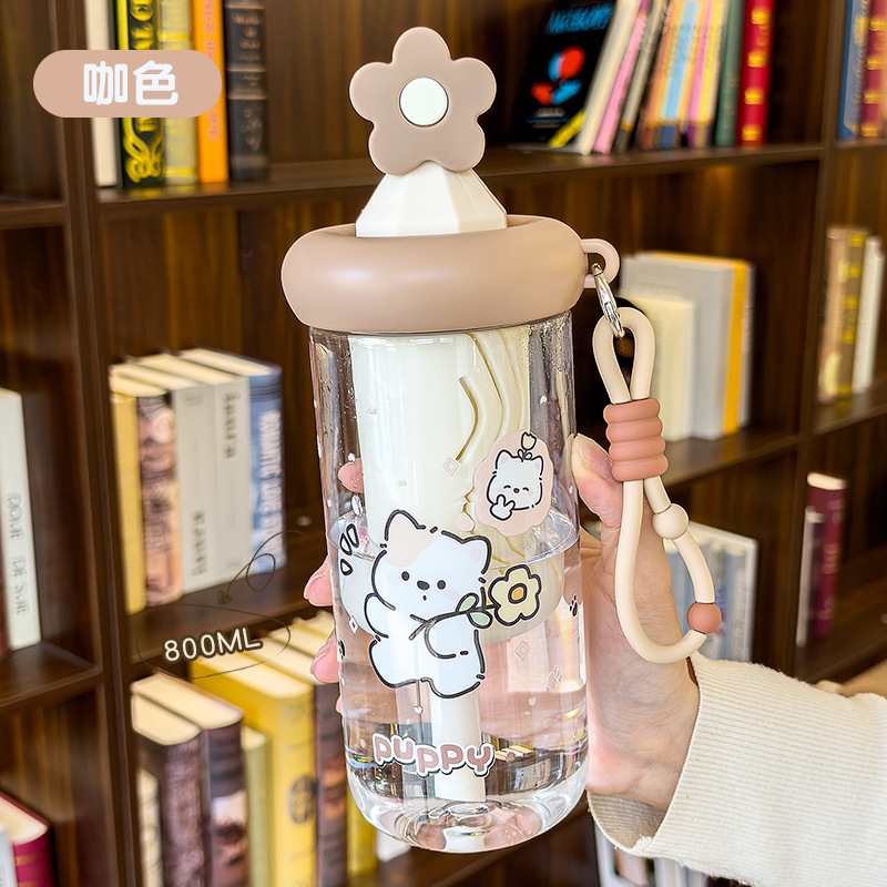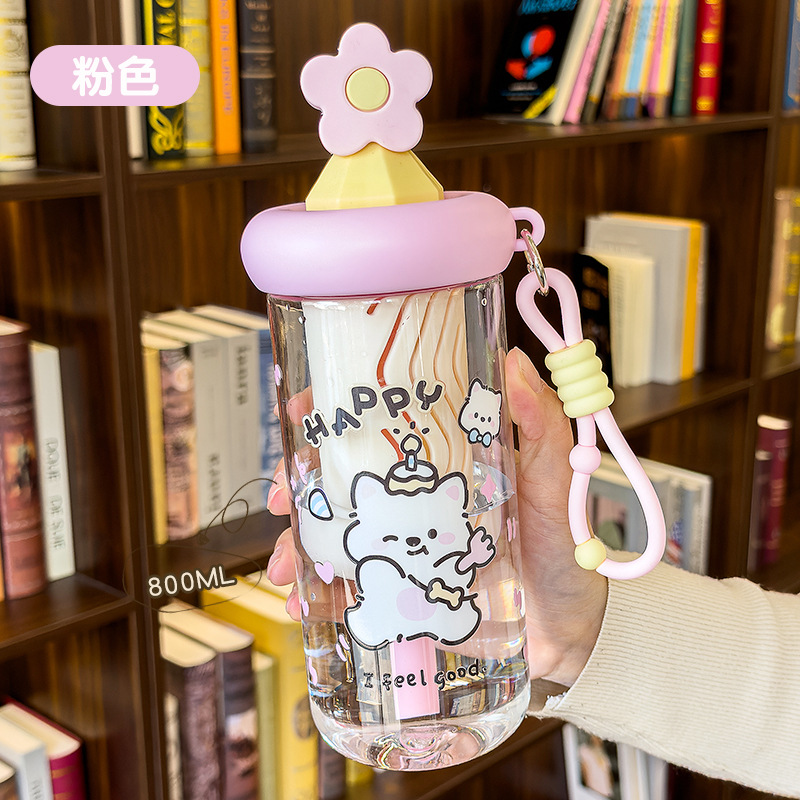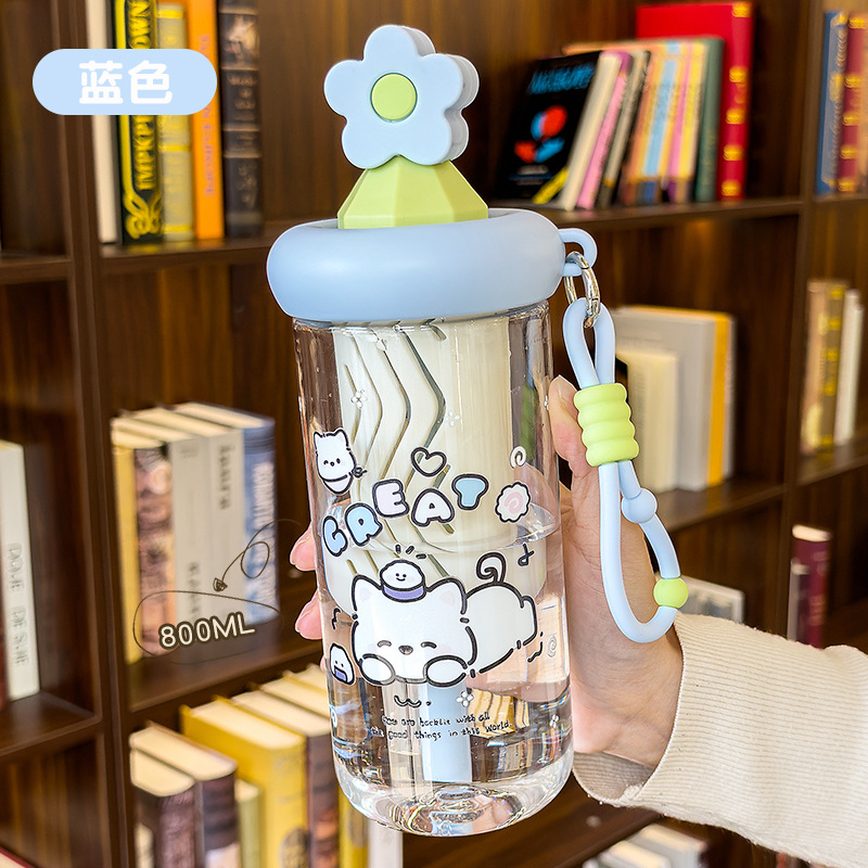 2026夏季卡通萌熊花茶吸管杯女高颜值带茶仓茶水分离塑料水杯学生