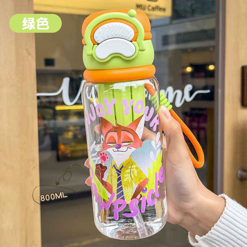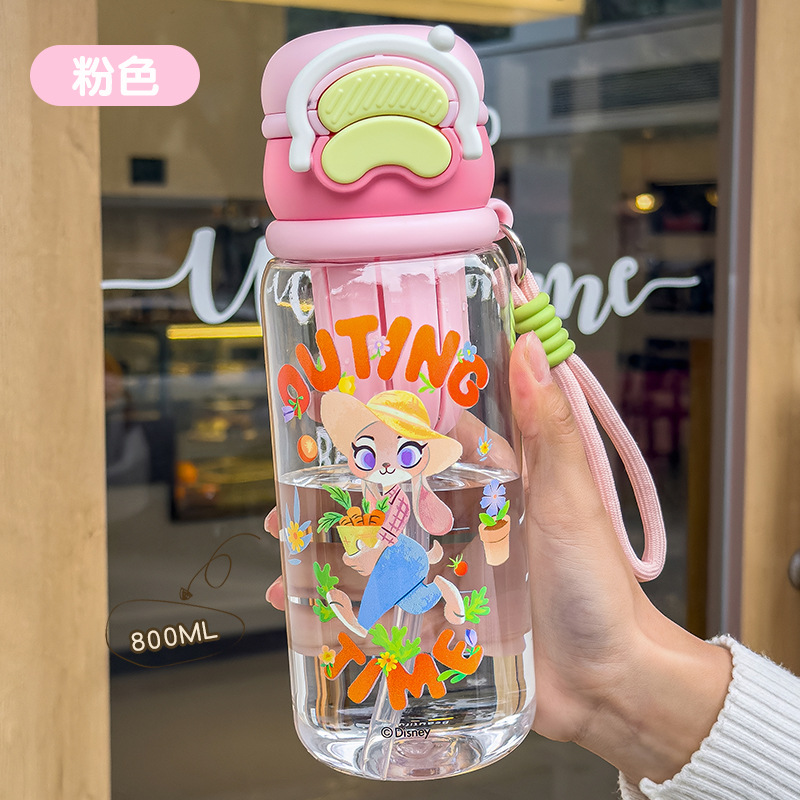 尼克朱迪塑料杯子可爱卡通学生吸管杯女高颜值双饮便携带提绳水杯