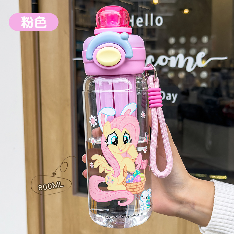 小马宝莉儿童水杯大容量女高颜值吸管杯学生上学专用杯子提绳便携