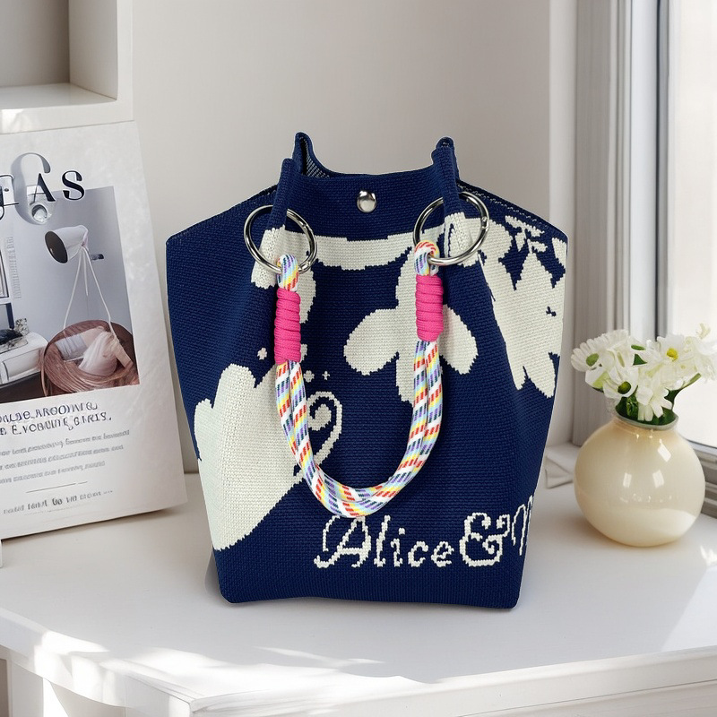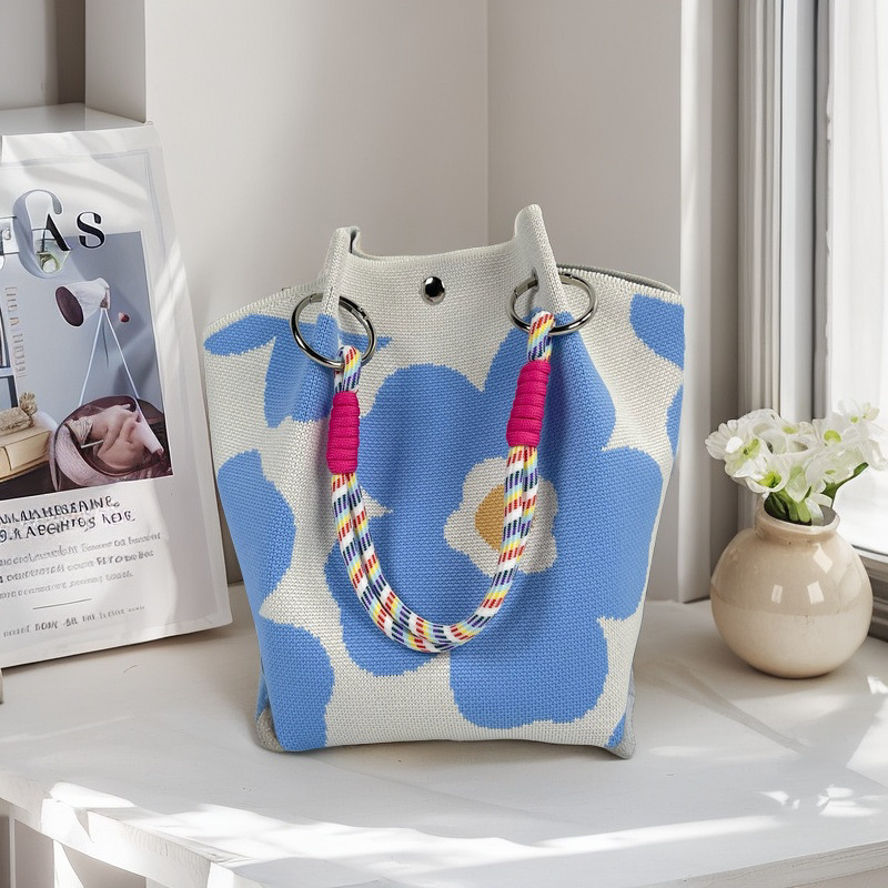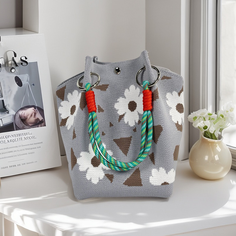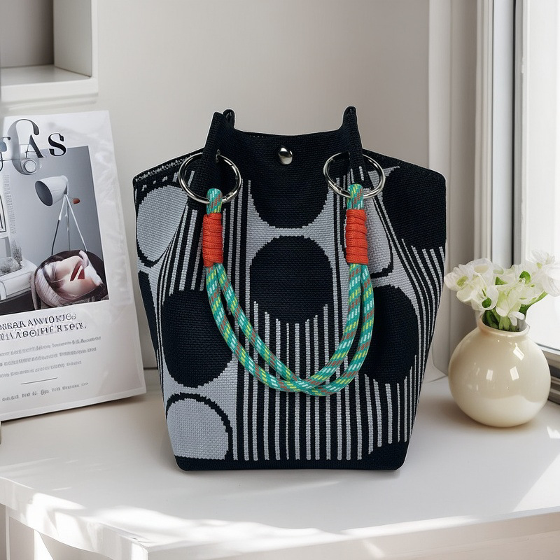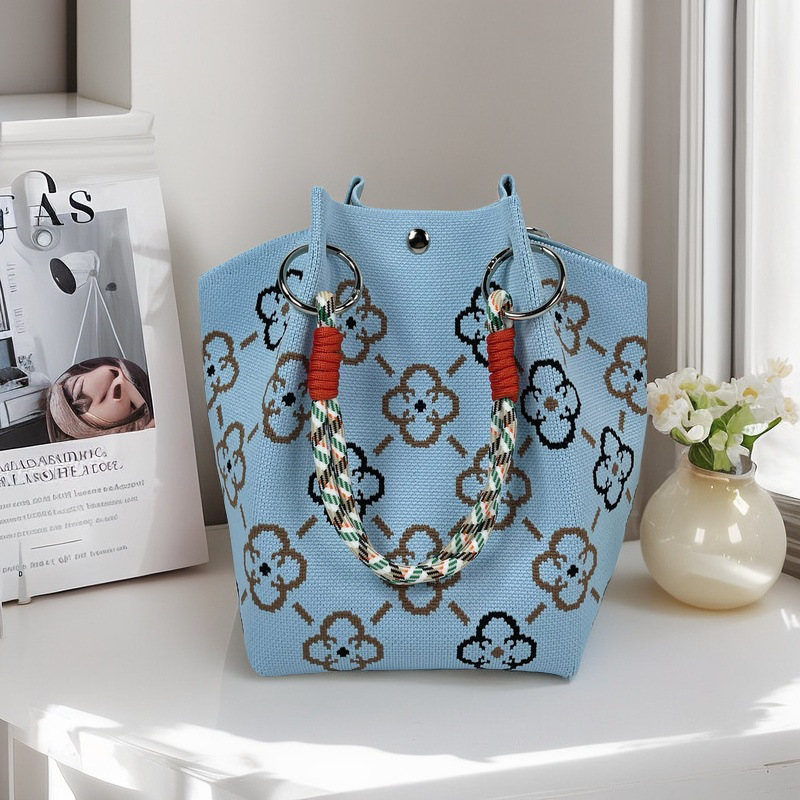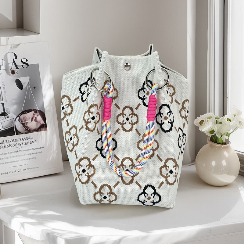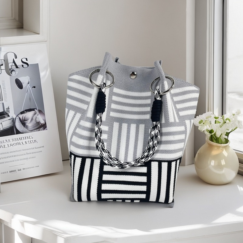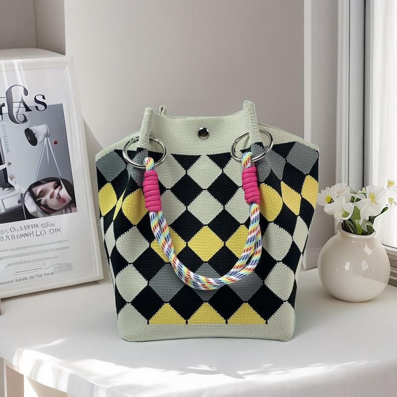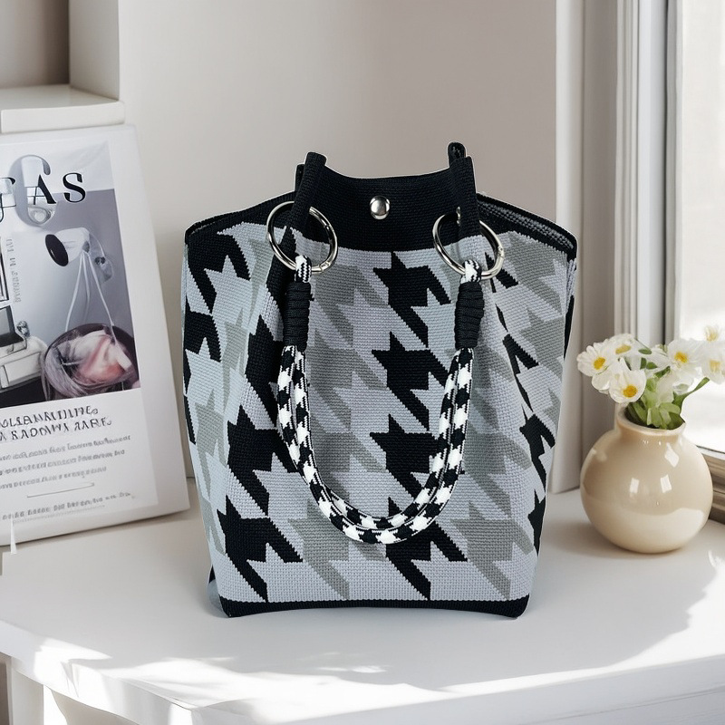 亚马逊ebay复古千鸟格毛线编织单肩包百搭休闲包针织托特包手提包