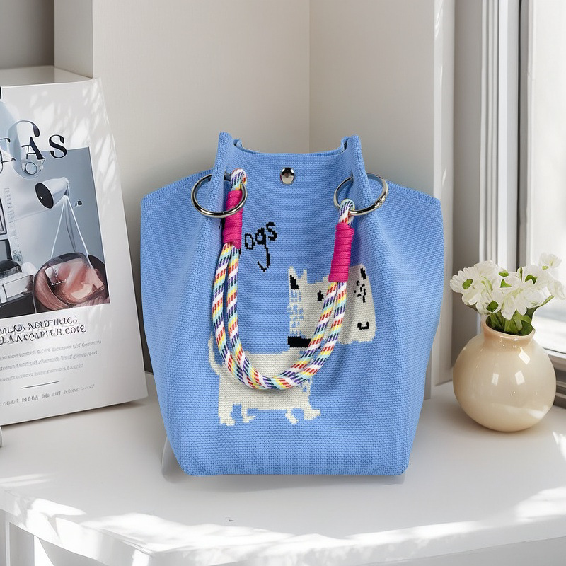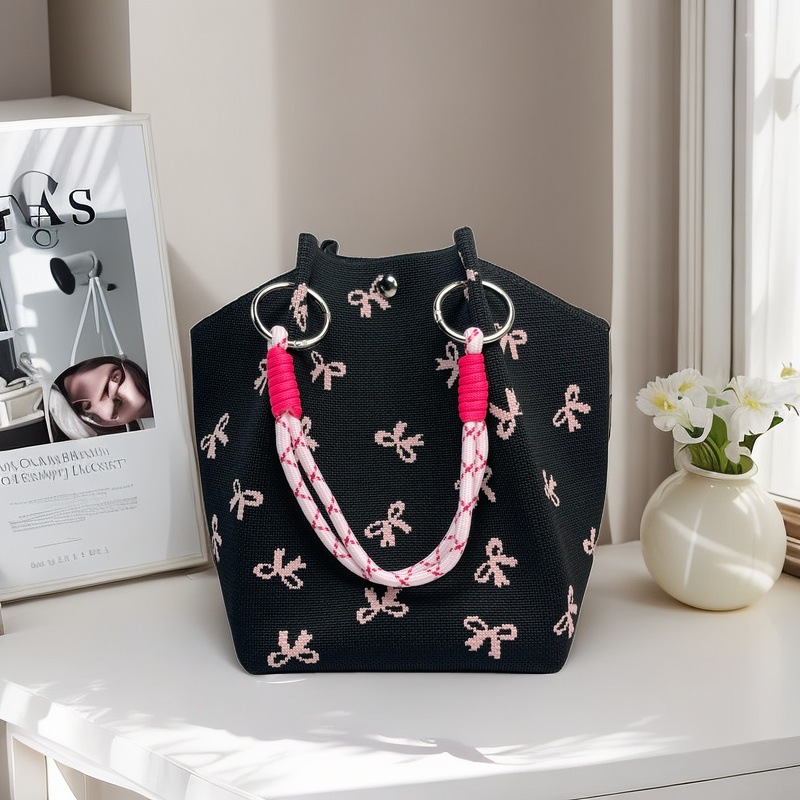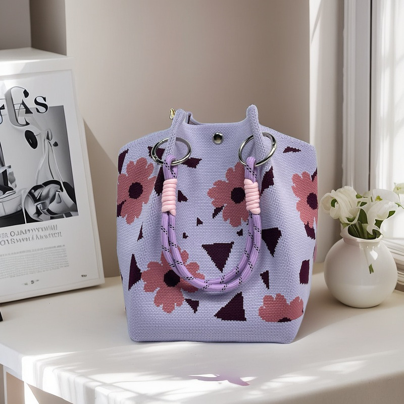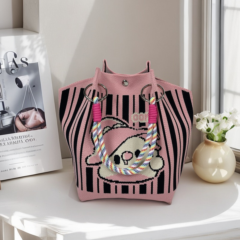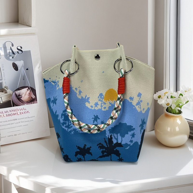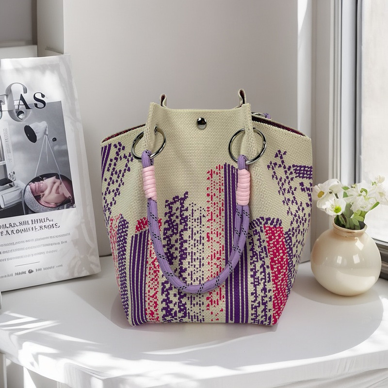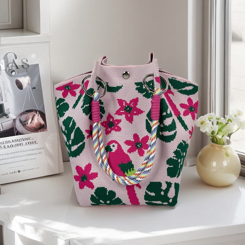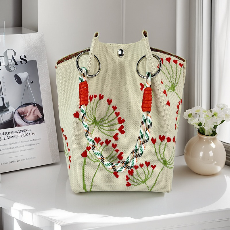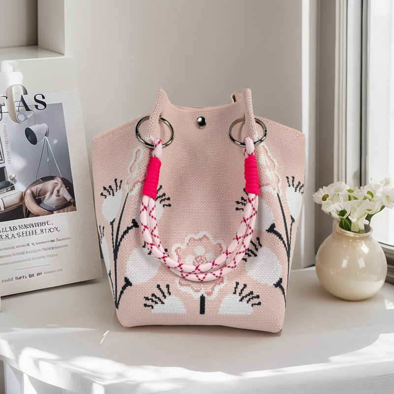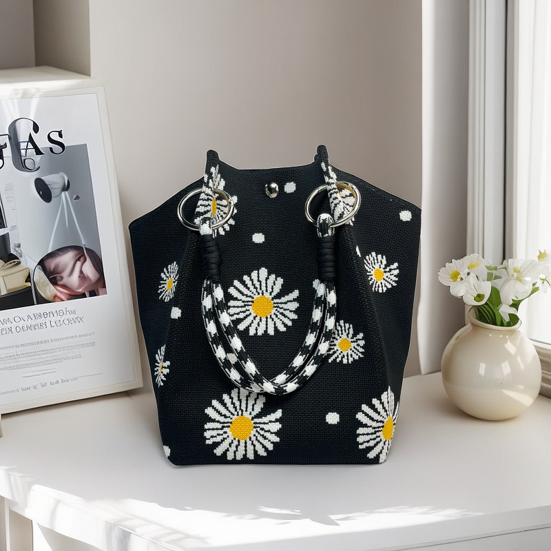 亚马逊ebay复古千鸟格毛线编织单肩包百搭休闲包针织托特包手提包