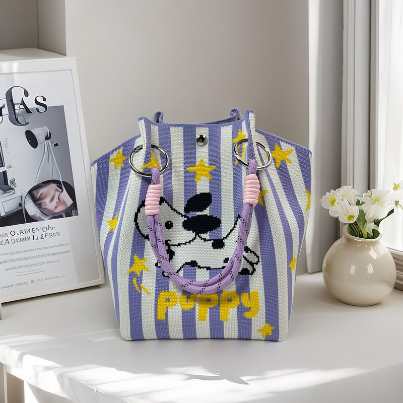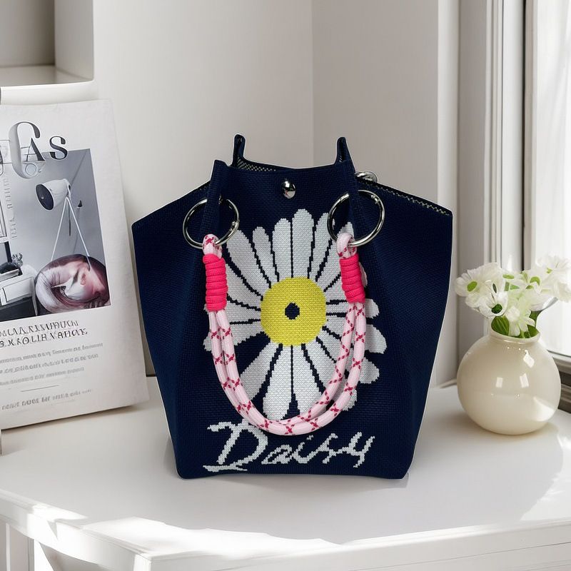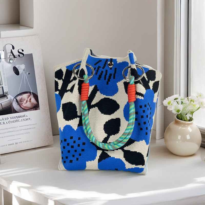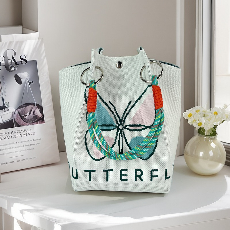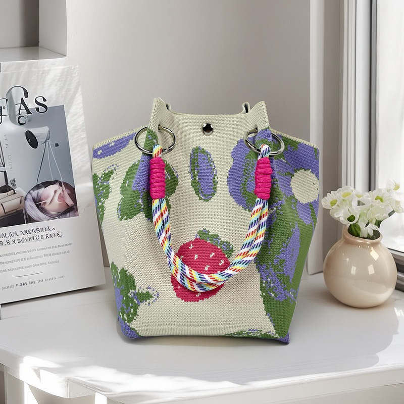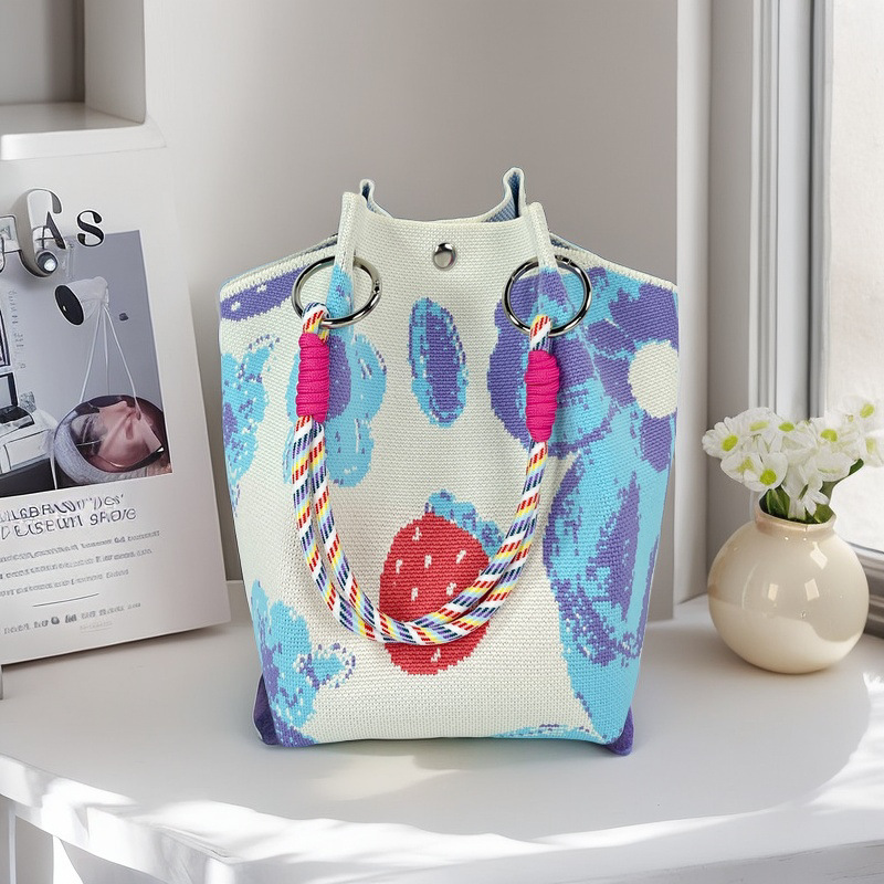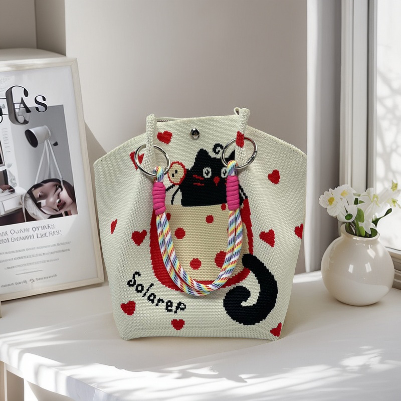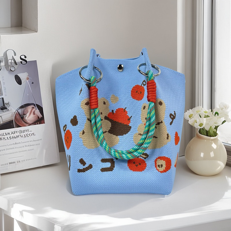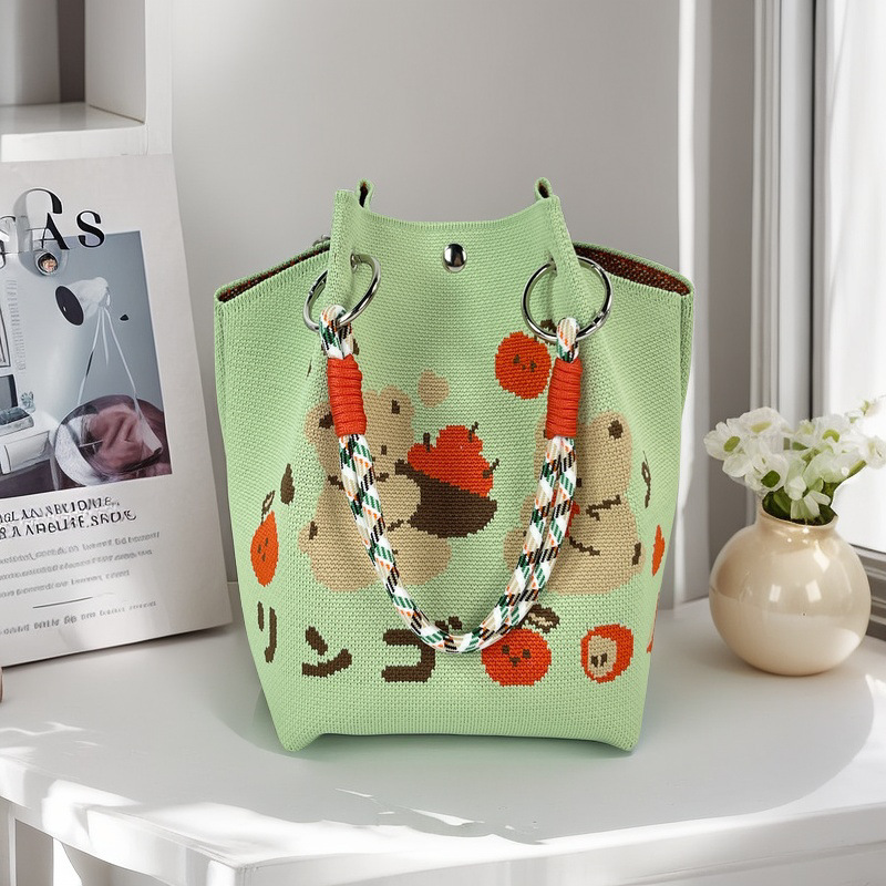 亚马逊ebay复古千鸟格毛线编织单肩包百搭休闲包针织托特包手提包