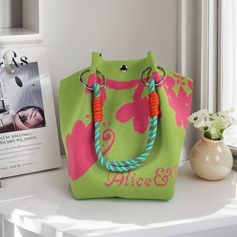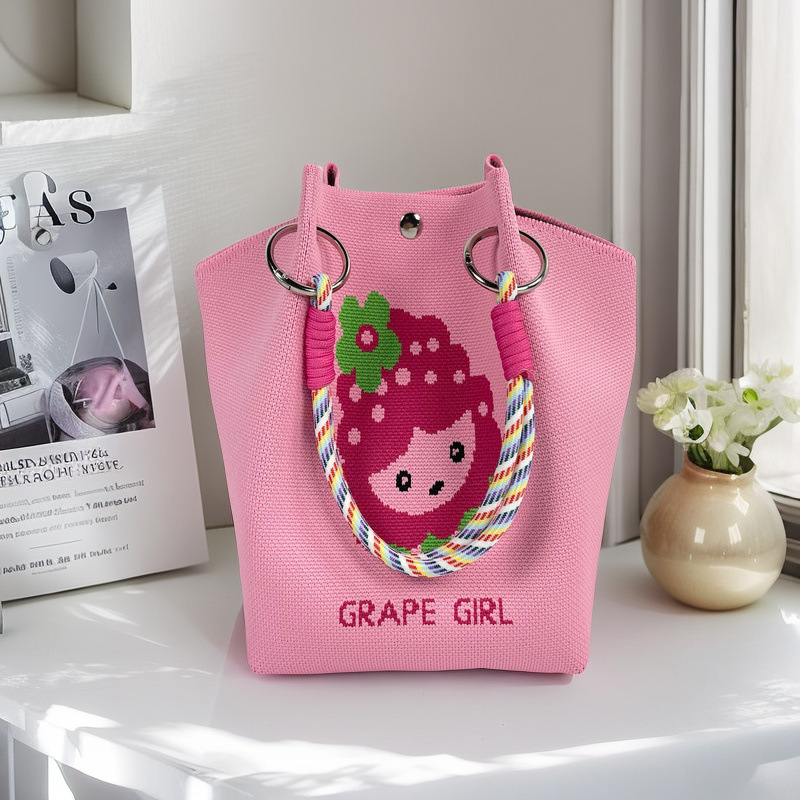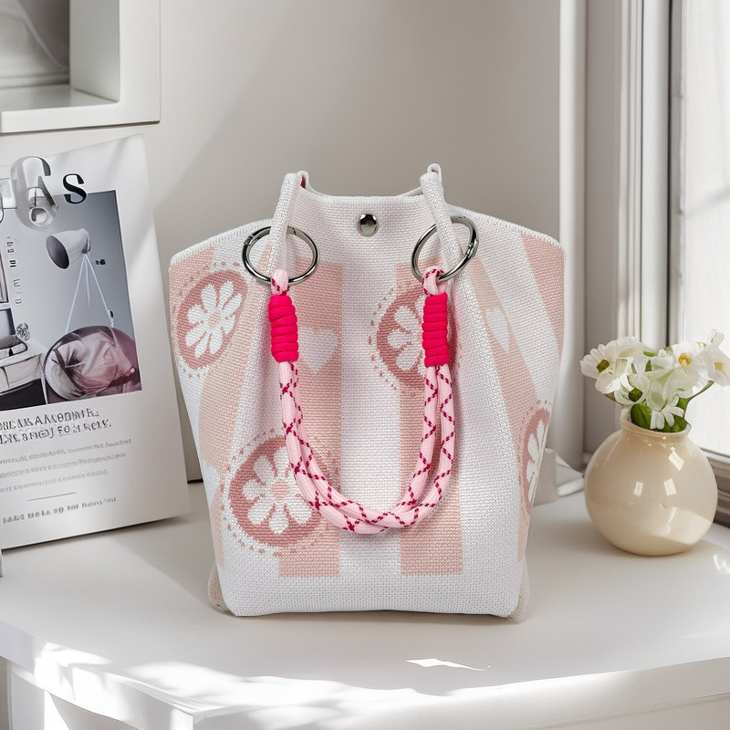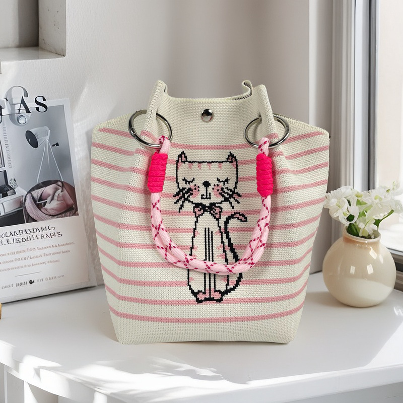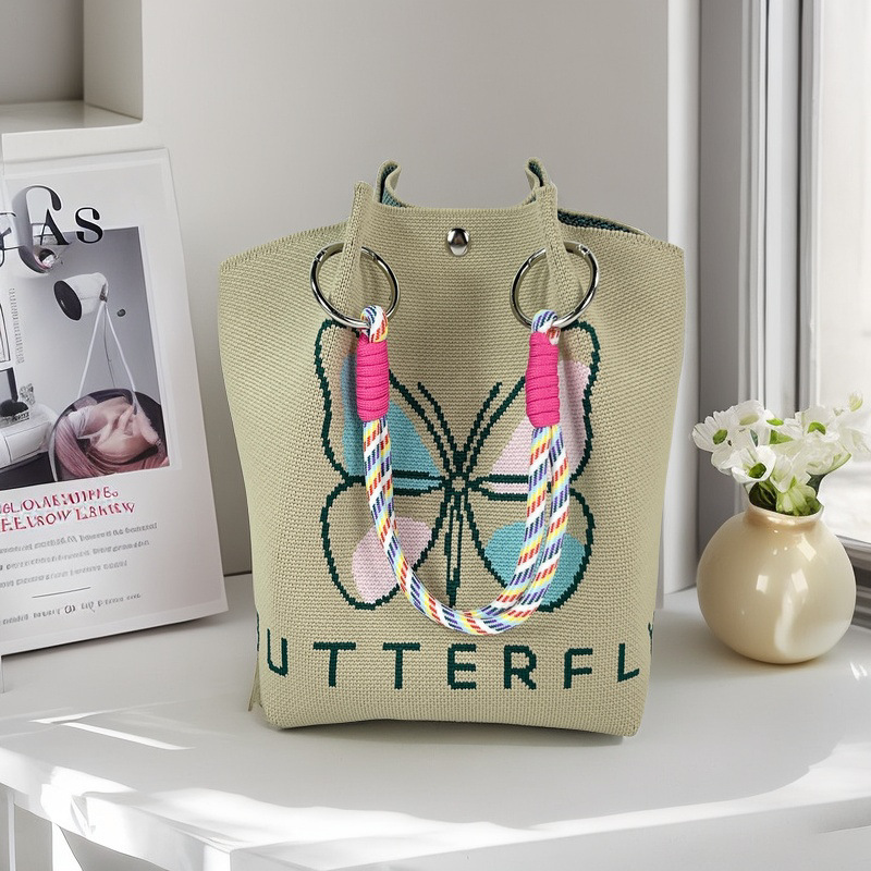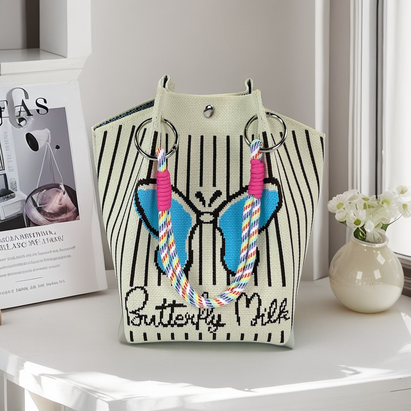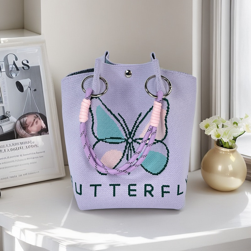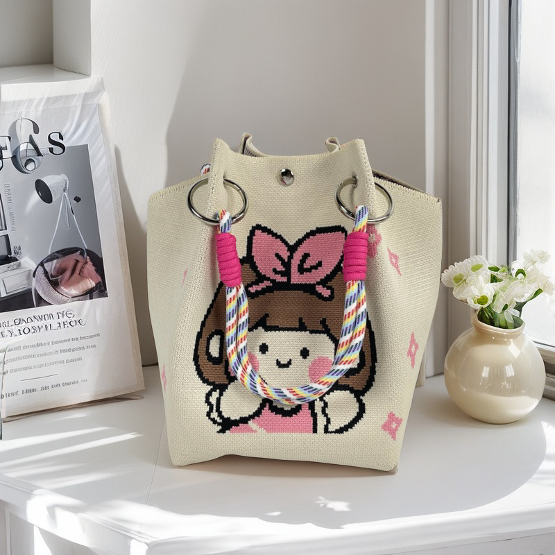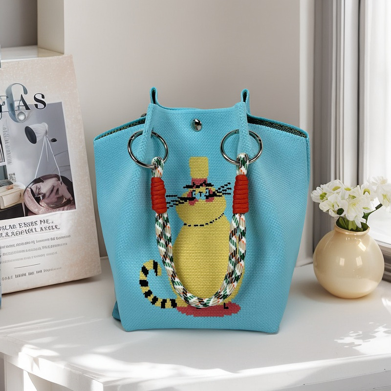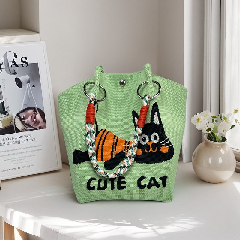 亚马逊ebay复古千鸟格毛线编织单肩包百搭休闲包针织托特包手提包