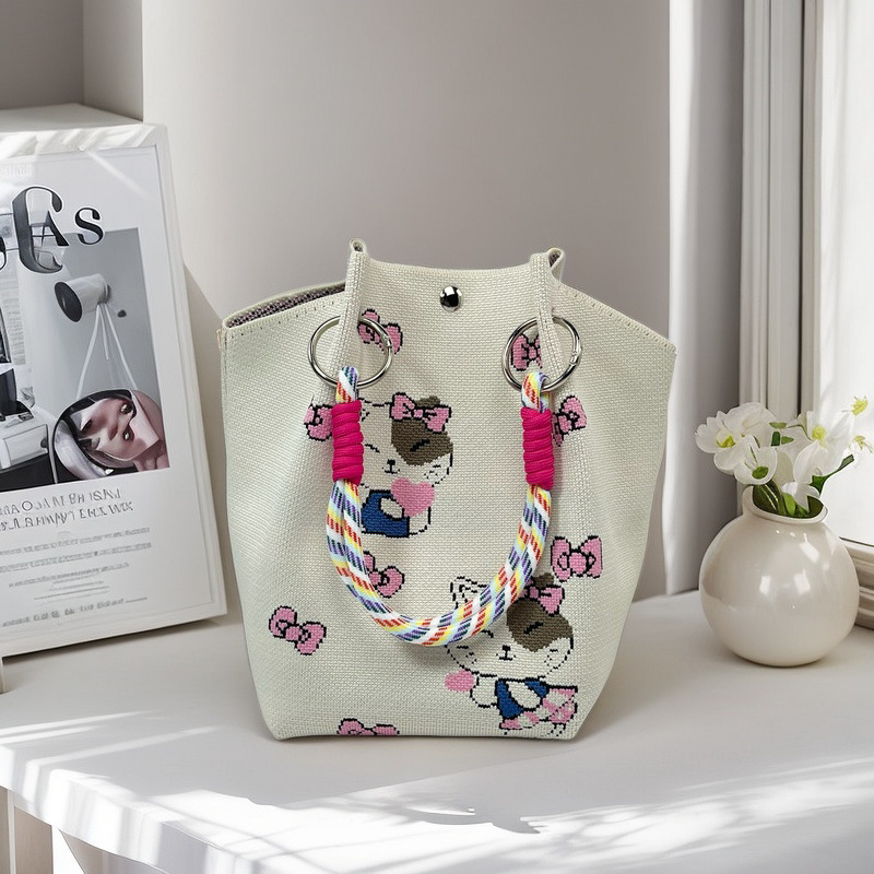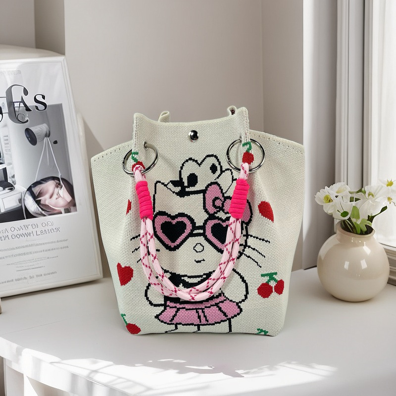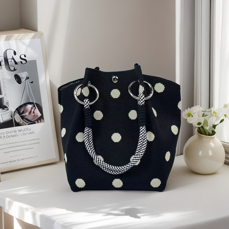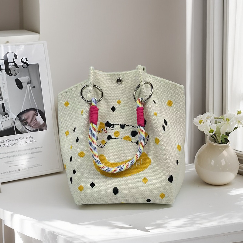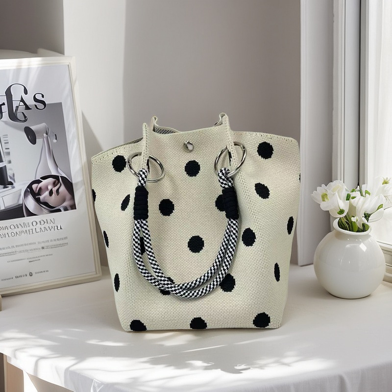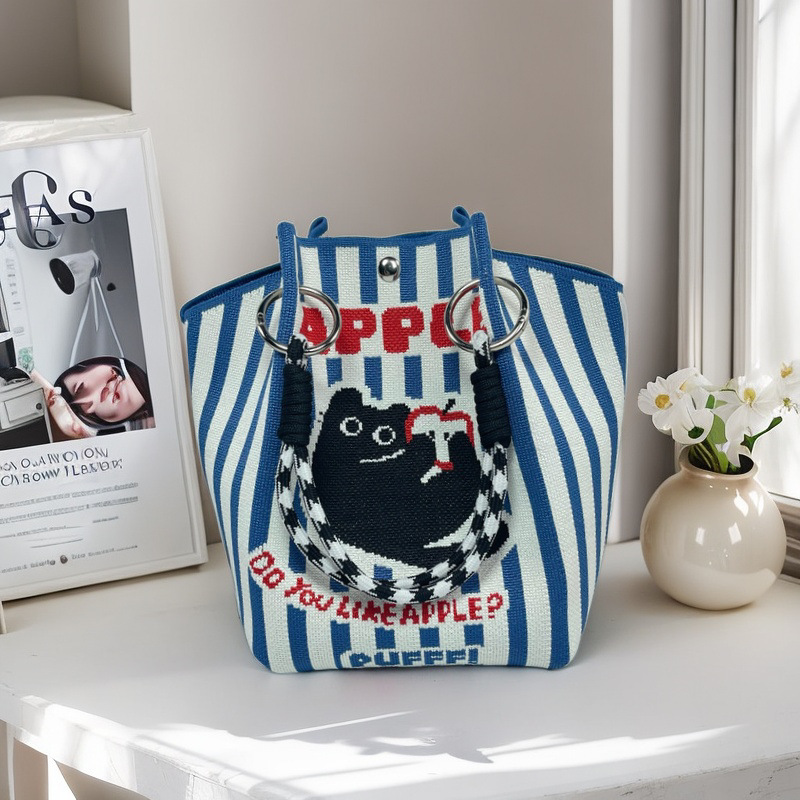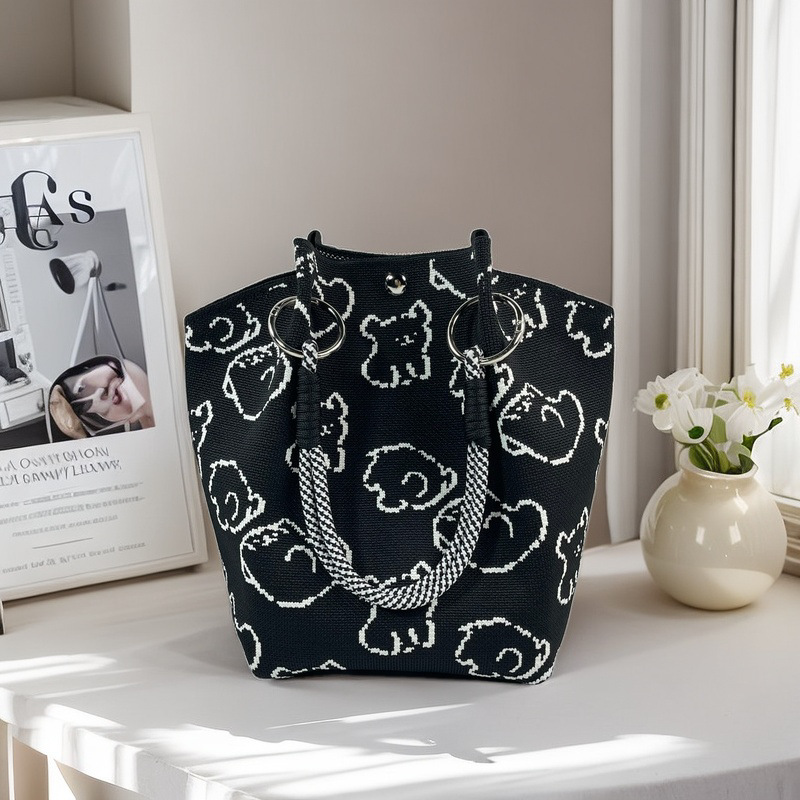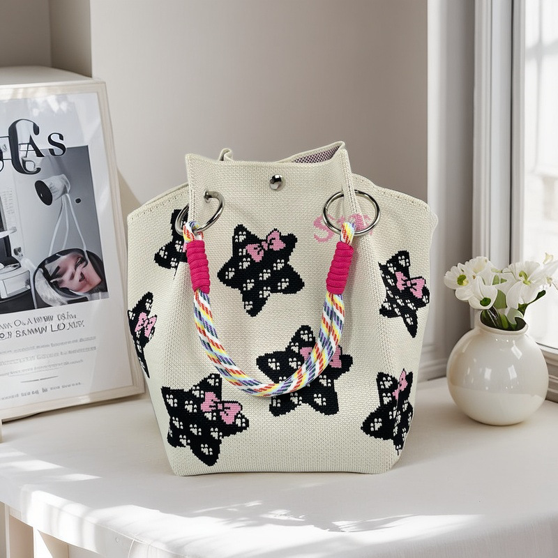 新款春夏韩版花朵针织水桶包包外出旅游手拎包百搭通勤便携手提包