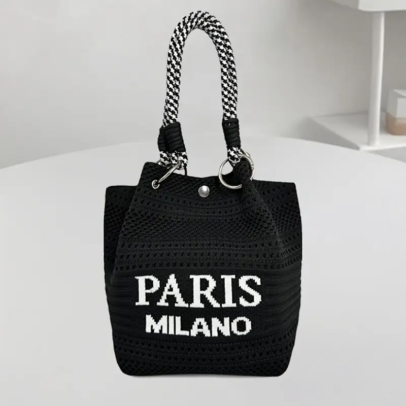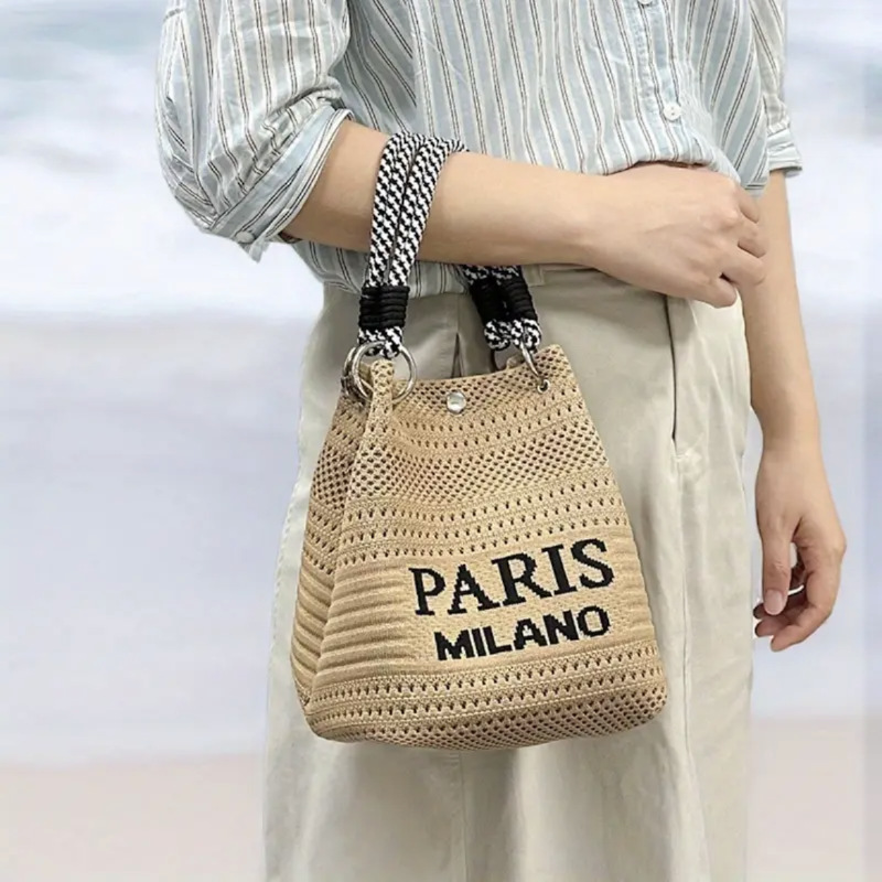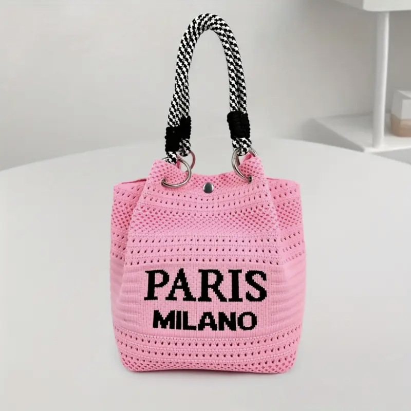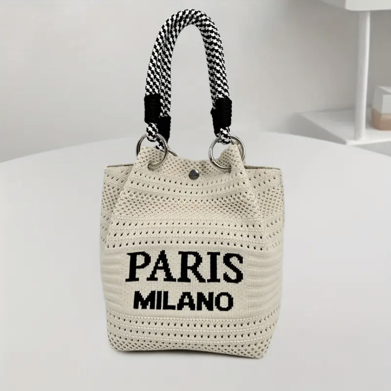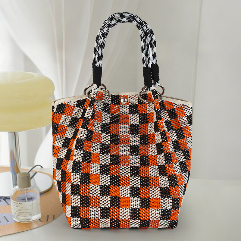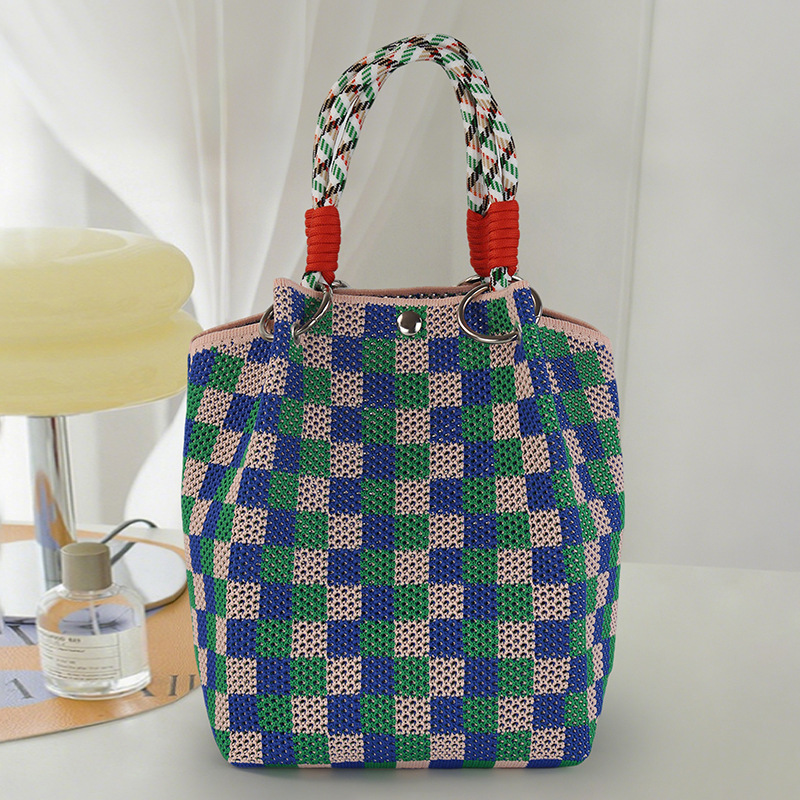 跨境编织包韩国ins复古镂空手提袋单肩包针织斜挎纯色飞织包