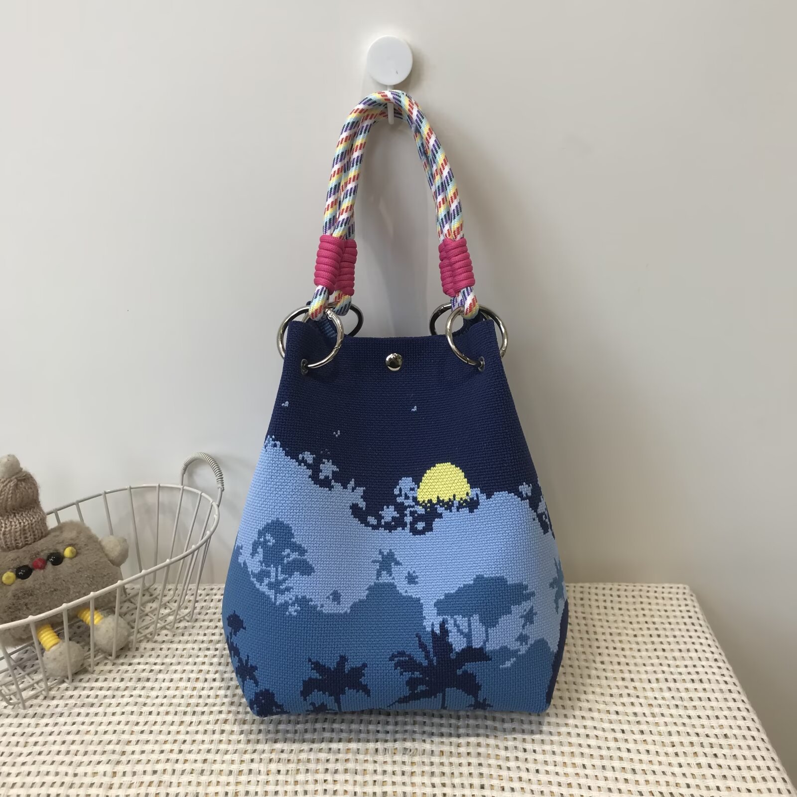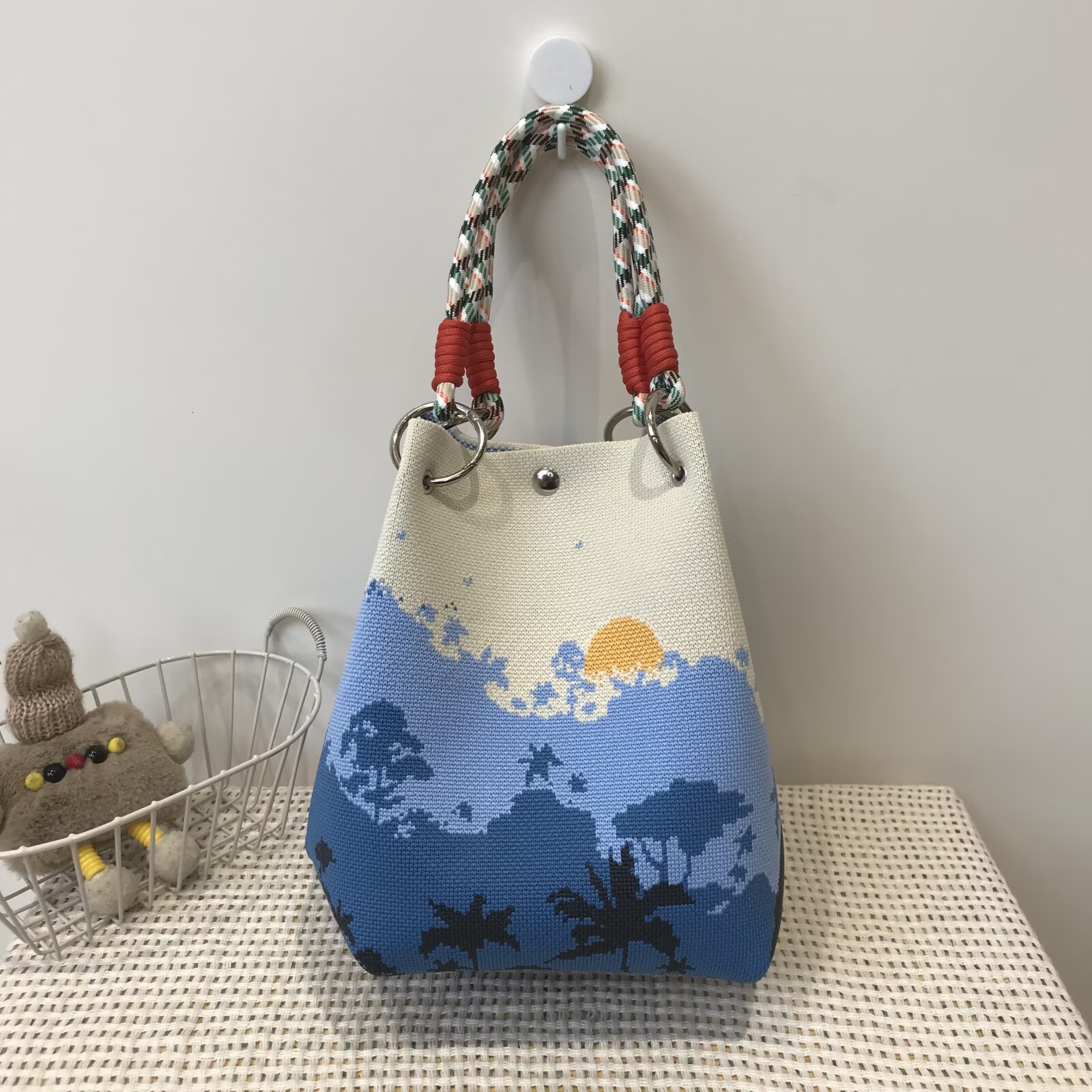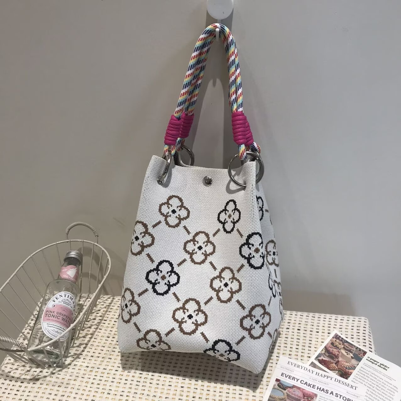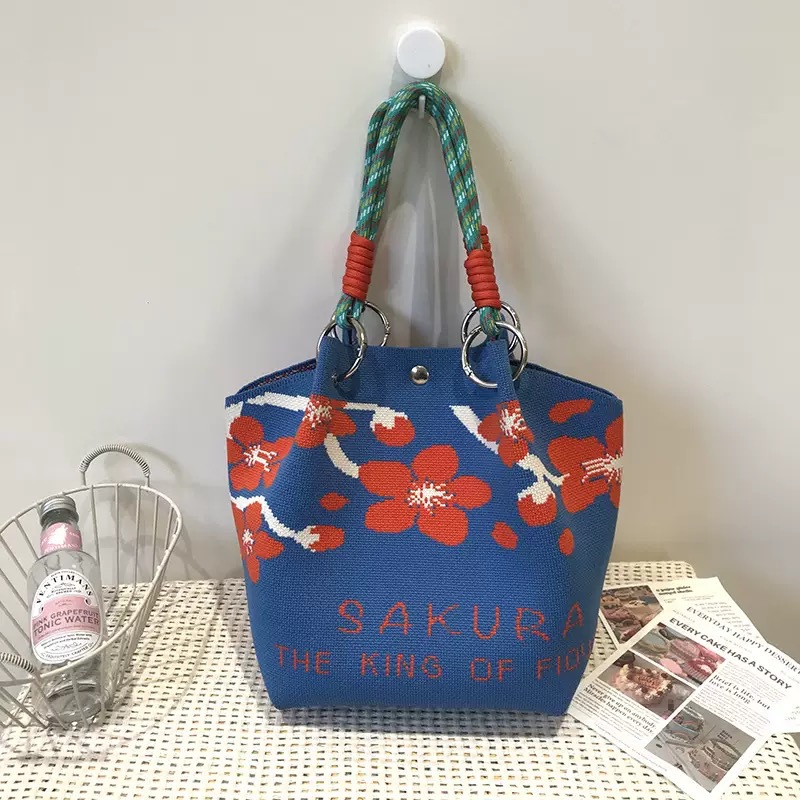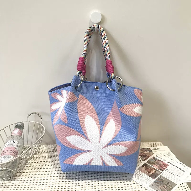 韩版新款ins绳结手提包春秋手提水桶包出游百搭小众大容量手拎包
