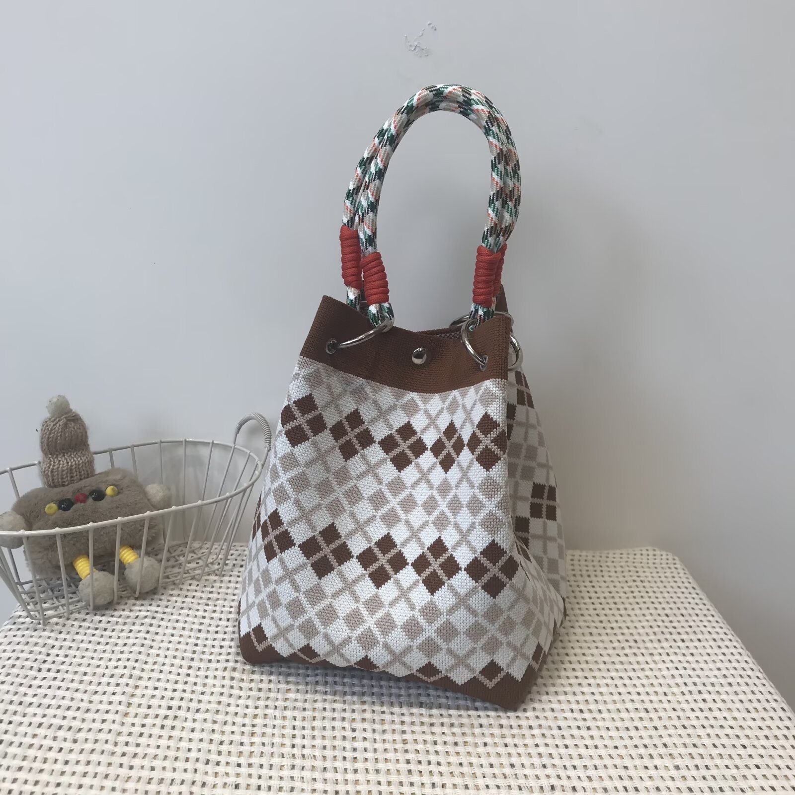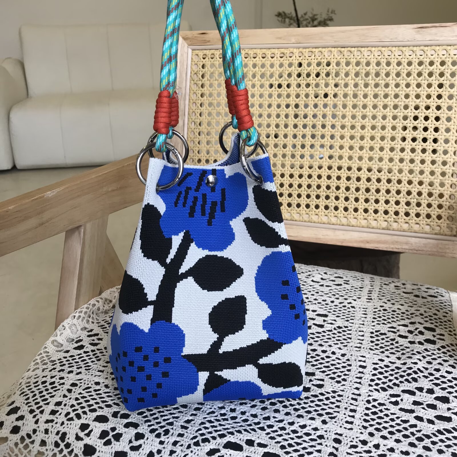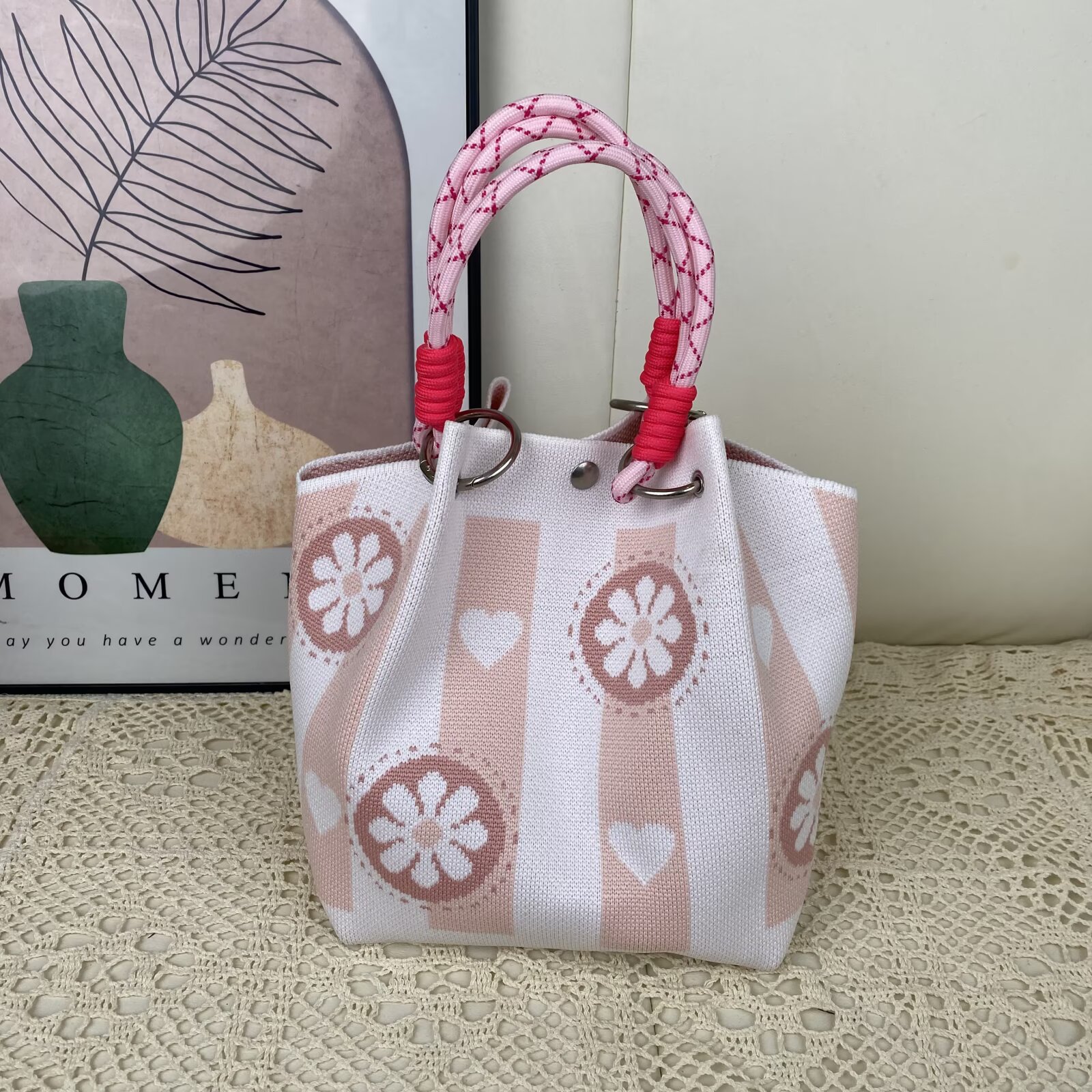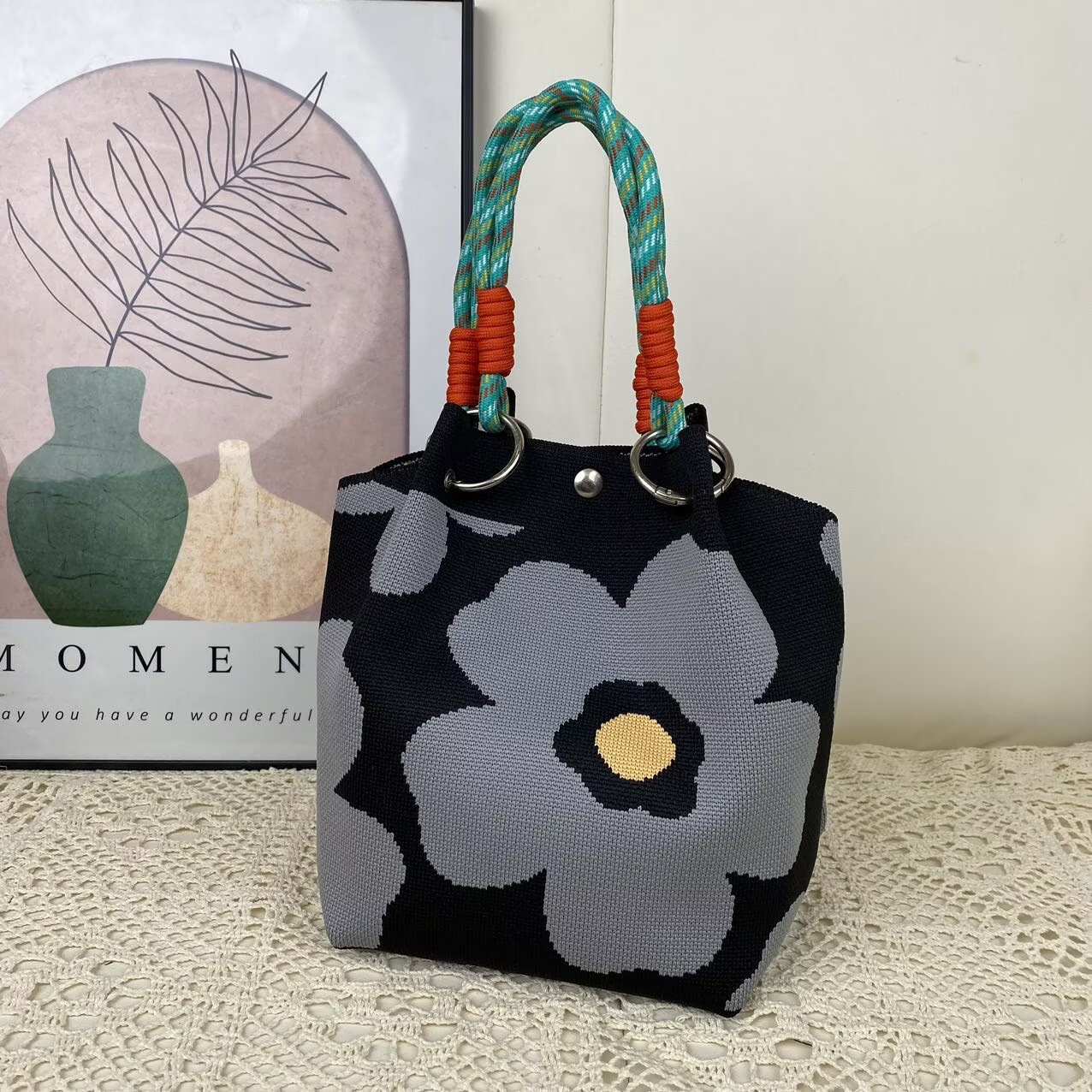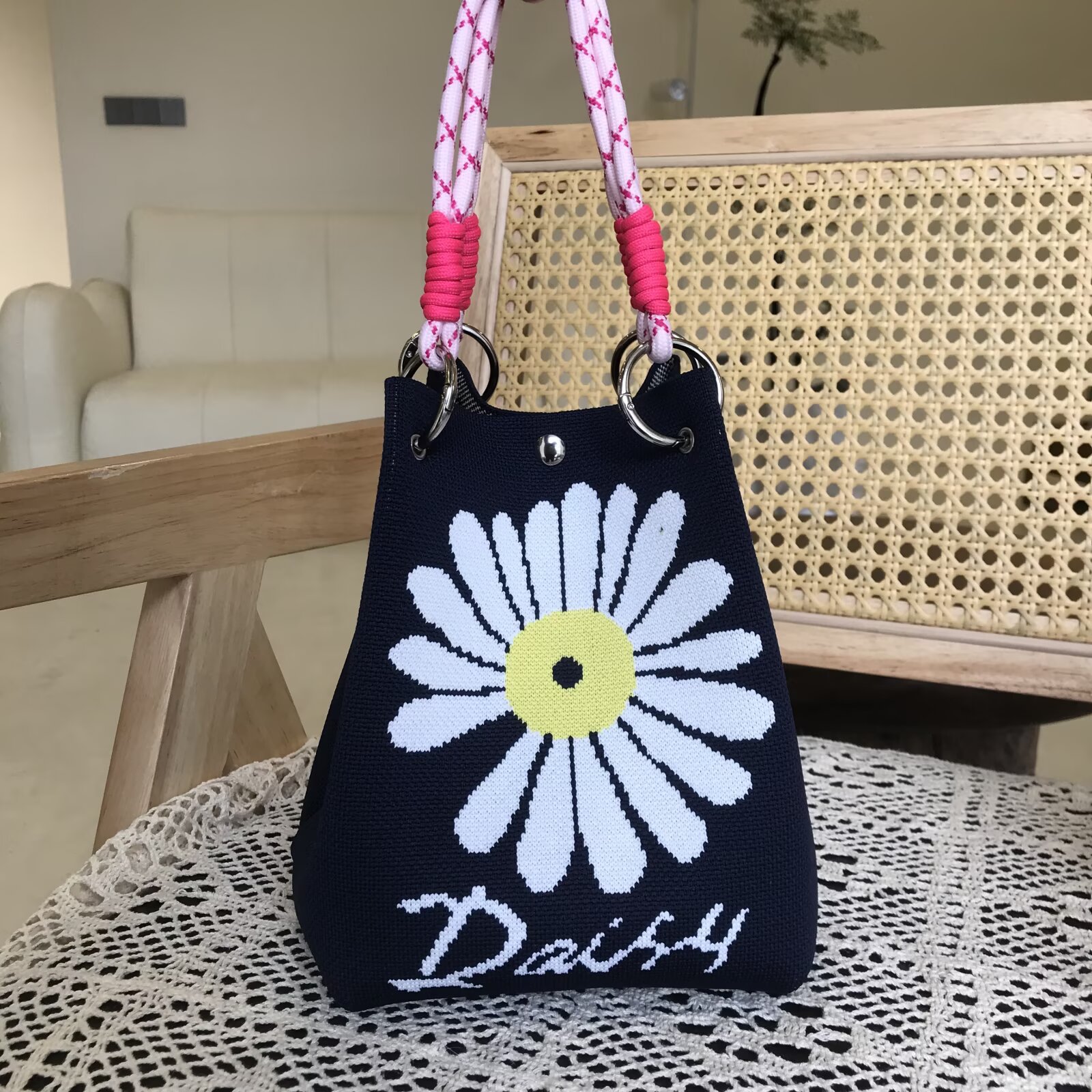 韩版新款ins绳结手提包春秋手提水桶包出游百搭小众大容量手拎包