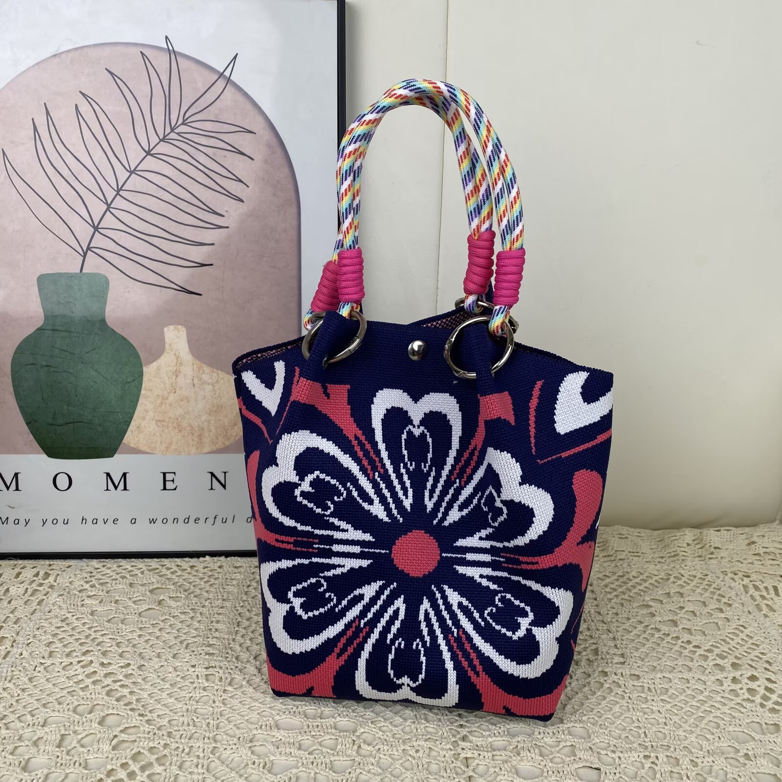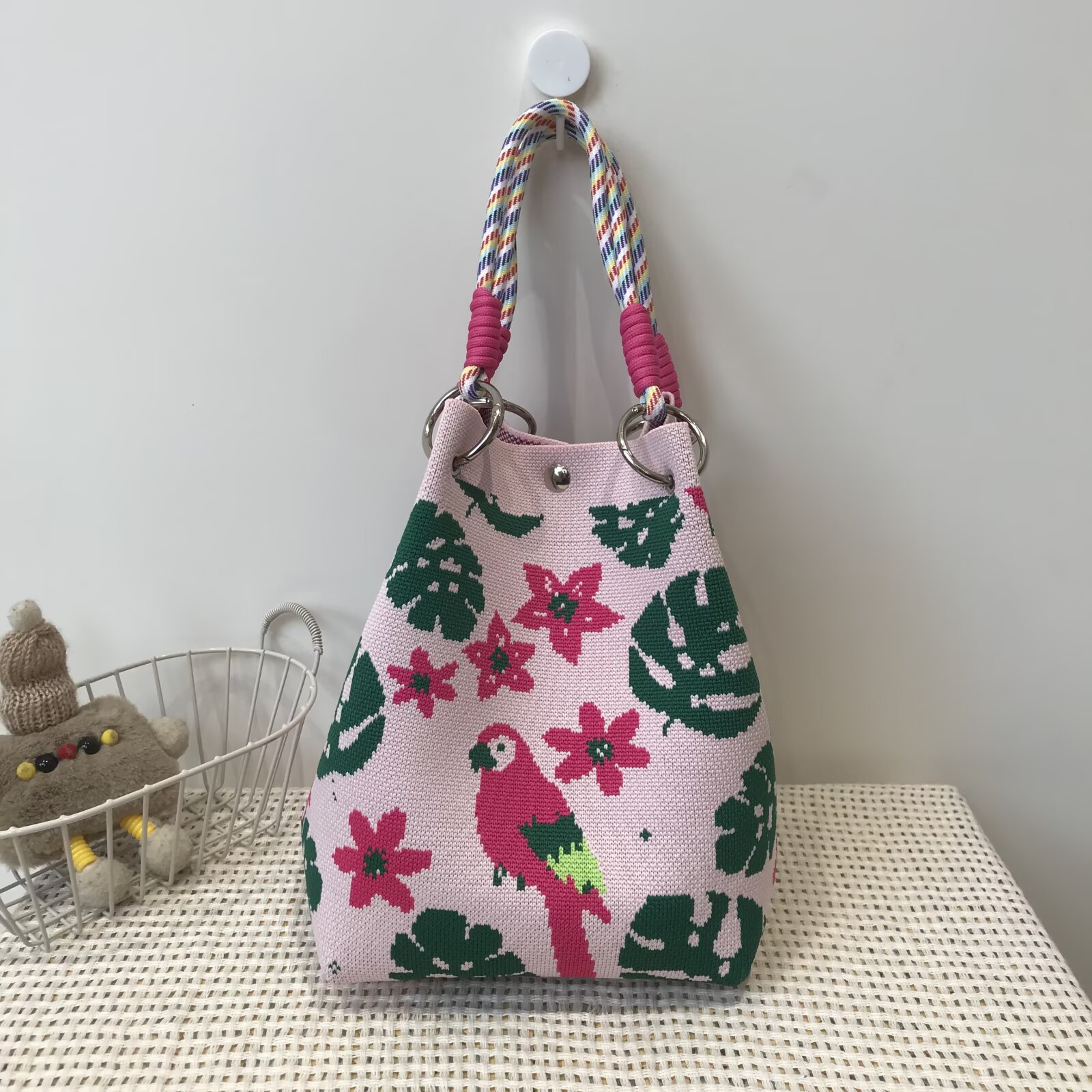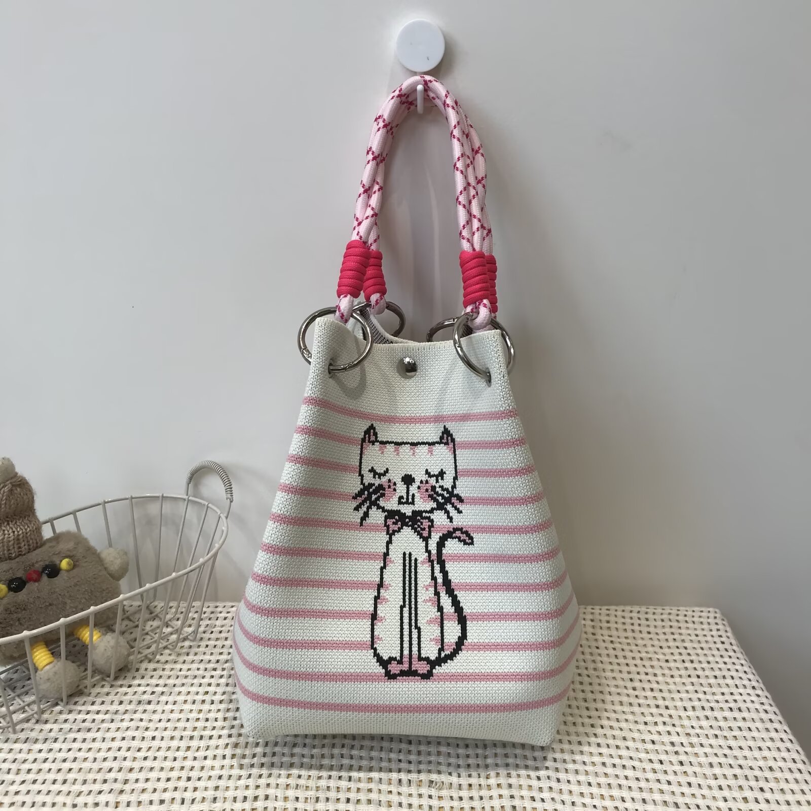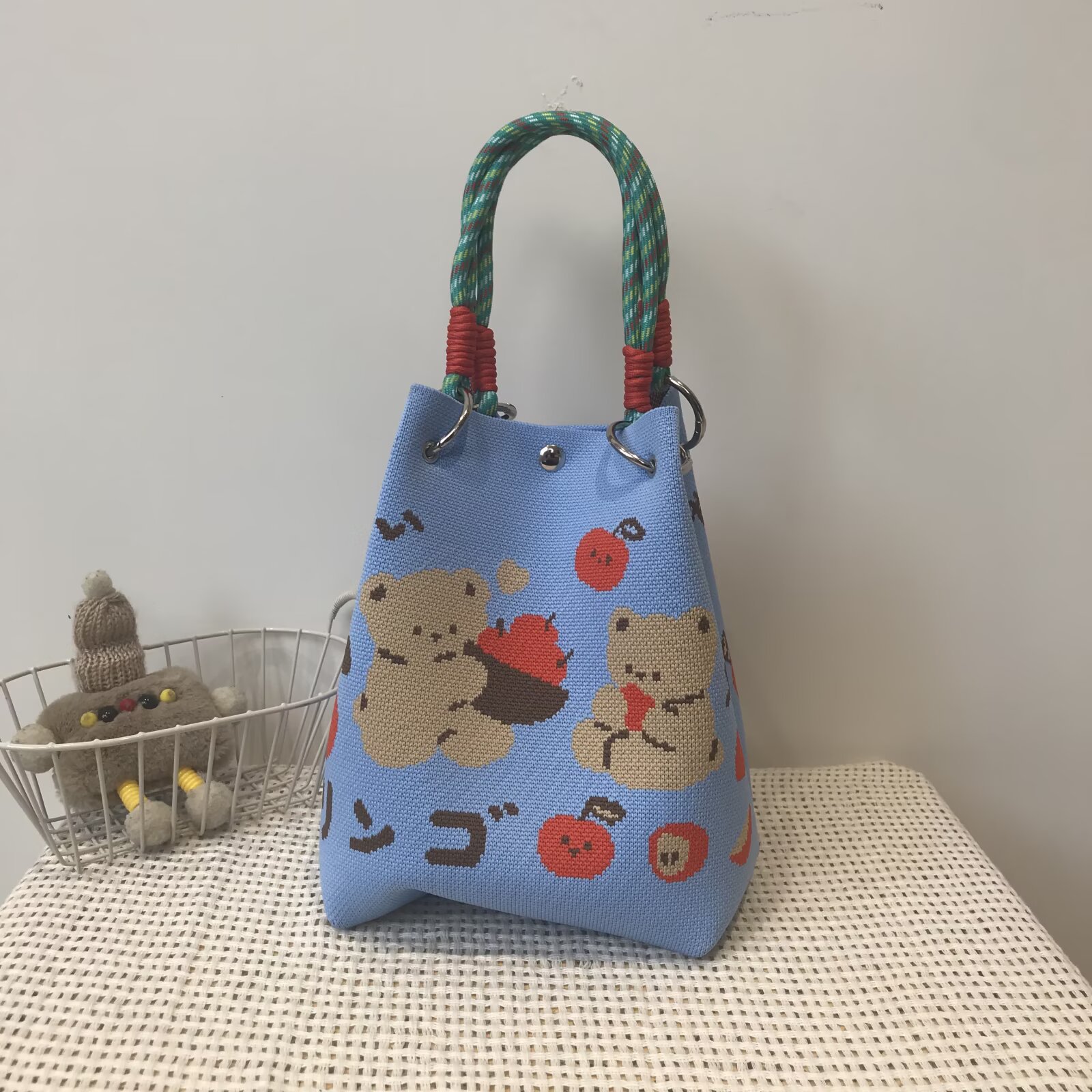 韩版新款ins绳结手提包春秋手提水桶包出游百搭小众大容量手拎包