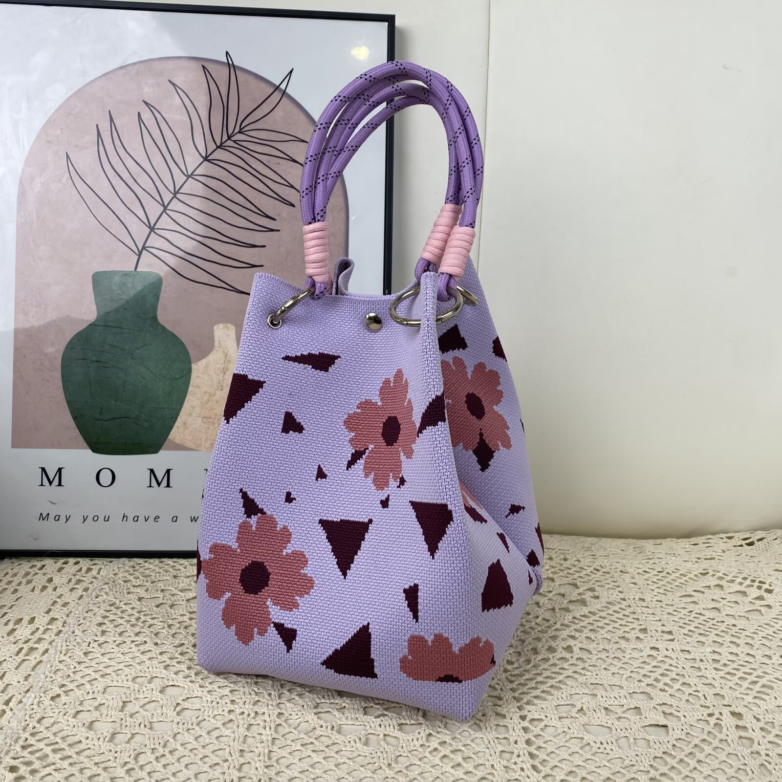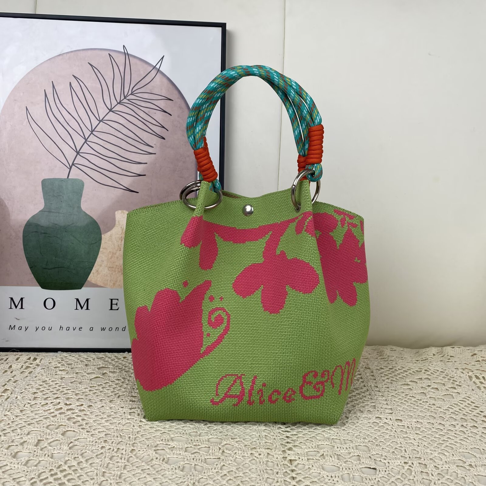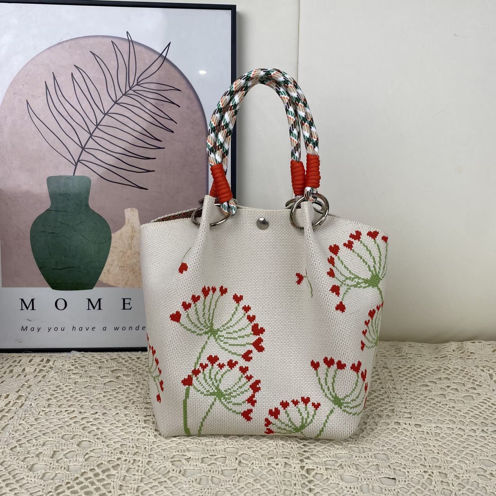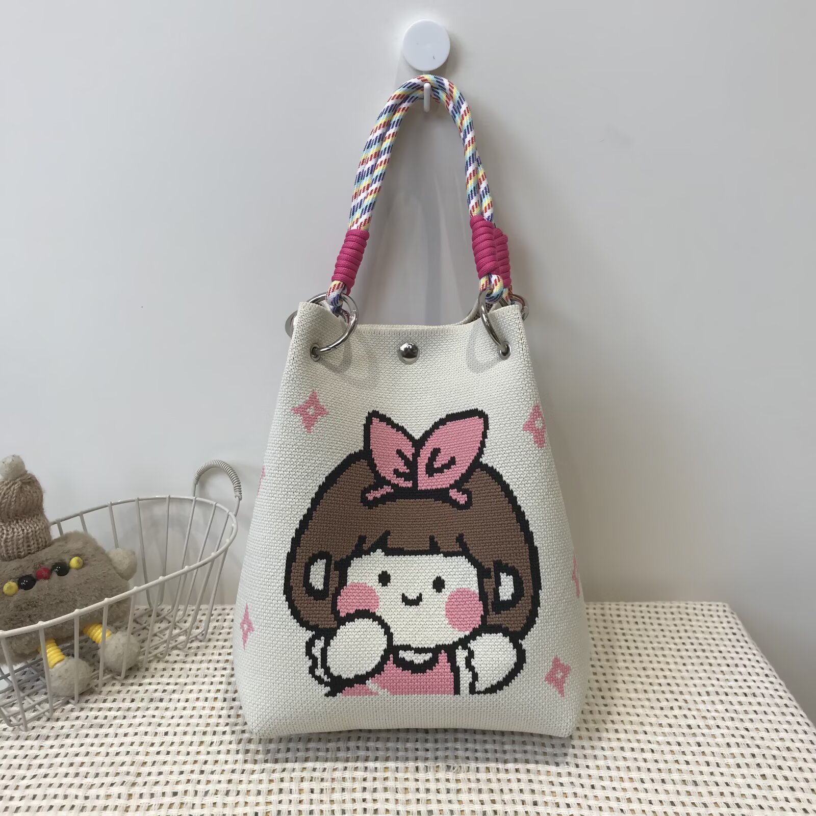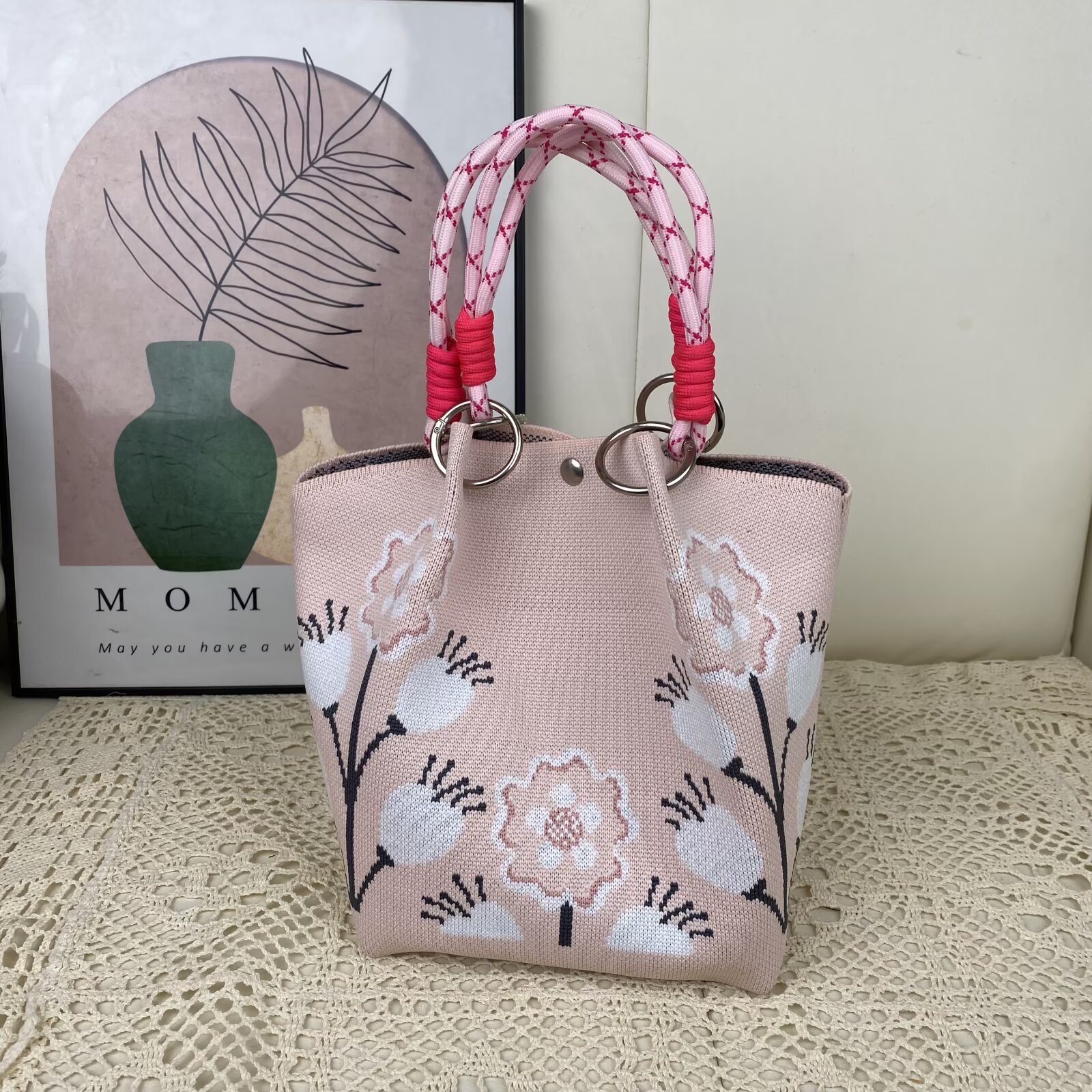 韩版新款ins绳结手提包春秋手提水桶包出游百搭小众大容量手拎包