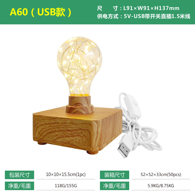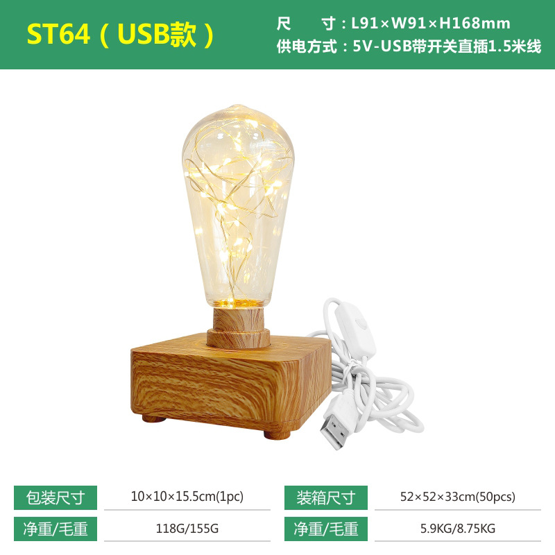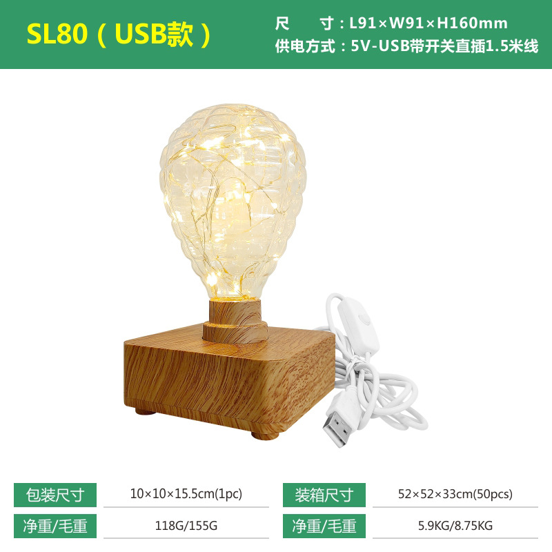 LED铜线台灯小夜灯USB款电池盒款户外露营聚会暖光氛围灯卧室儿童